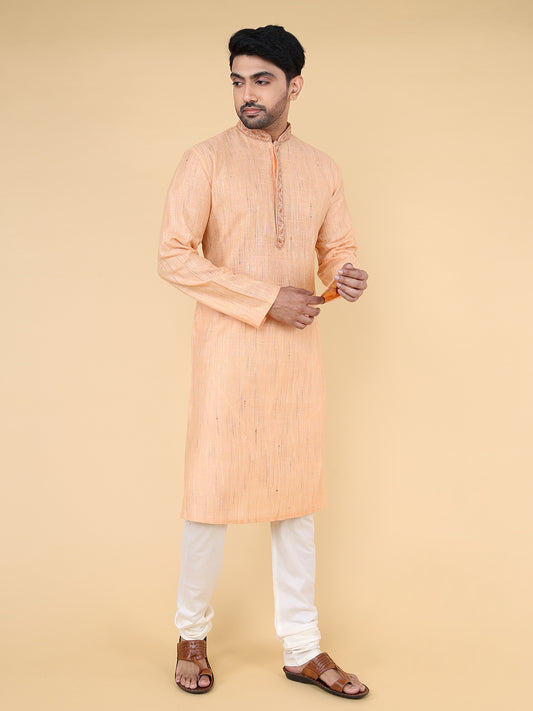 Men Kurta Pyjama Set (Light Orange)