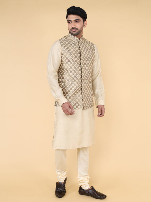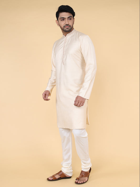 Zois Men Kurta Pyjama Set (Light Beige)