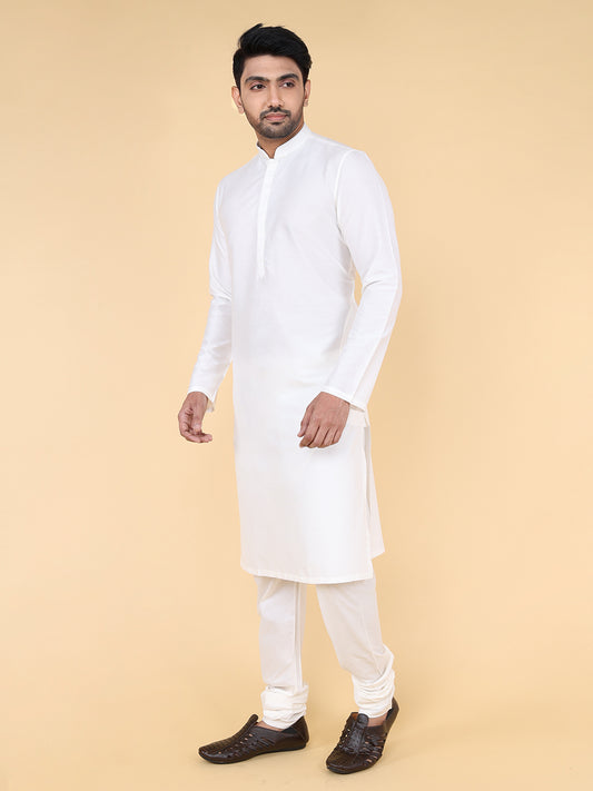 Full Sleeve Solid Kurta and Churidar Set in White Pure Cotton