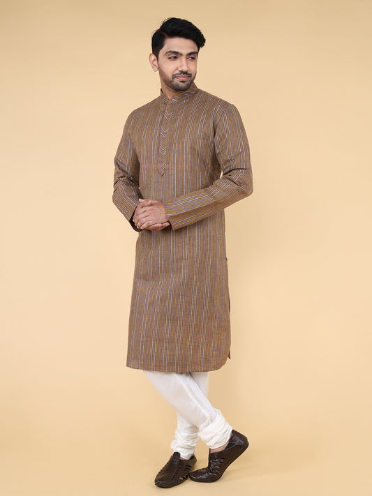 Men Kurta Pyjama Set (Light Beige)