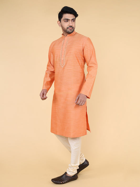 Men Kurta Pyjama Set (Orange)
