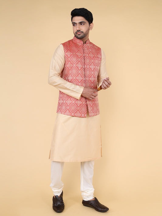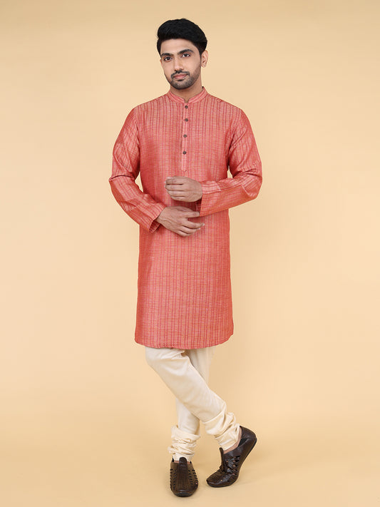 Men Kurta Pyjama Set (Peach)