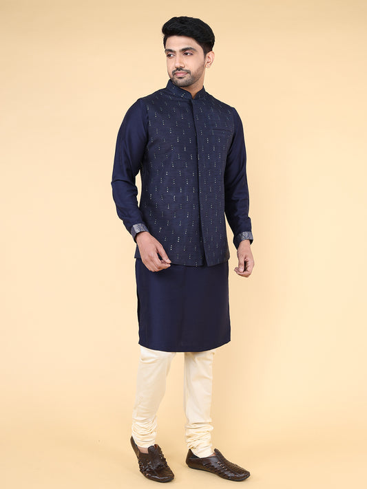 Navy blue all over thread and sequins work Jacket