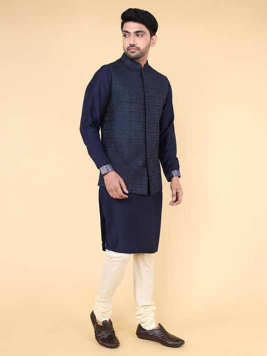 Navy blue all over thread work Jacket