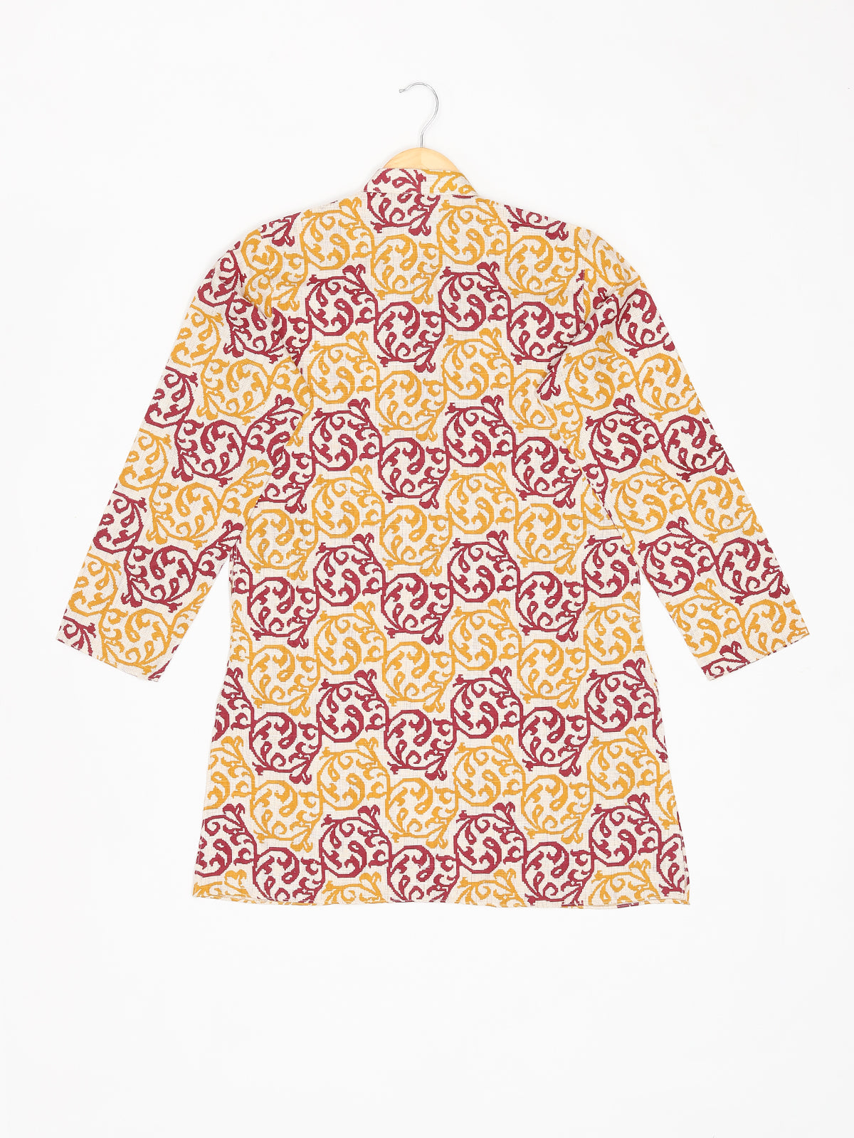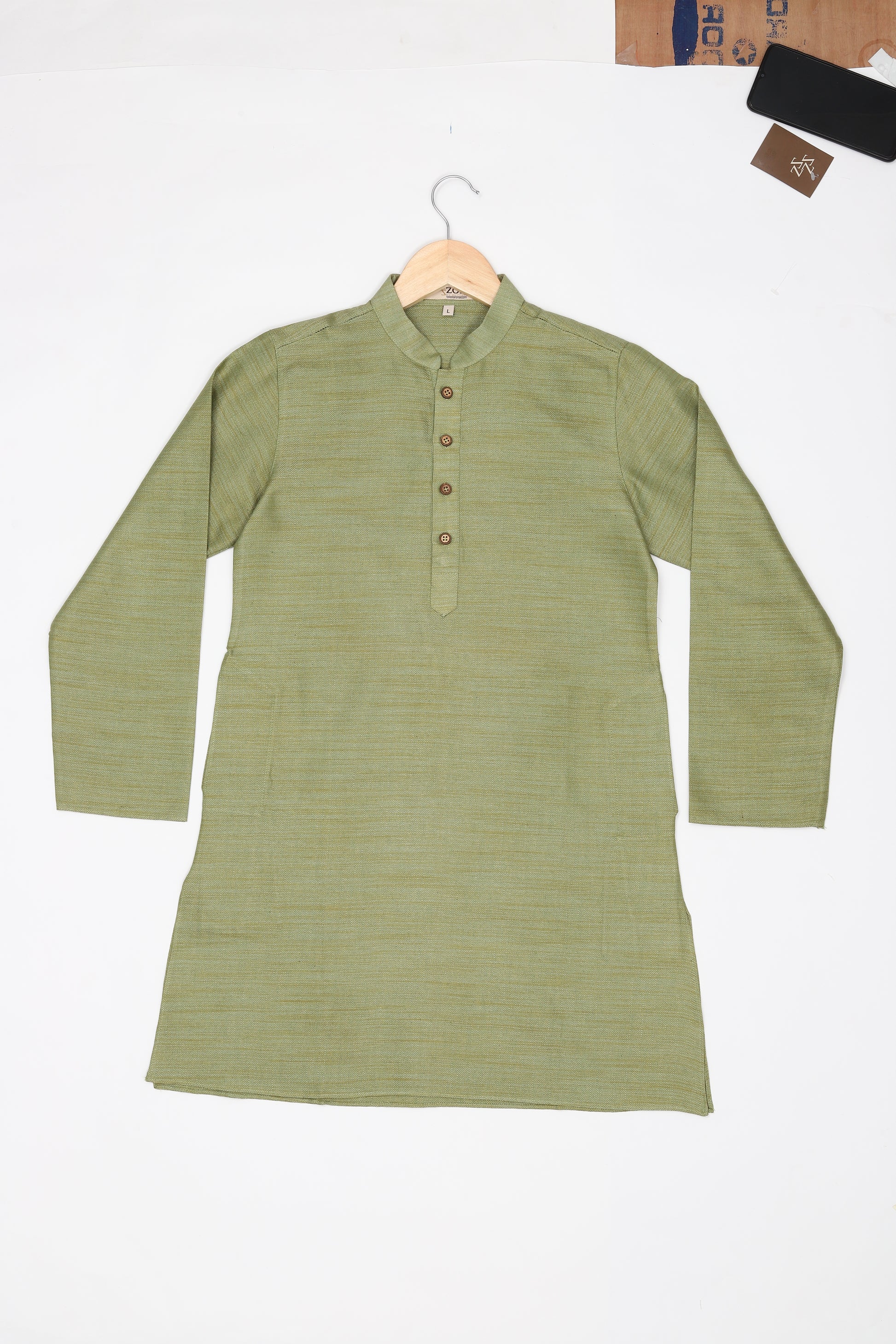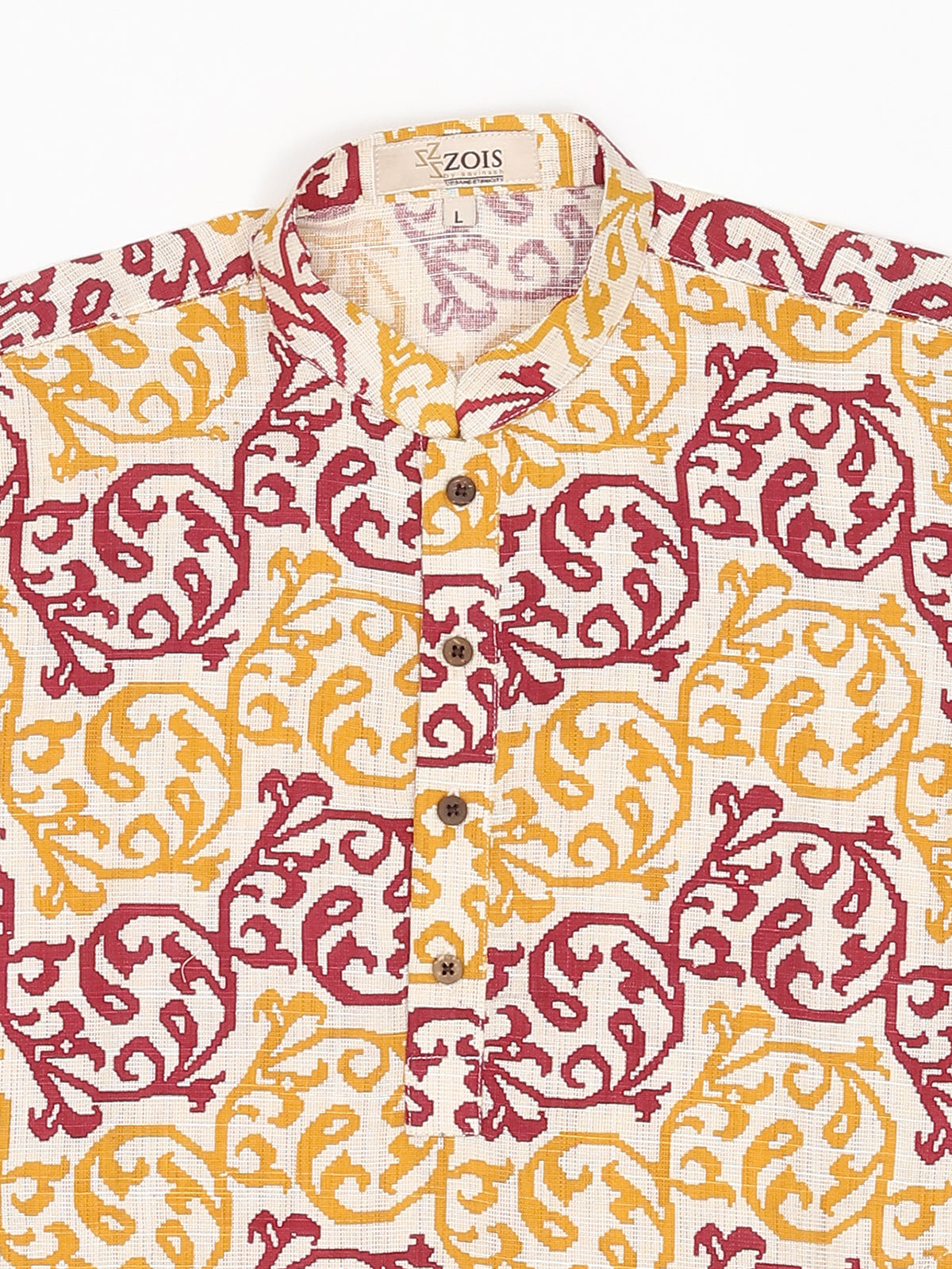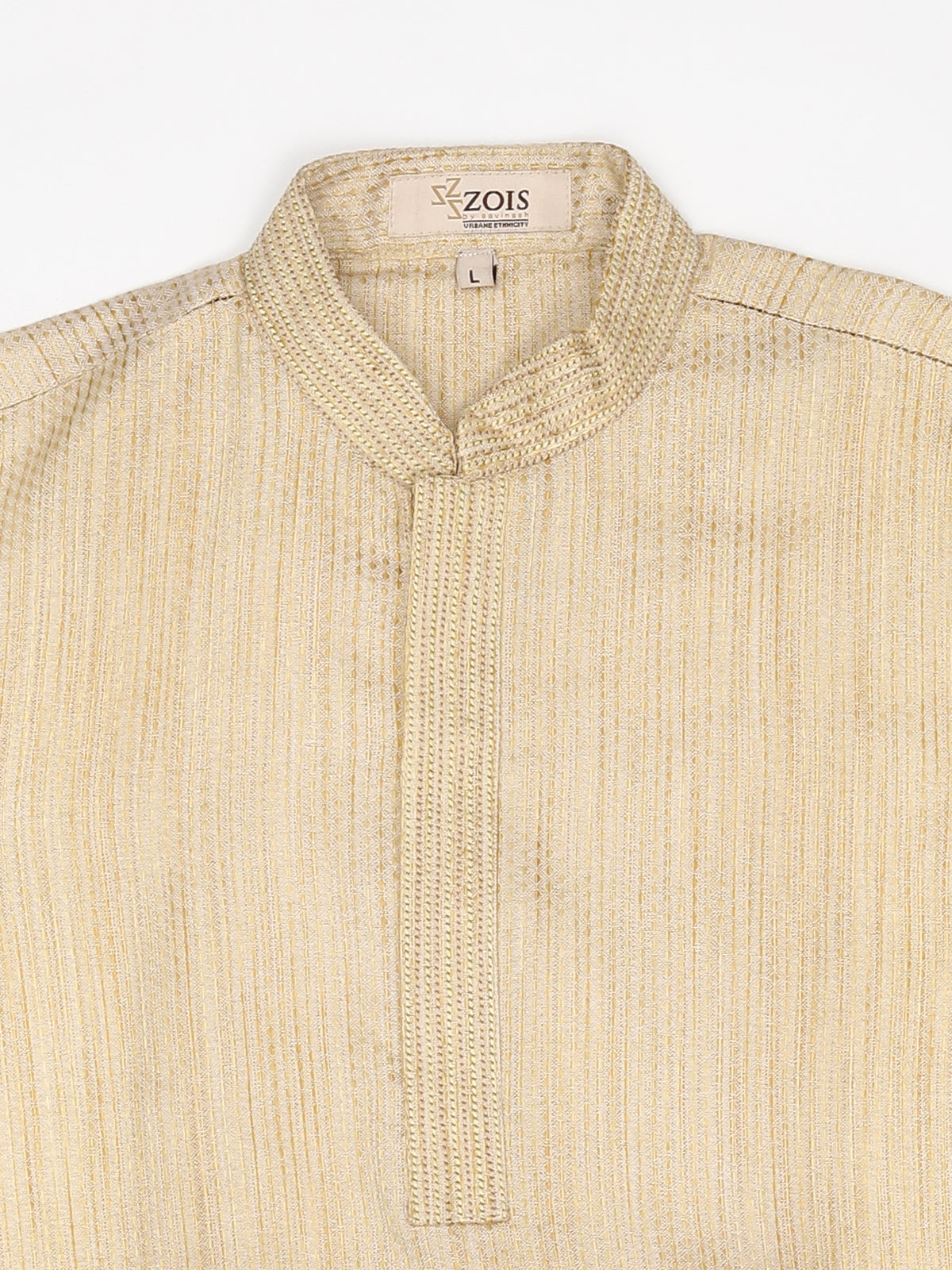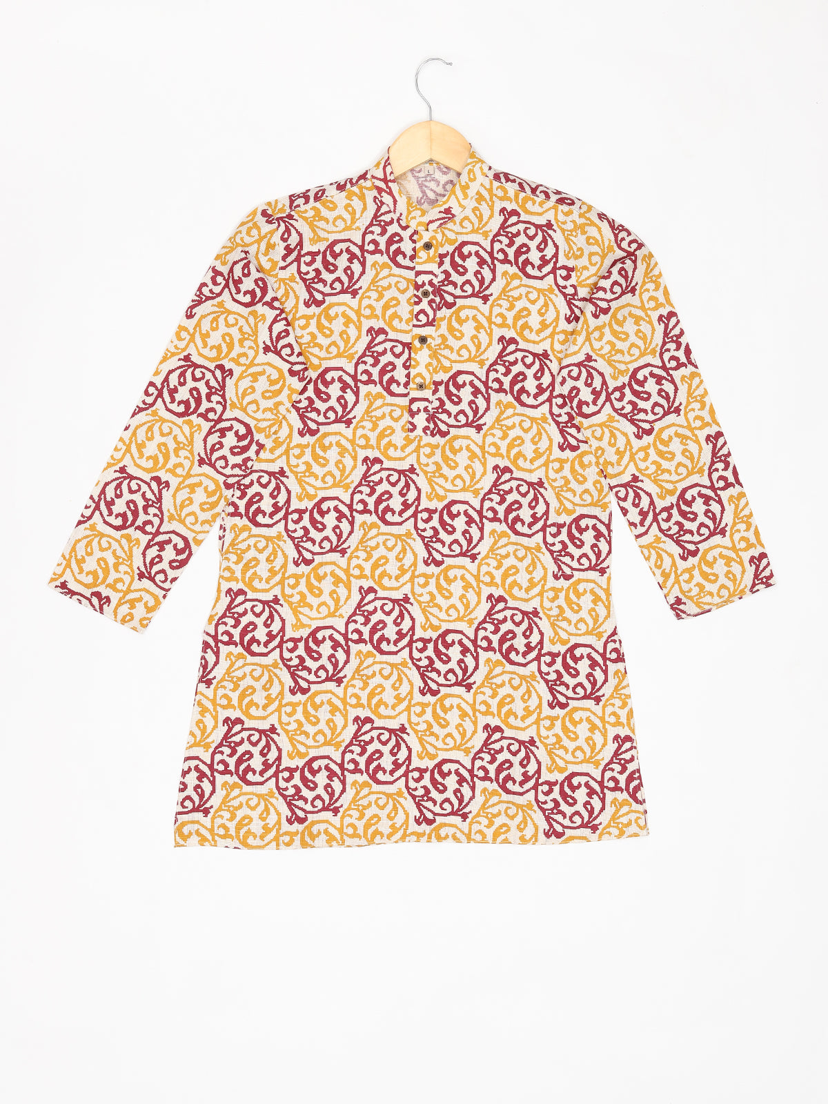 Introducing our meticulously crafted knee-length boys' ethnic wear. Made from Pure Cotton this Beige, White, Green, Gold, Multicolor, Yellow, Brown, Pink, Purple, Blue, Black, Red-colored outfit with a plain weave pattern is perfect for festive and party occasions. The Mandarin collared neck adds an authentic touch, while our commitment to simplicity and elegance is reflected in its straight shape. With a unique fusion of tradition and contemporary design, this Self Design kurta exemplifies ZOIS' dedication to high-quality traditional wear.