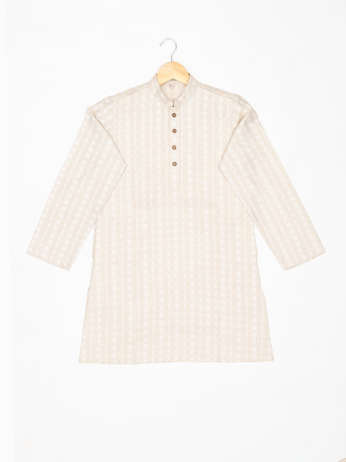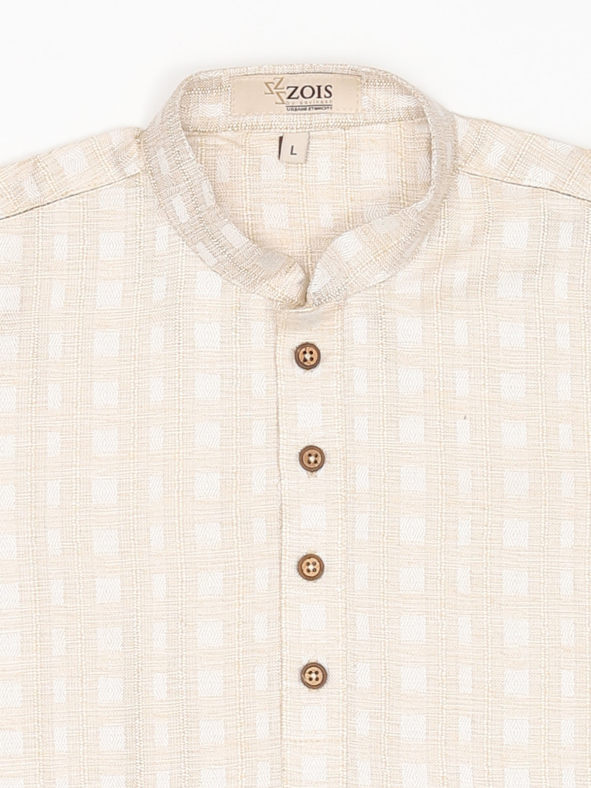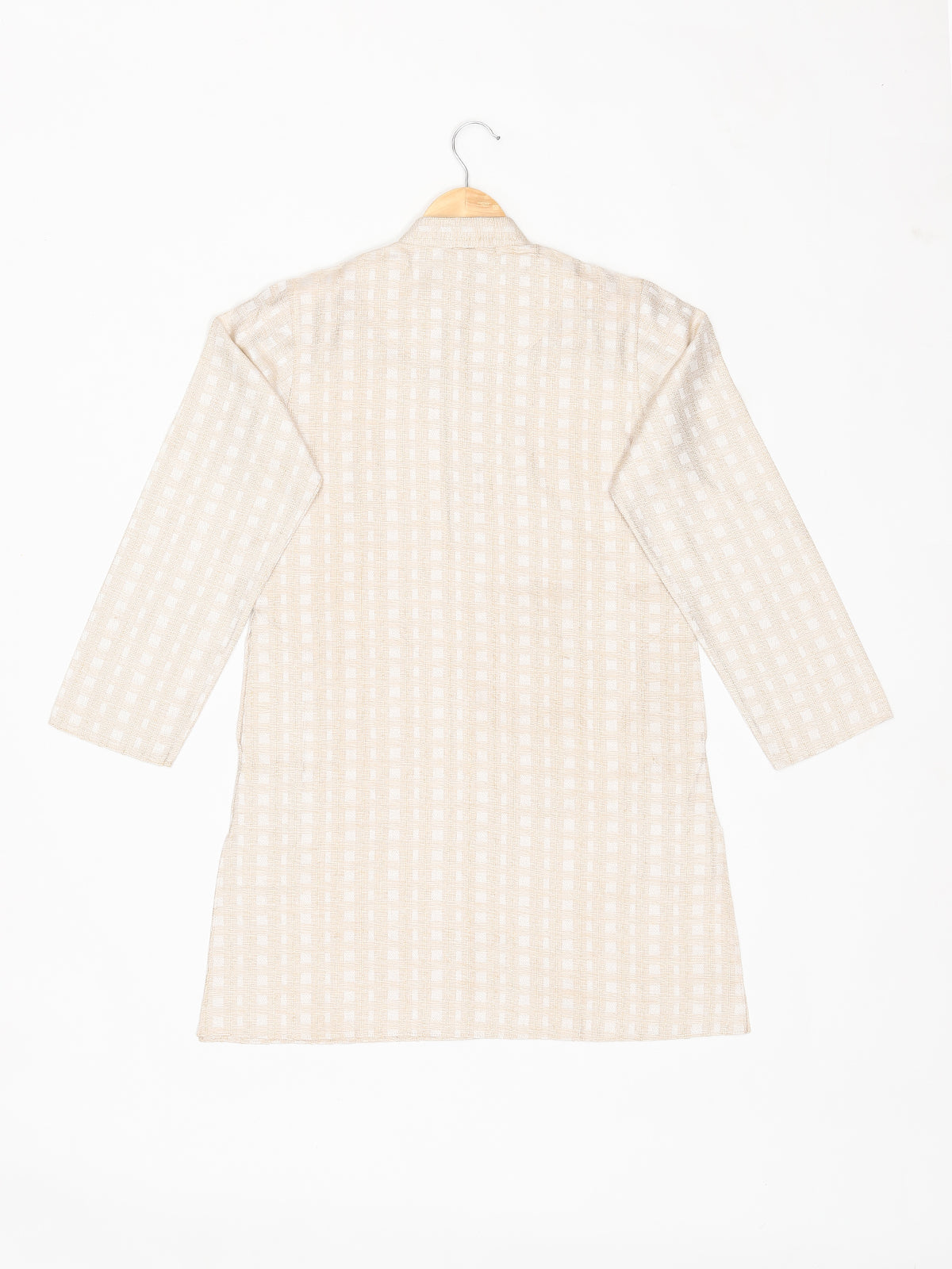 Introducing our meticulously crafted knee-length boys' ethnic wear. Made from Pure Cotton this White-colored outfit with a plain weave pattern is perfect for festive and party occasions. The Mandarin collared neck adds an authentic touch, while our commitment to simplicity and elegance is reflected in its straight shape. With a unique fusion of tradition and contemporary design, this Self Design kurta exemplifies ZOIS' dedication to high-quality traditional wear.