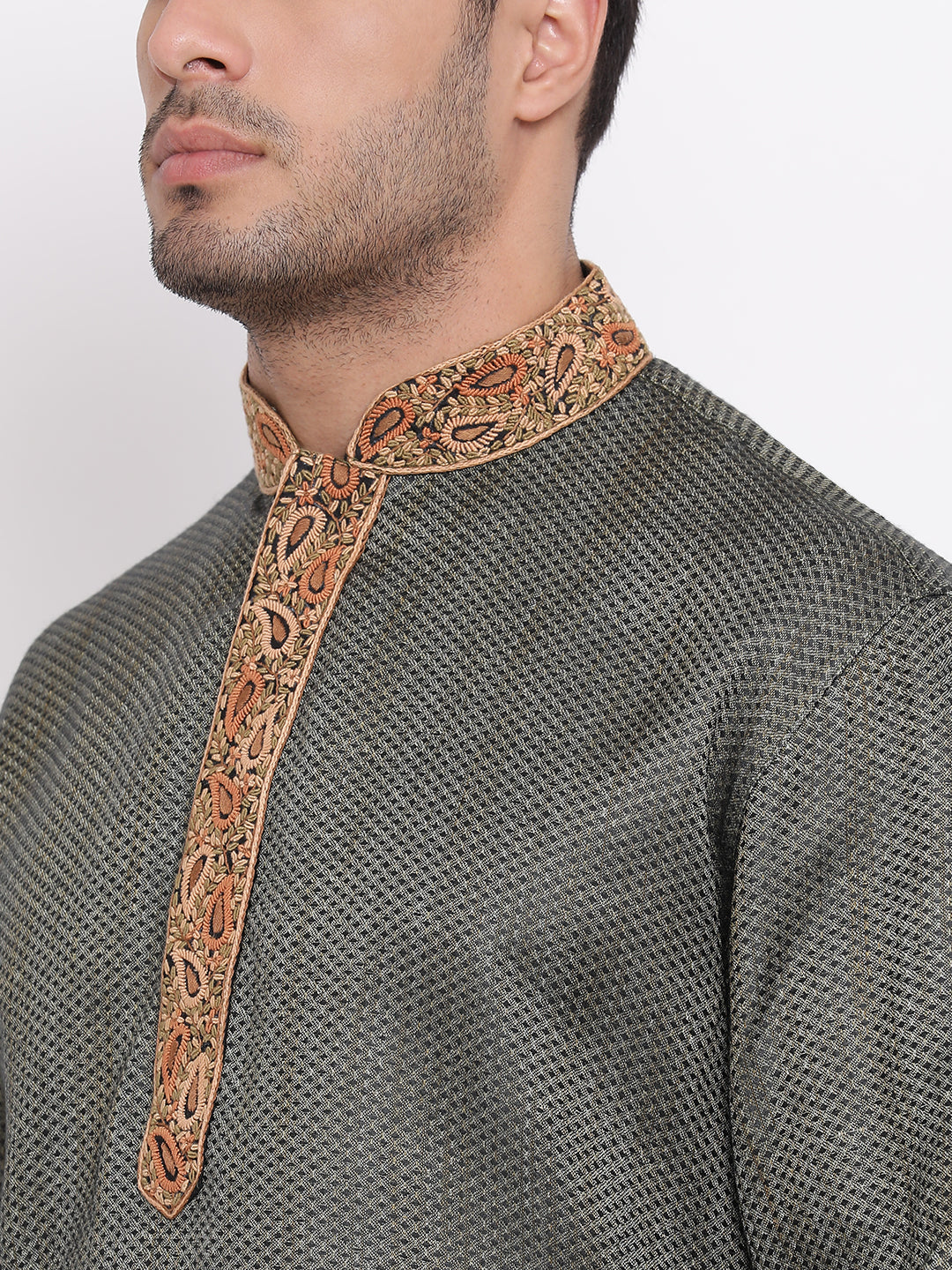 Presenting our meticulously crafted Men's Kurta and Churidar Set reflecting ZOIS's commitment to high-quality fashion. With intricate hand embroidery and a touch of simplicity, this Black colored ensemble in Cotton Blend fabric exudes elegance. The Mandarin collar adds sophistication, embodying the simplicity that is at the core of our design philosophy. With ZOIS, embrace the fusion of tradition and contemporary style in this versatile ethnic wear.