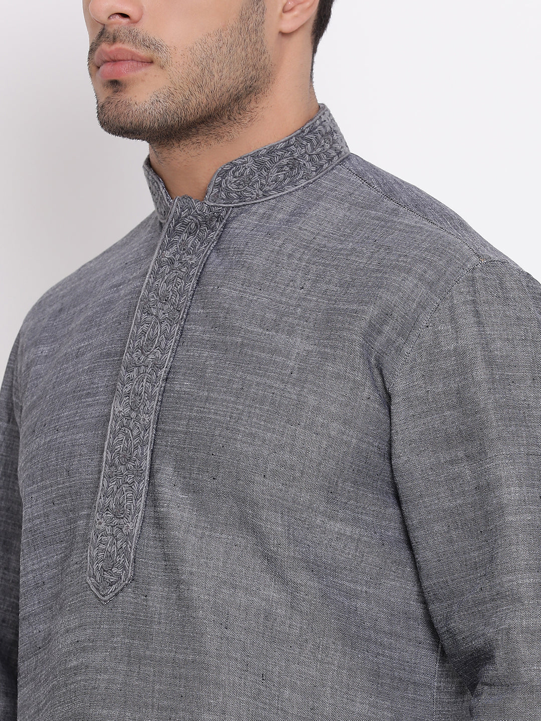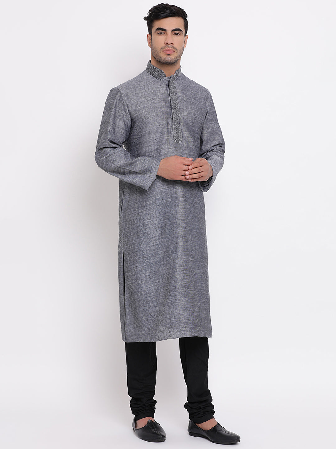 Presenting our meticulously crafted Men's Kurta and Churidar Set reflecting ZOIS's commitment to high-quality fashion. With intricate hand embroidery and a touch of simplicity, this Grey colored ensemble in Cotton Blend fabric exudes elegance. The Mandarin collar adds sophistication, embodying the simplicity that is at the core of our design philosophy. With ZOIS, embrace the fusion of tradition and contemporary style in this versatile ethnic wear.