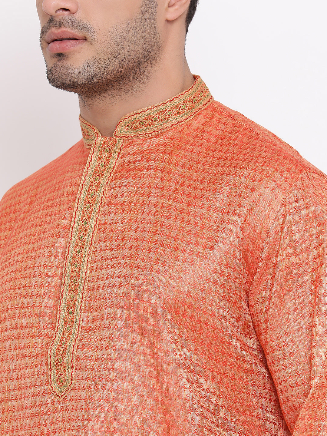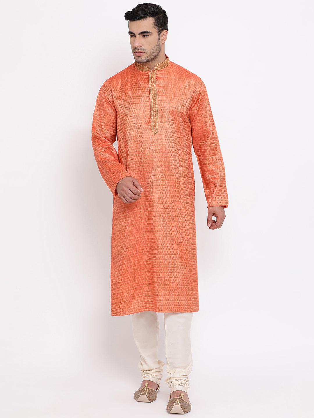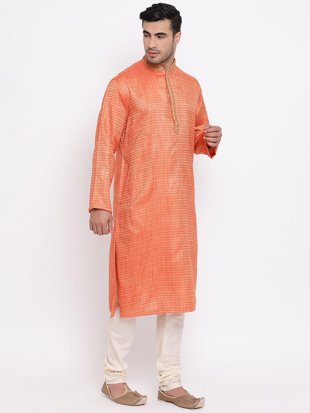 Presenting our meticulously crafted Men's Kurta and Churidar Set reflecting ZOIS's commitment to high-quality fashion. With intricate hand embroidery and a touch of simplicity, this Orange colored ensemble in Cotton Blend fabric exudes elegance. The Mandarin collar adds sophistication, embodying the simplicity that is at the core of our design philosophy. With ZOIS, embrace the fusion of tradition and contemporary style in this versatile ethnic wear.