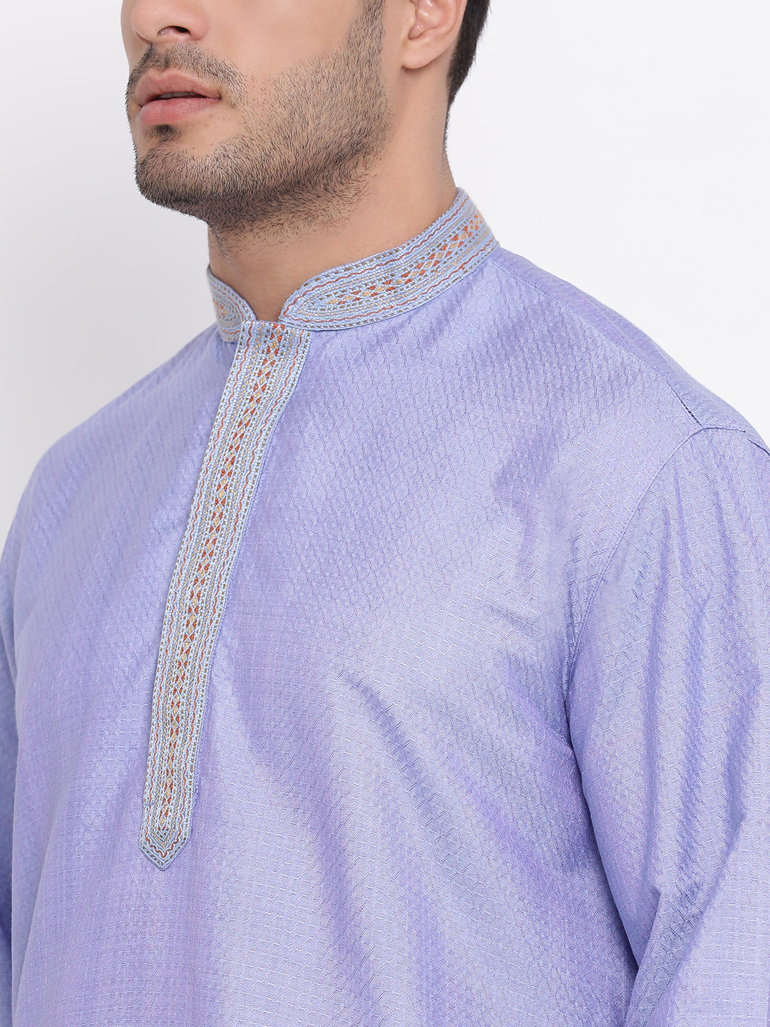 Presenting our meticulously crafted Men's Kurta and Churidar Set reflecting ZOIS's commitment to high-quality fashion. With intricate hand embroidery and a touch of simplicity, this Purple colored ensemble in Silk Blend fabric exudes elegance. The Mandarin collar adds sophistication, embodying the simplicity that is at the core of our design philosophy. With ZOIS, embrace the fusion of tradition and contemporary style in this versatile ethnic wear.