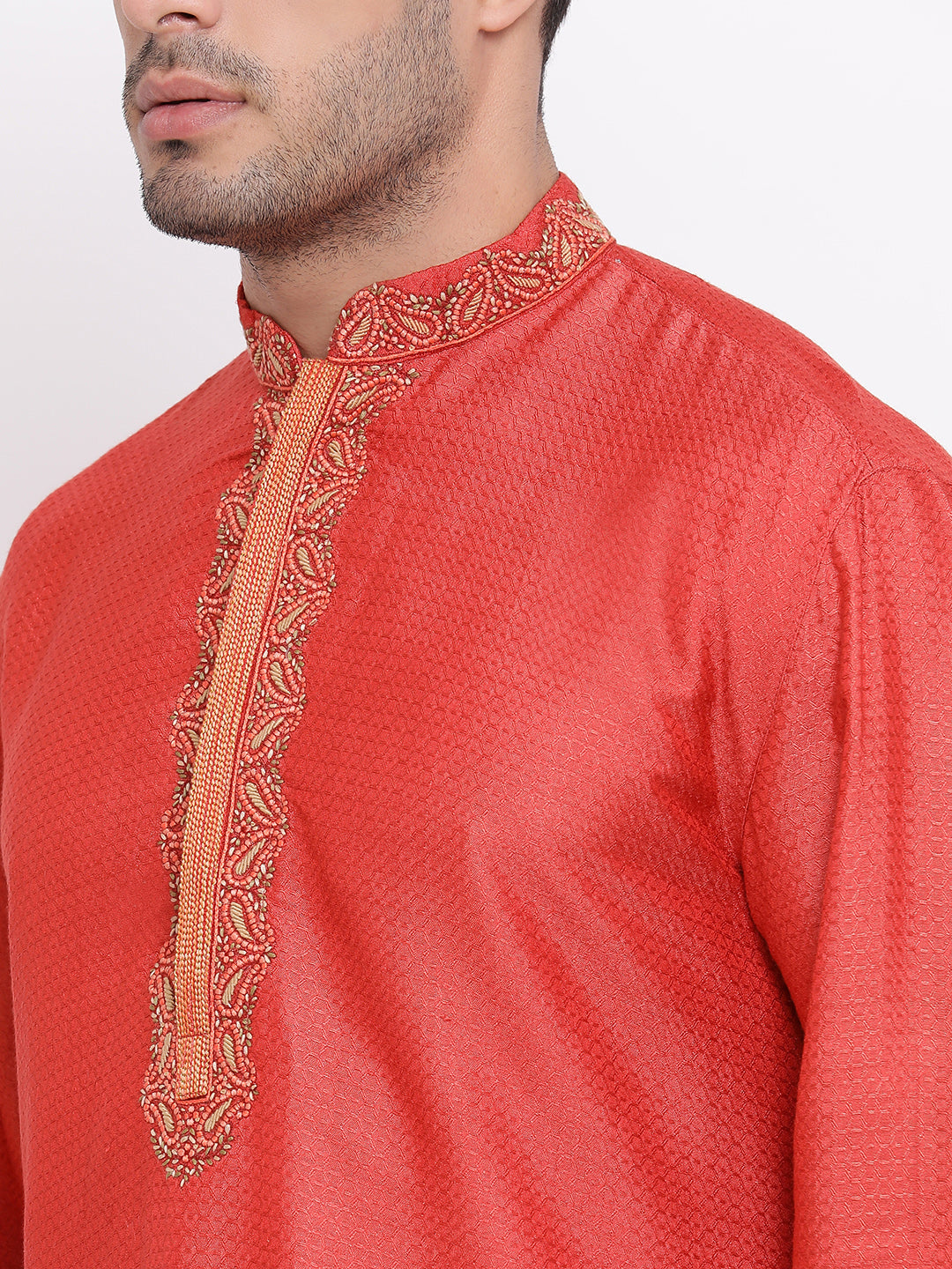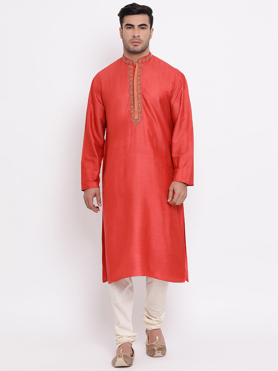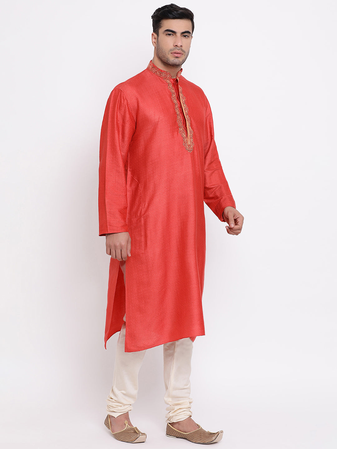 Presenting our meticulously crafted Men's Kurta and Churidar Set reflecting ZOIS's commitment to high-quality fashion. With intricate hand embroidery and a touch of simplicity, this Red colored ensemble in Cotton Silk fabric exudes elegance. The Mandarin collar adds sophistication, embodying the simplicity that is at the core of our design philosophy. With ZOIS, embrace the fusion of tradition and contemporary style in this versatile ethnic wear.