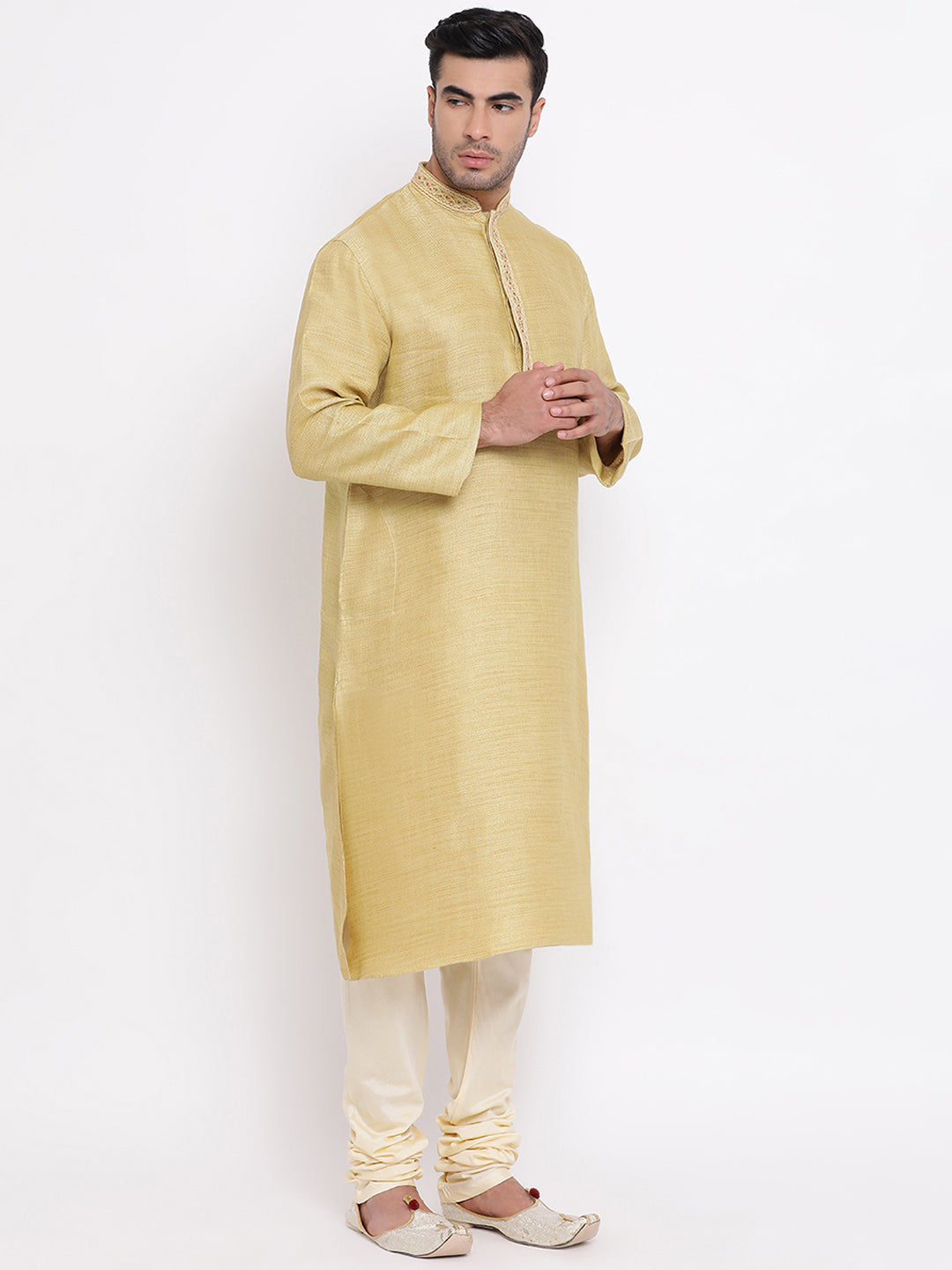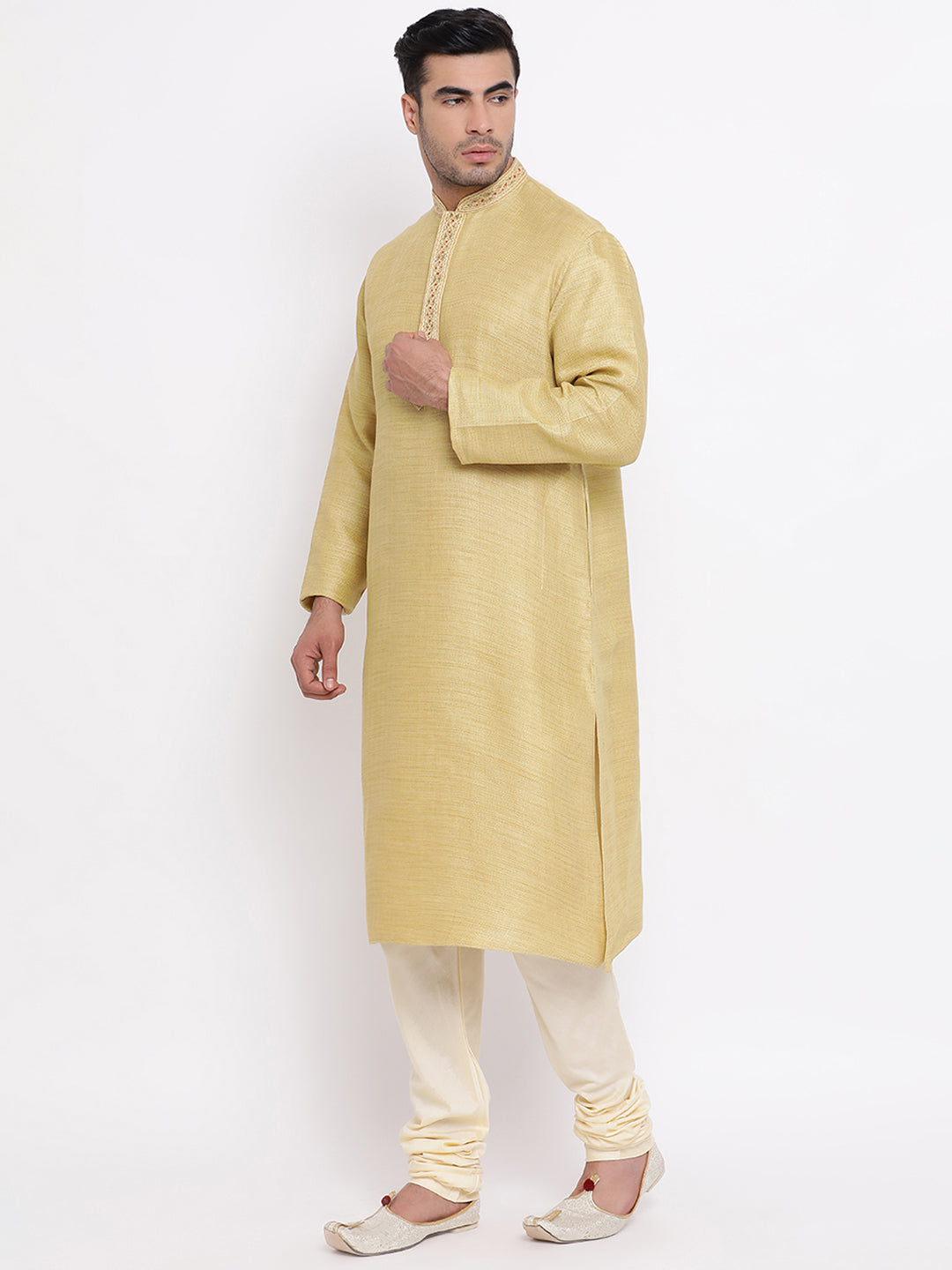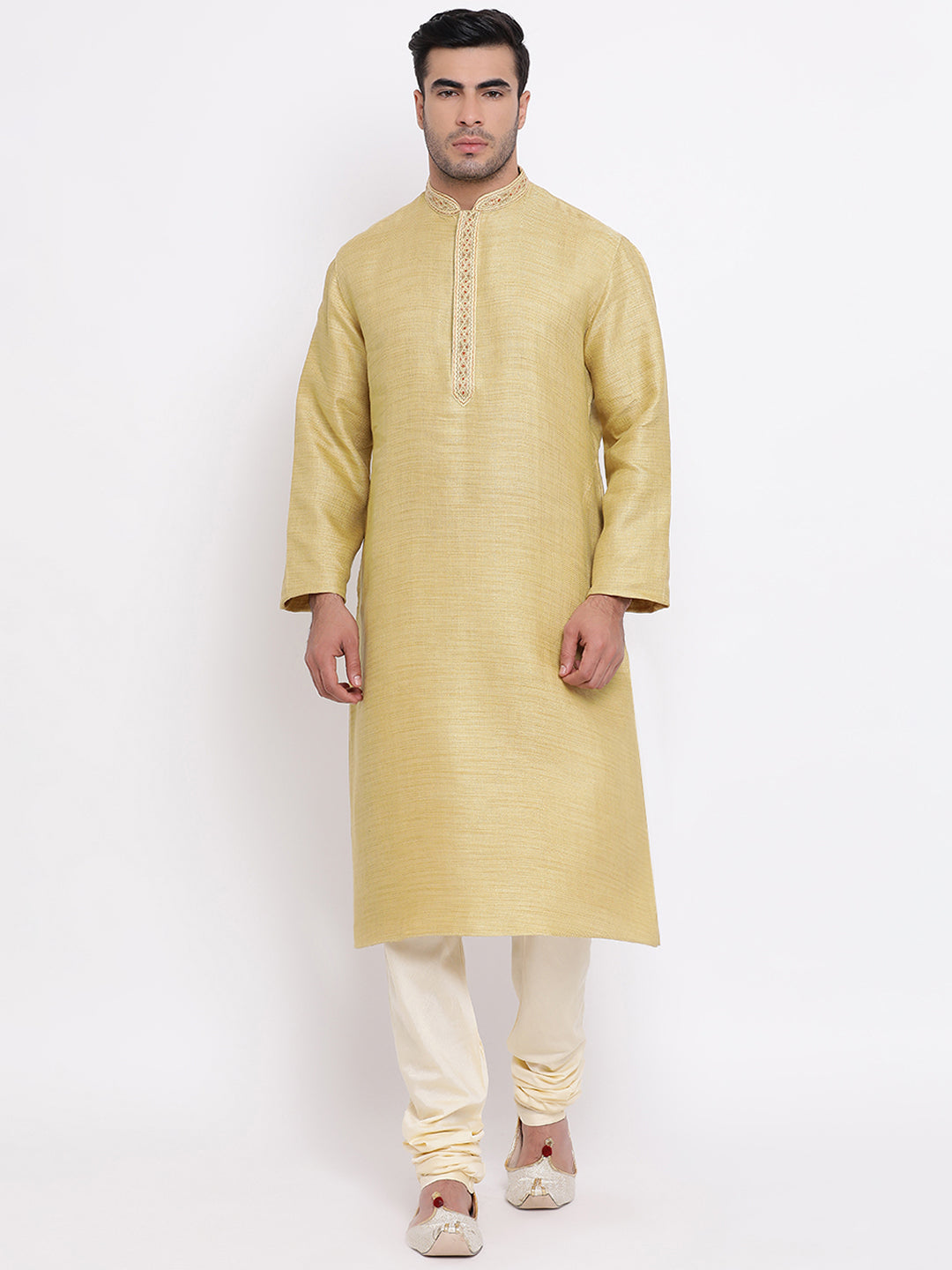 Presenting our meticulously crafted Men's Kurta and Churidar Set reflecting ZOIS's commitment to high-quality fashion. With intricate hand embroidery and a touch of simplicity, this Yellow colored ensemble in Cotton Blend fabric exudes elegance. The Mandarin collar adds sophistication, embodying the simplicity that is at the core of our design philosophy. With ZOIS, embrace the fusion of tradition and contemporary style in this versatile ethnic wear.