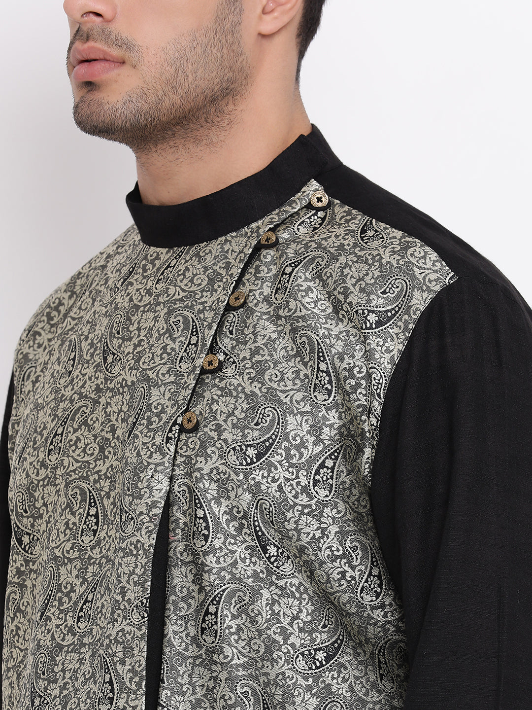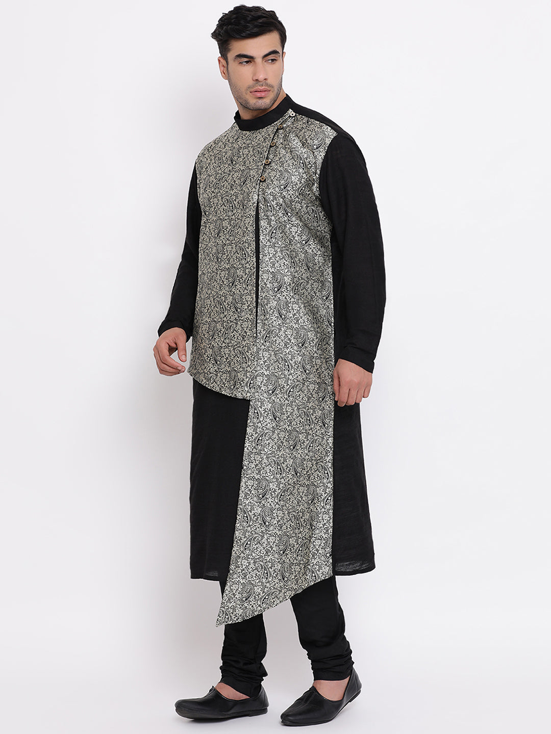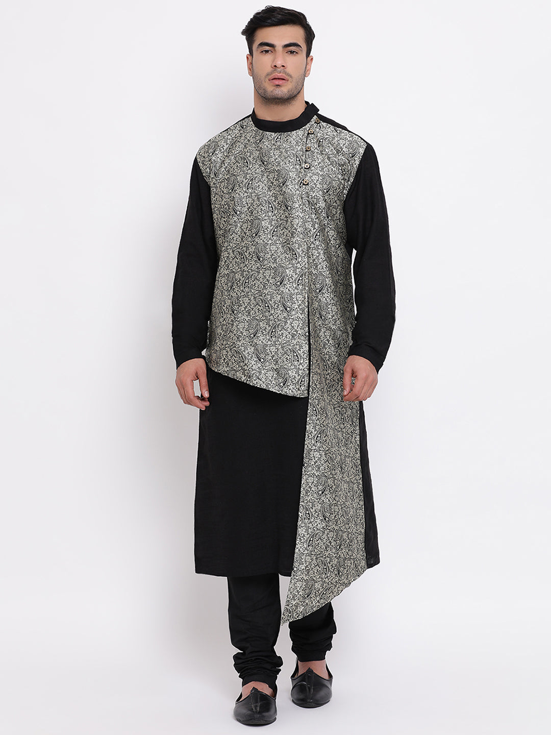 Presenting our meticulously crafted Men's Kurta and Churidar Set reflecting ZOIS's commitment to high-quality fashion. With intricate hand embroidery and a touch of simplicity, this Black colored ensemble in Jacquard fabric exudes elegance. The Mandarin collar adds sophistication, embodying the simplicity that is at the core of our design philosophy. With ZOIS, embrace the fusion of tradition and contemporary style in this versatile ethnic wear.