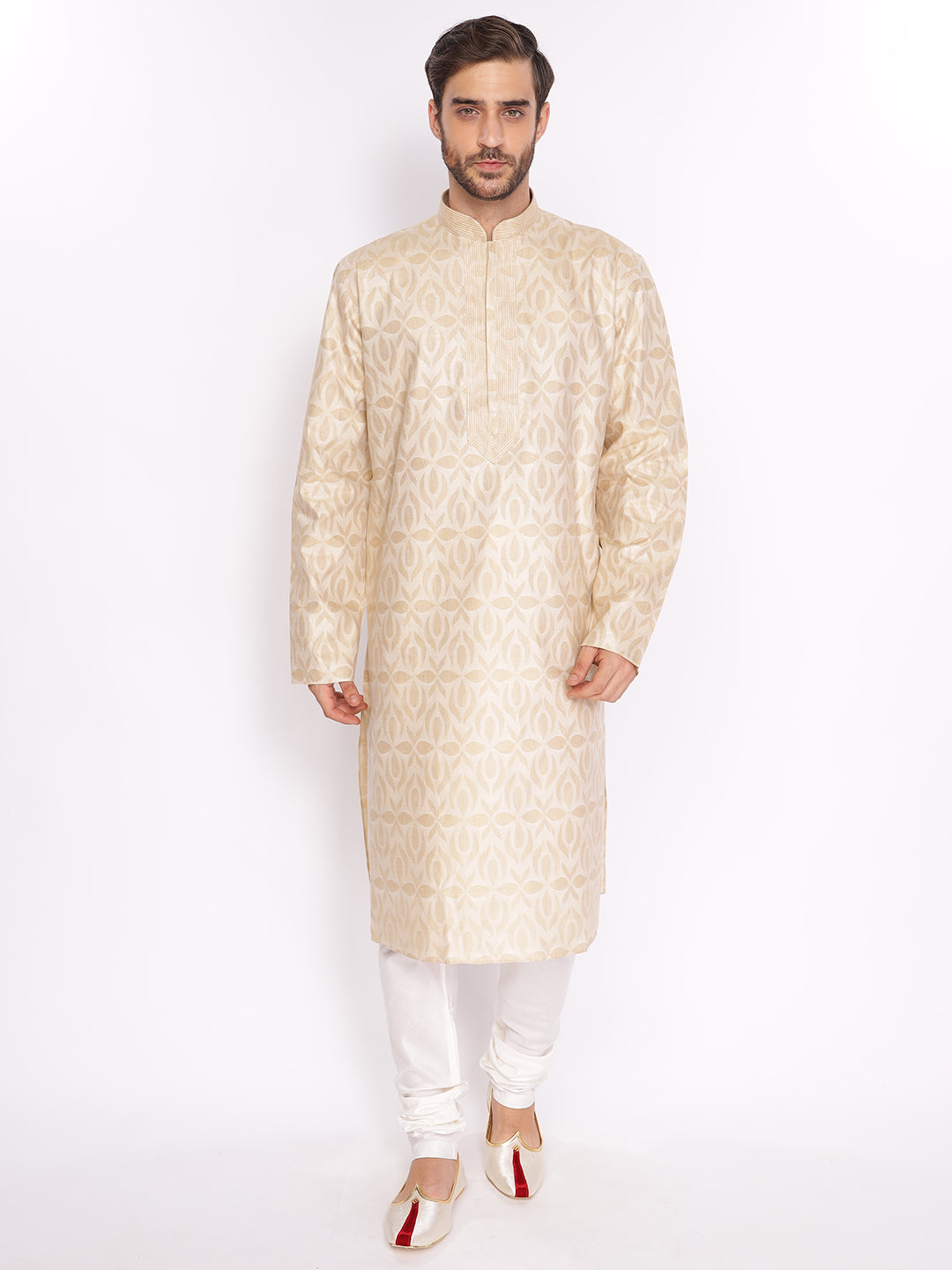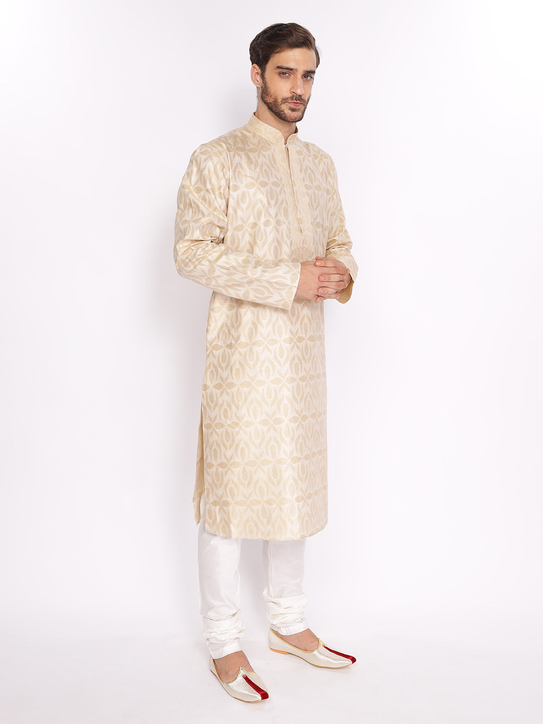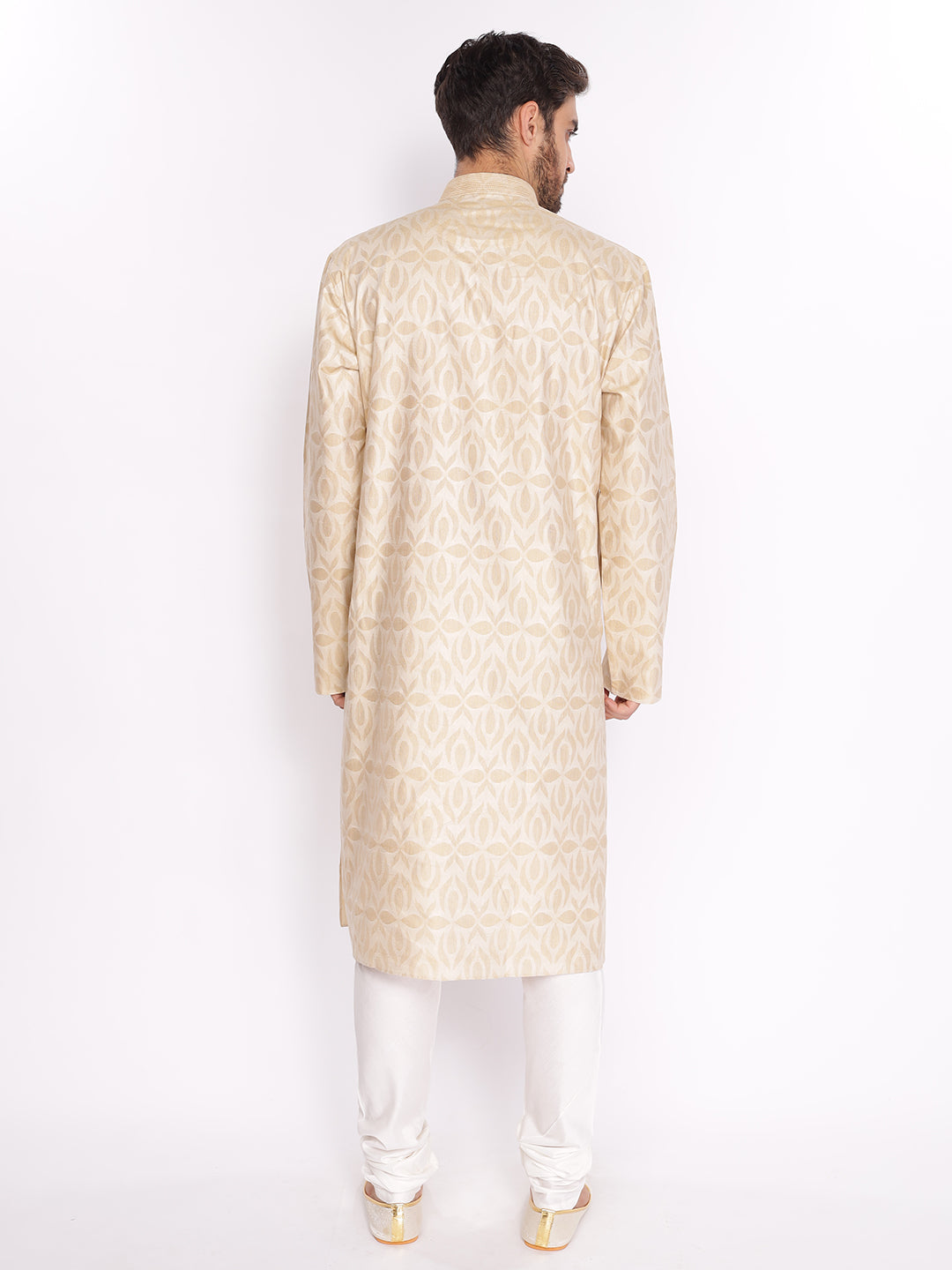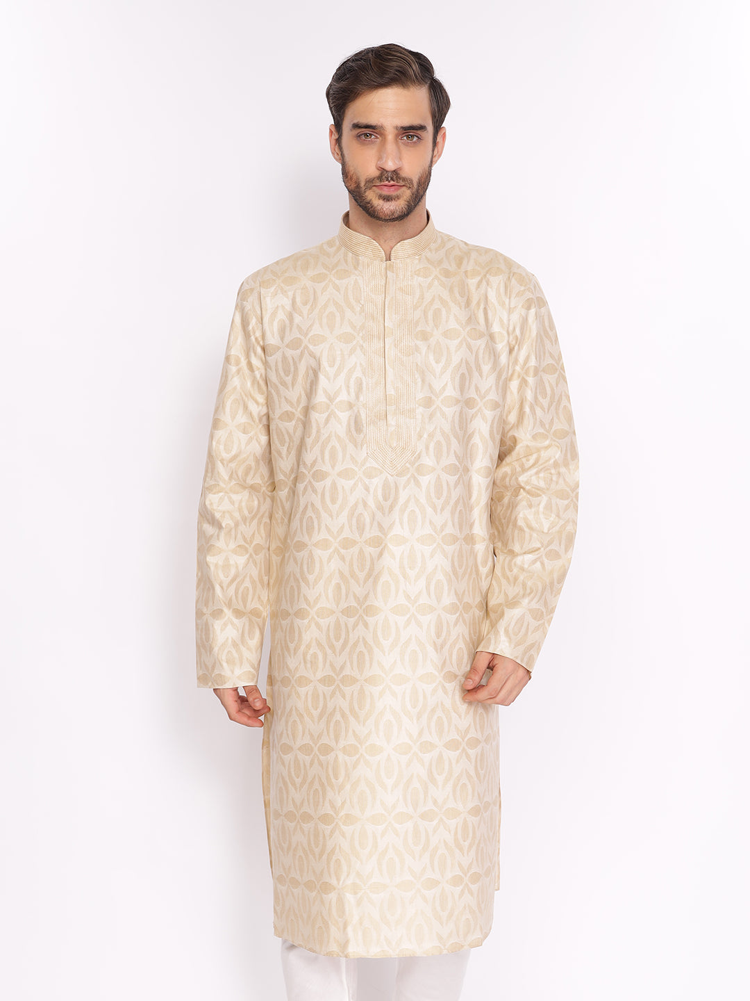 Full Sleeve Printed Kurta and Pyjama Set in Beige Pure Cotton