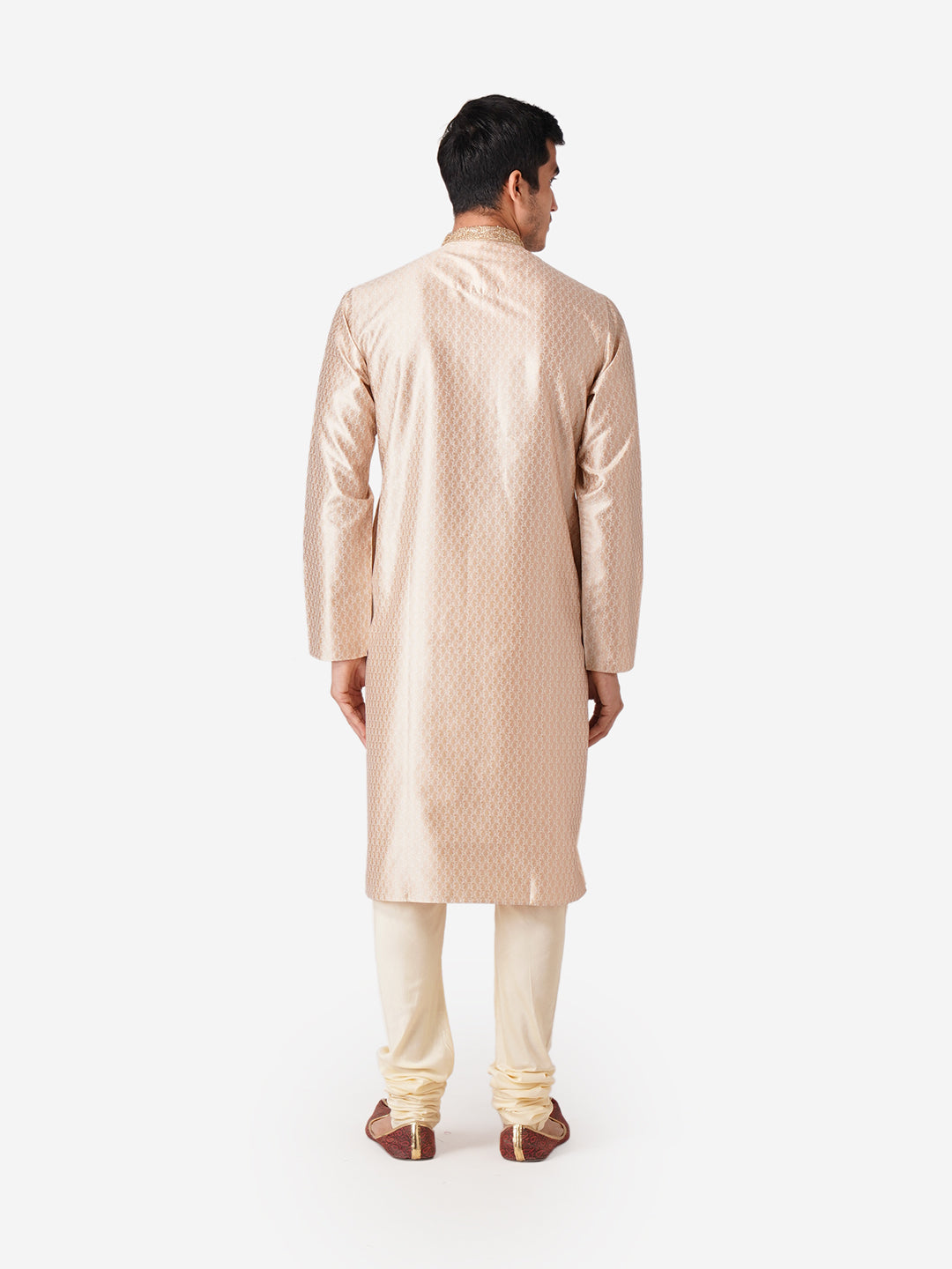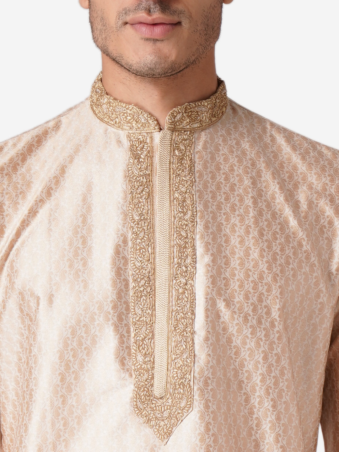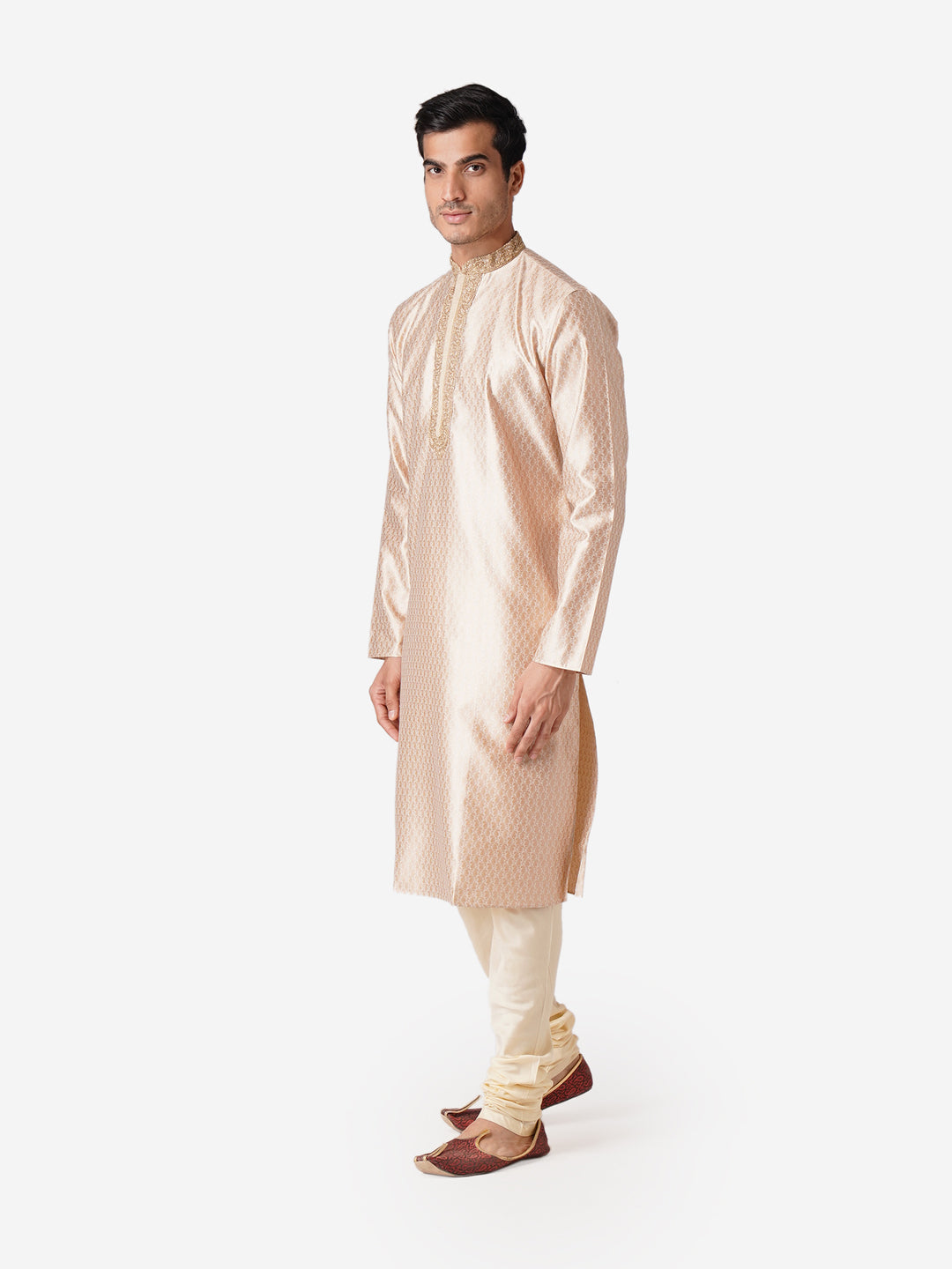Full Sleeve Self Design Kurta and Churidar Set in Beige Silk Blend