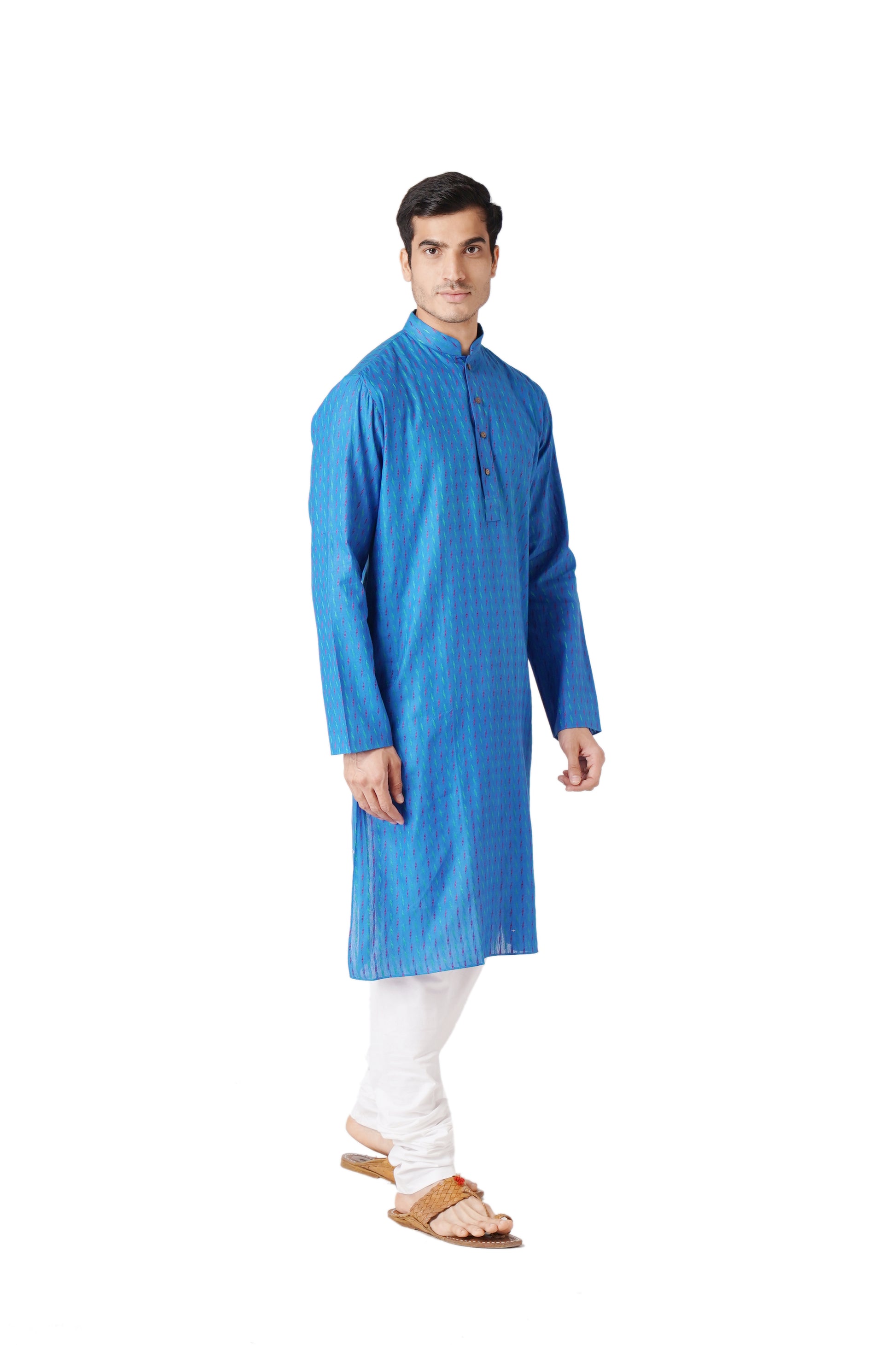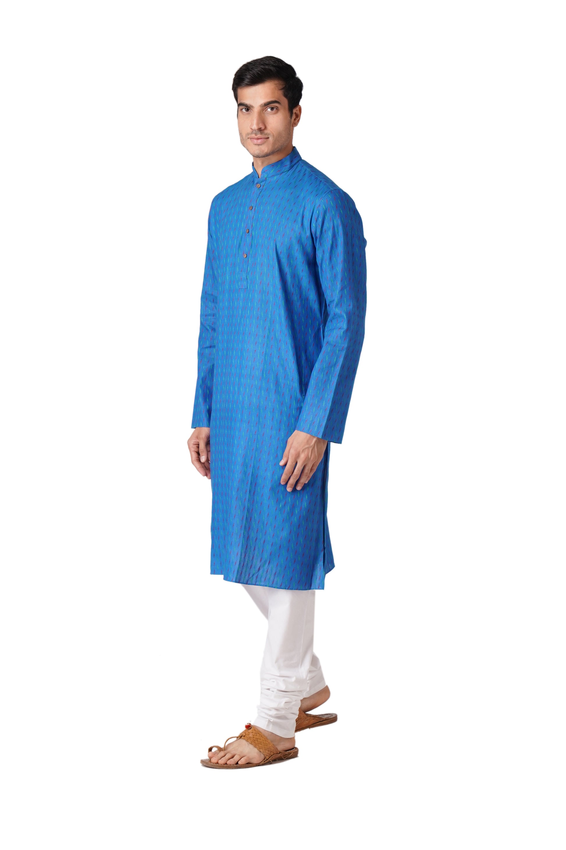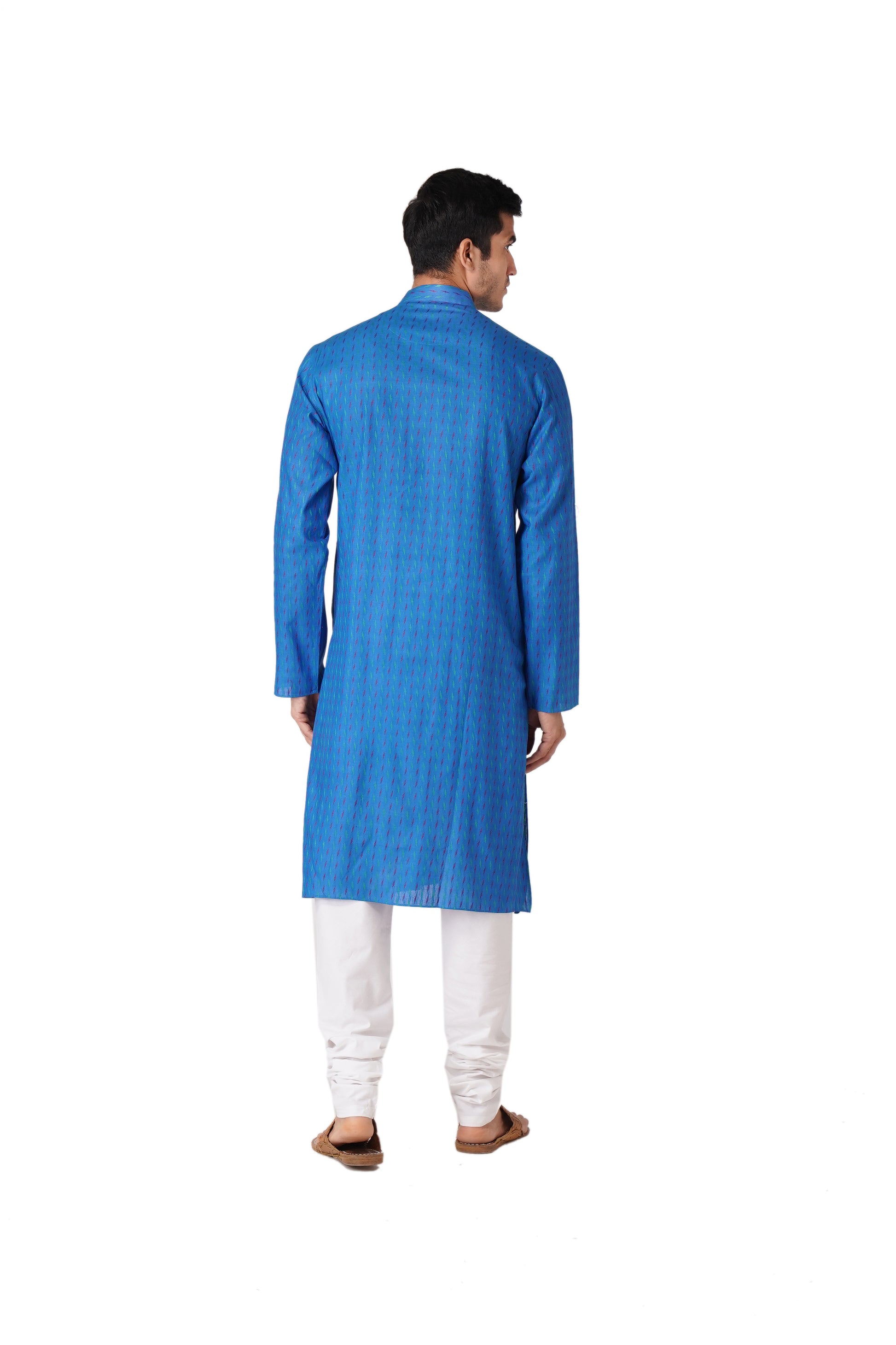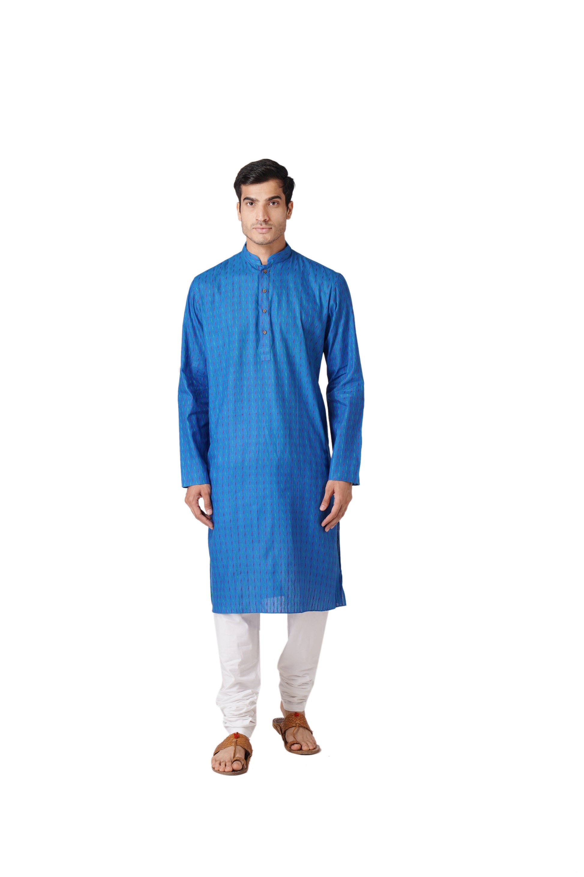 Full Sleeve Self Design Kurta and Churidar Set in Blue Pure Cotton