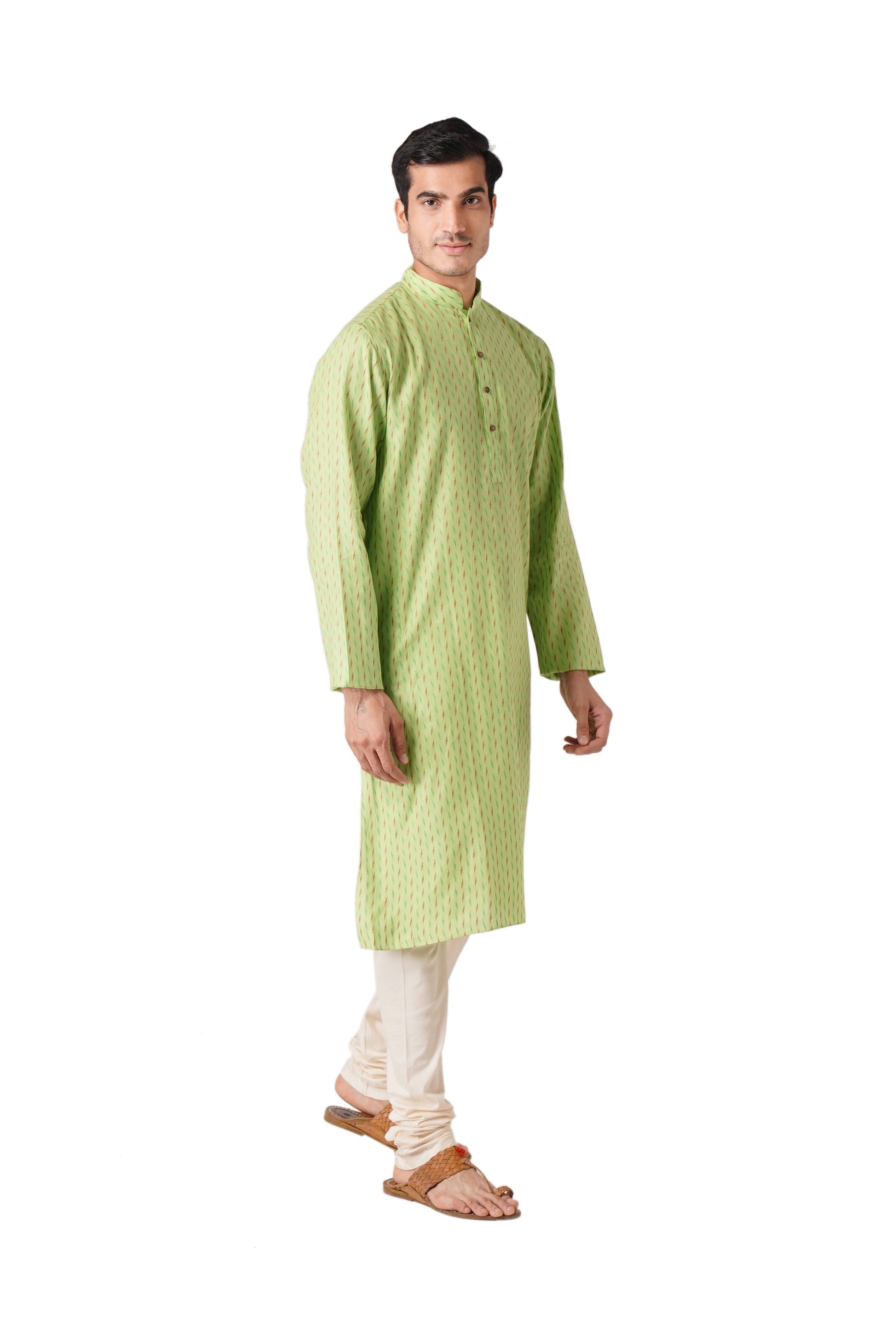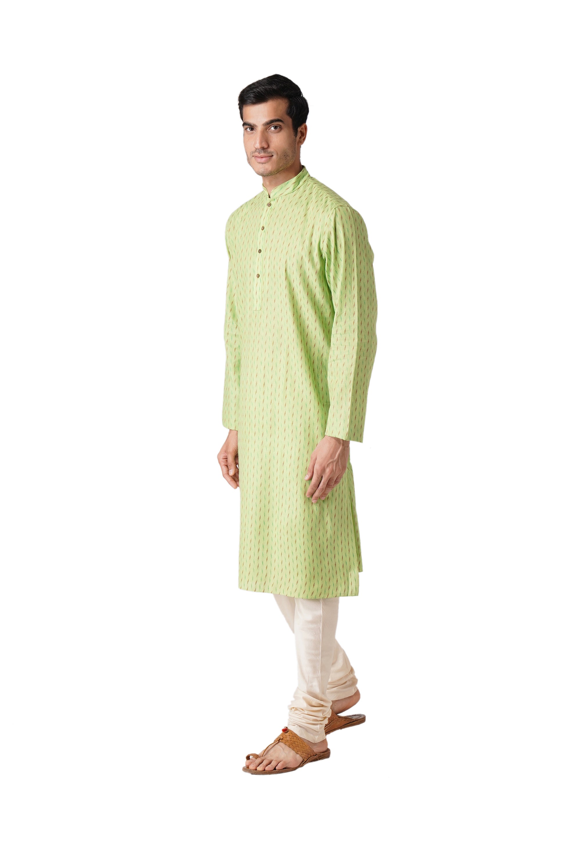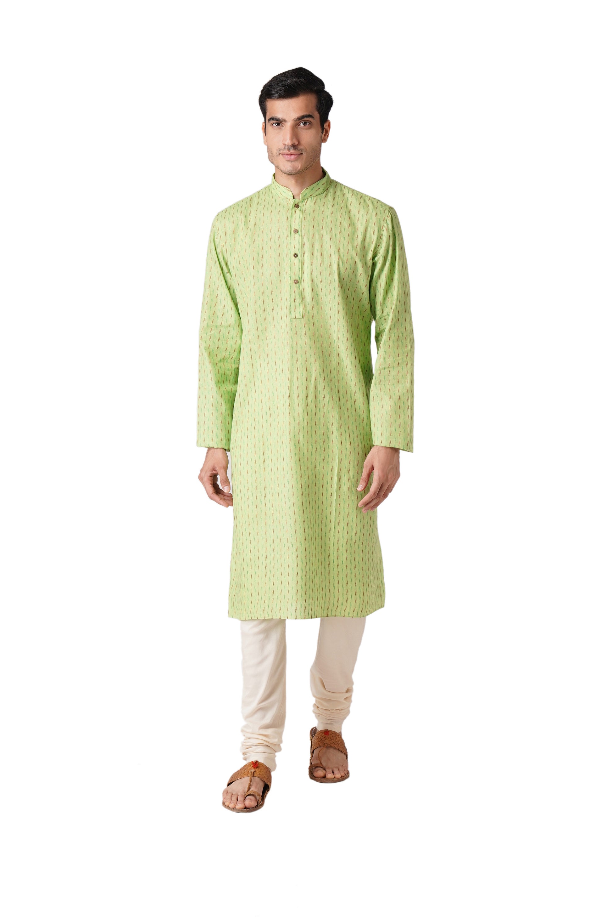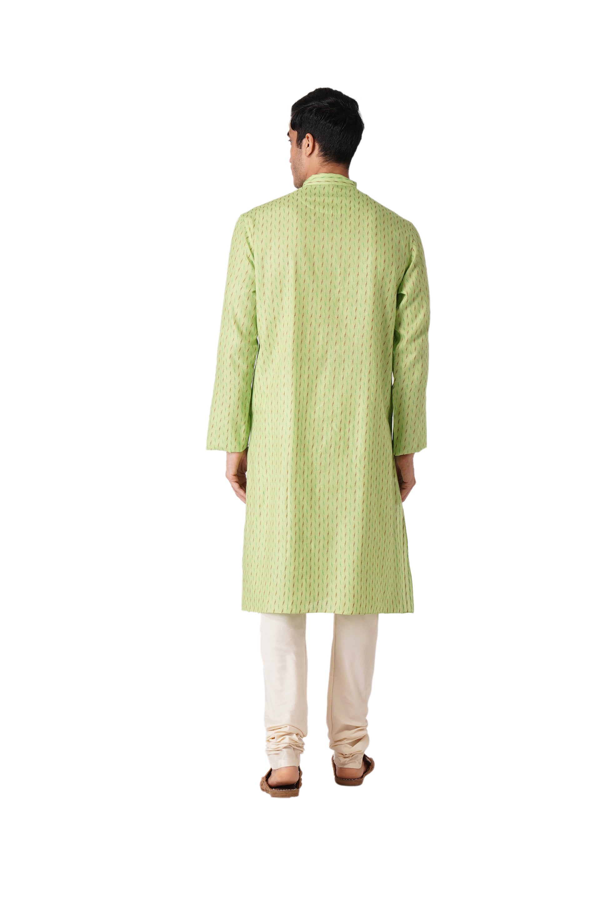 Full Sleeve Self Design Kurta and Churidar Set in Green Pure Cotton