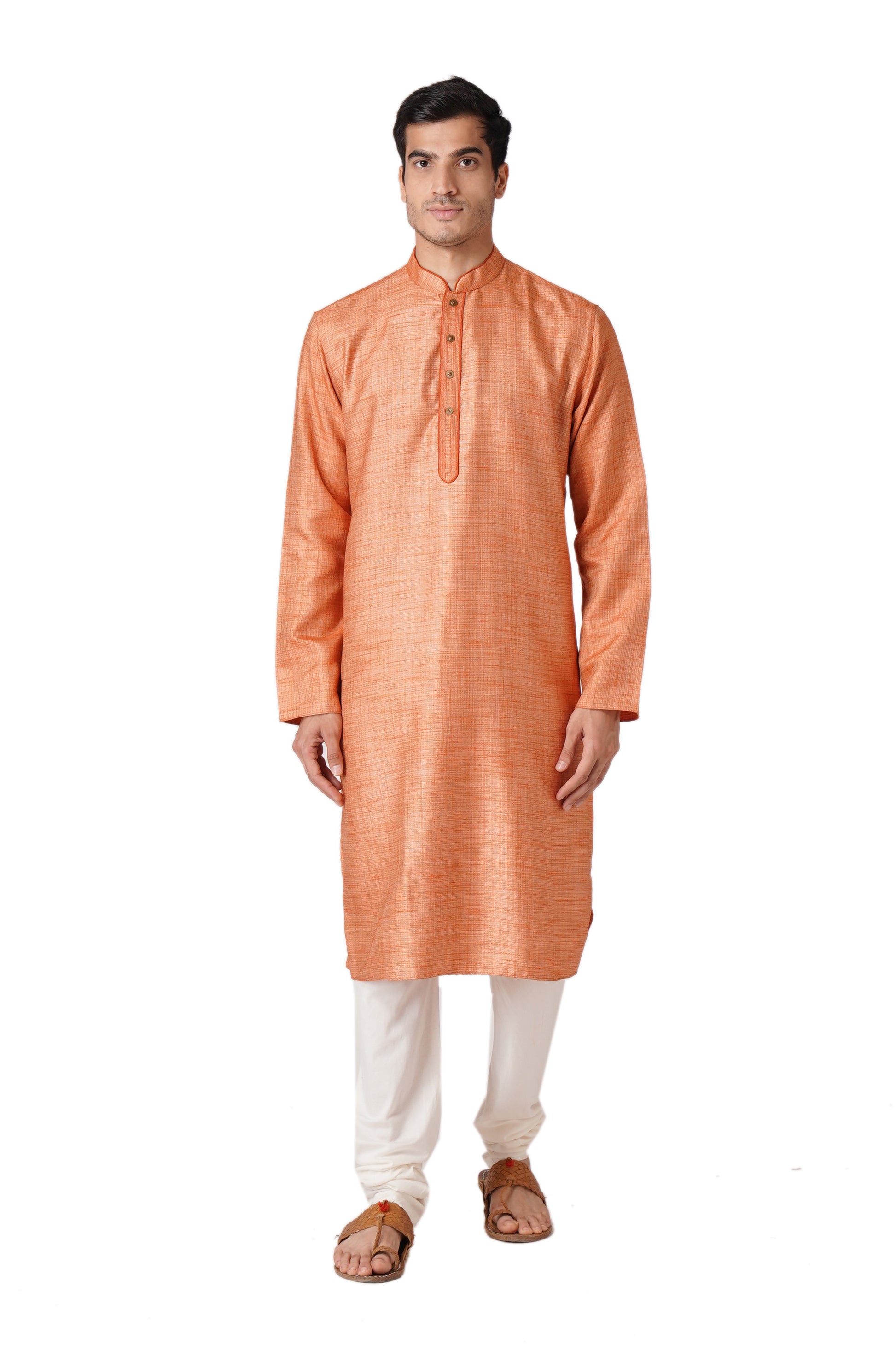 Presenting our meticulously crafted Men's Kurta and Churidar Set reflecting ZOIS's commitment to high-quality fashion. With intricate hand embroidery and a touch of simplicity, this Orange colored ensemble in Cotton Blend fabric exudes elegance. The Mandarin collar adds sophistication, embodying the simplicity that is at the core of our design philosophy. With ZOIS, embrace the fusion of tradition and contemporary style in this versatile ethnic wear.
