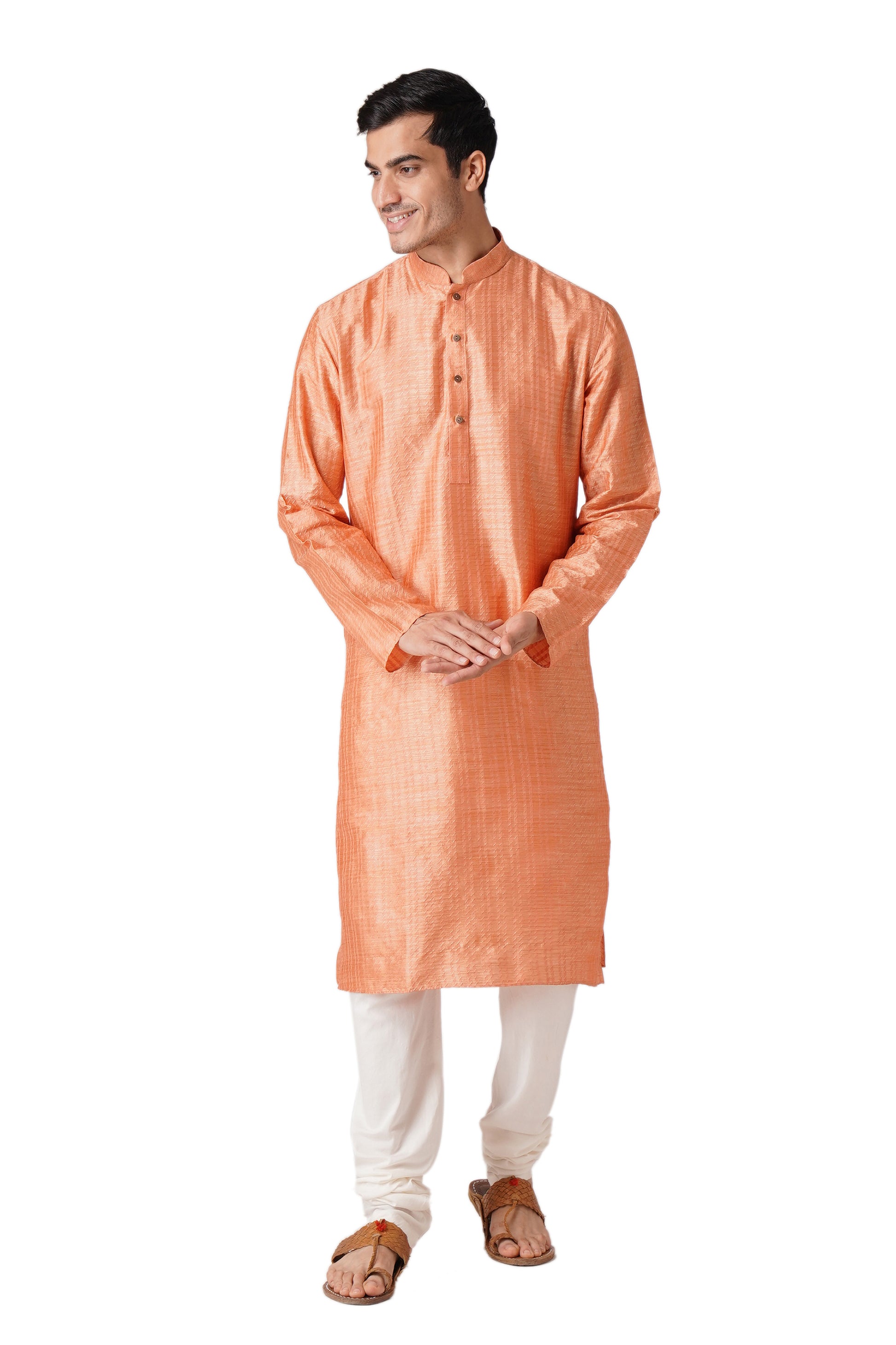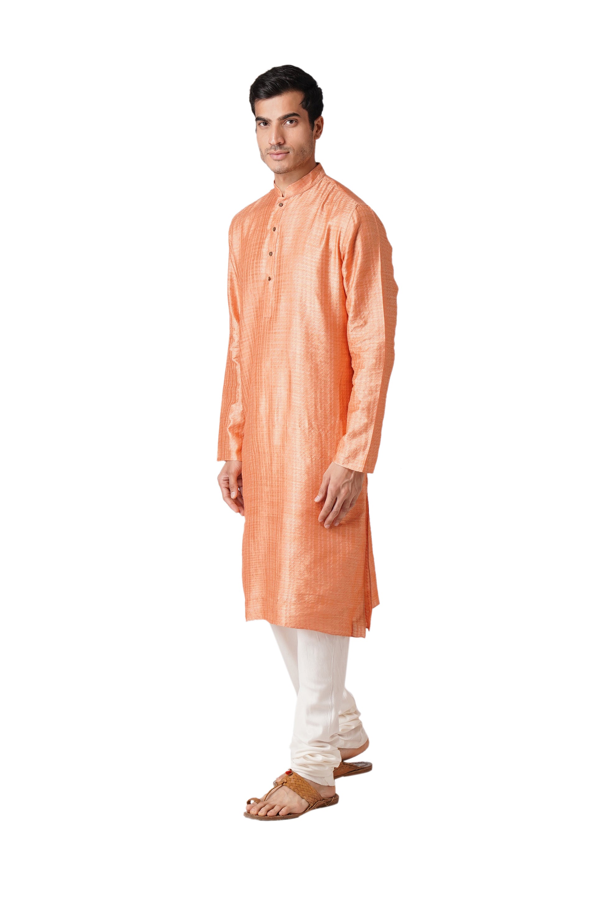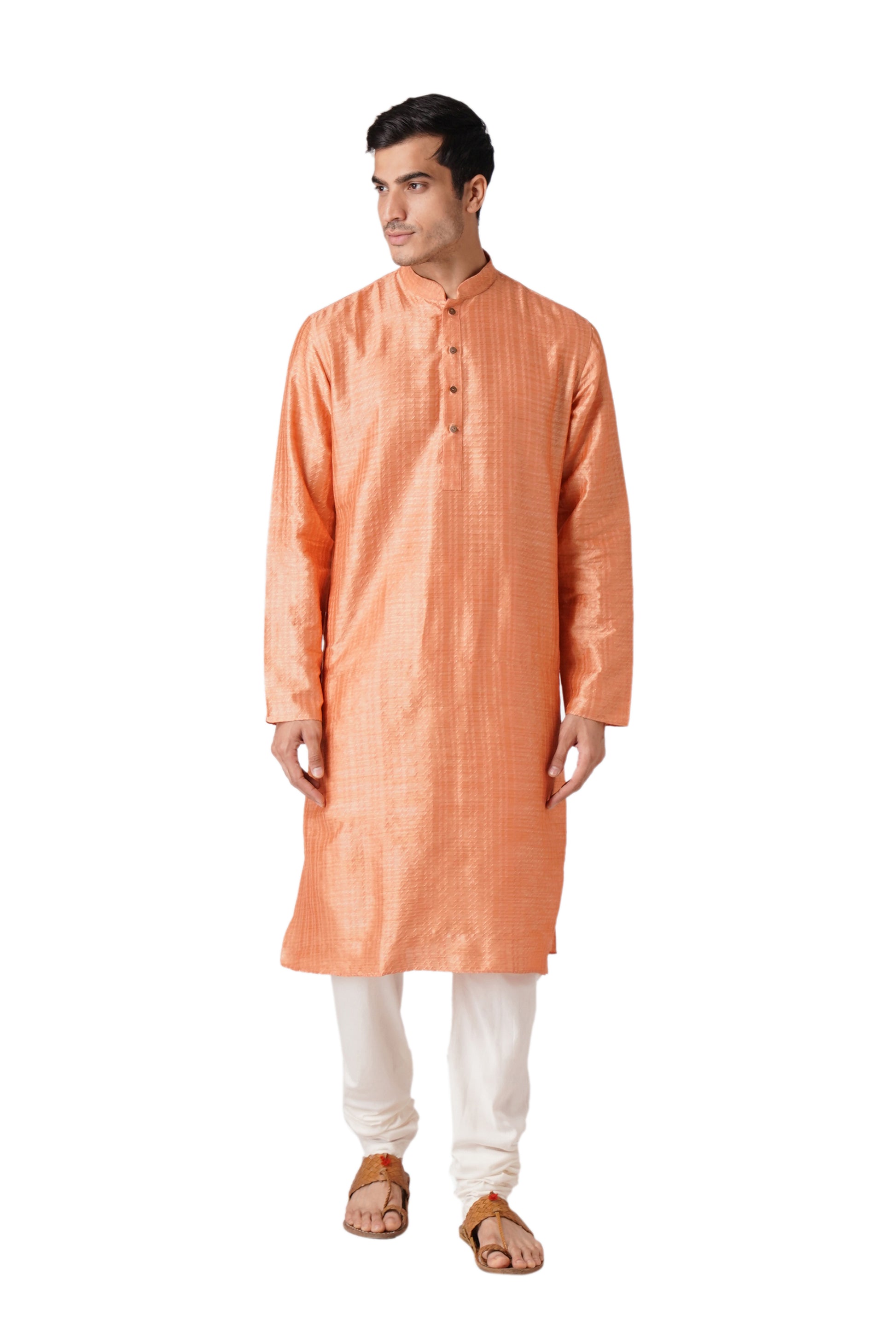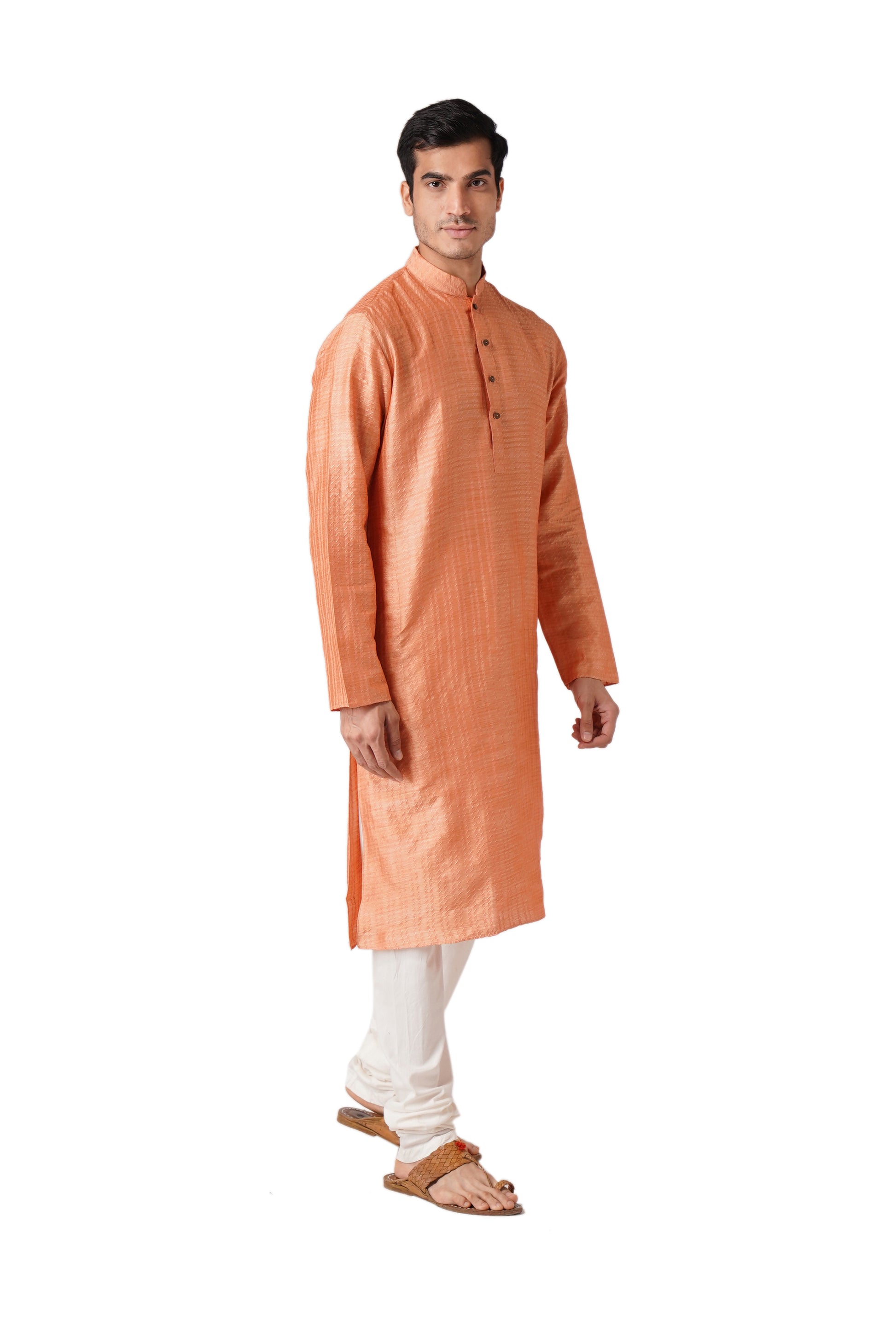Presenting our meticulously crafted Men's Kurta and Churidar Set reflecting ZOIS's commitment to high-quality fashion. With intricate hand embroidery and a touch of simplicity, this Orange colored ensemble in Pure Cotton fabric exudes elegance. The Mandarin collar adds sophistication, embodying the simplicity that is at the core of our design philosophy. With ZOIS, embrace the fusion of tradition and contemporary style in this versatile ethnic wear.