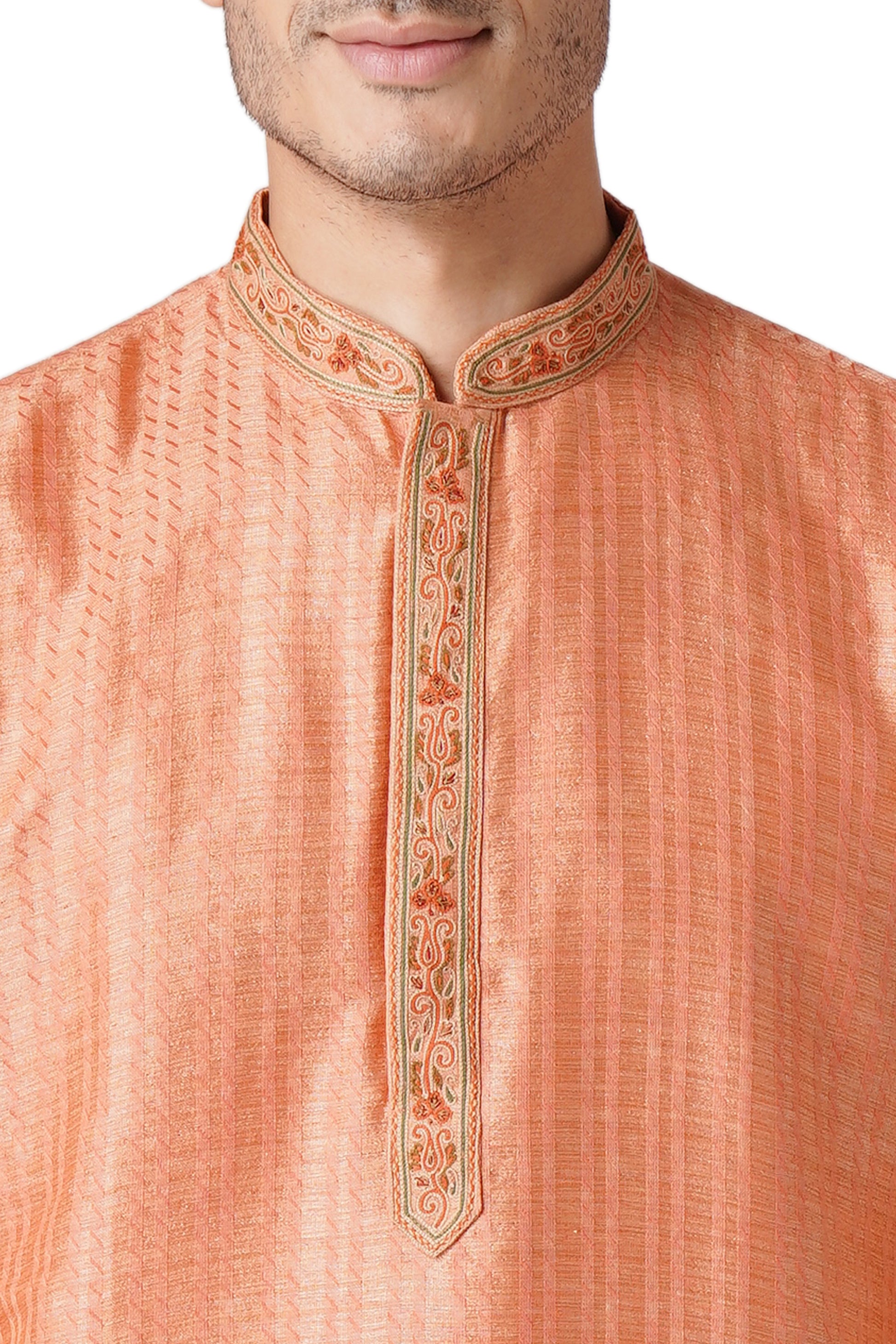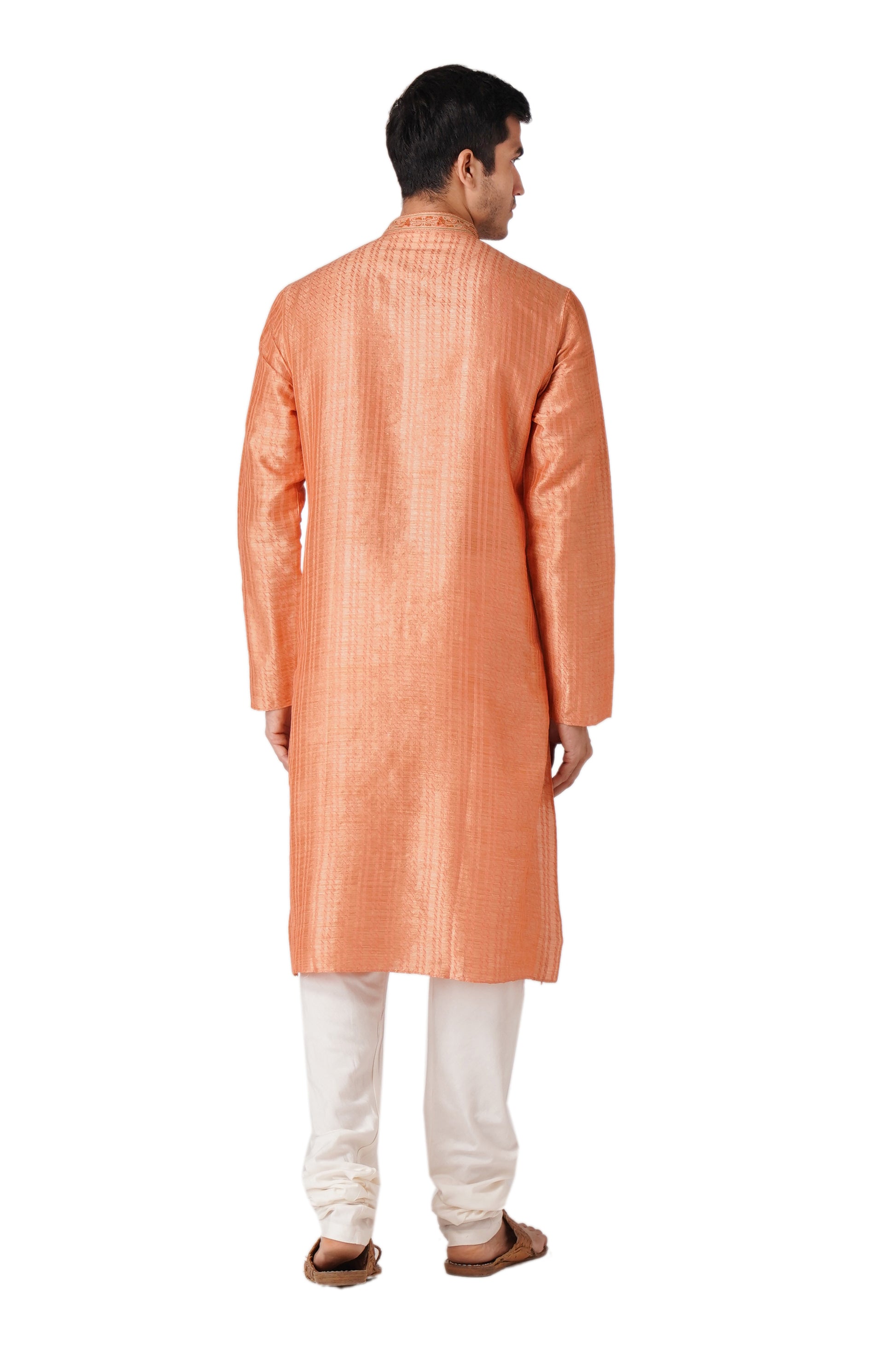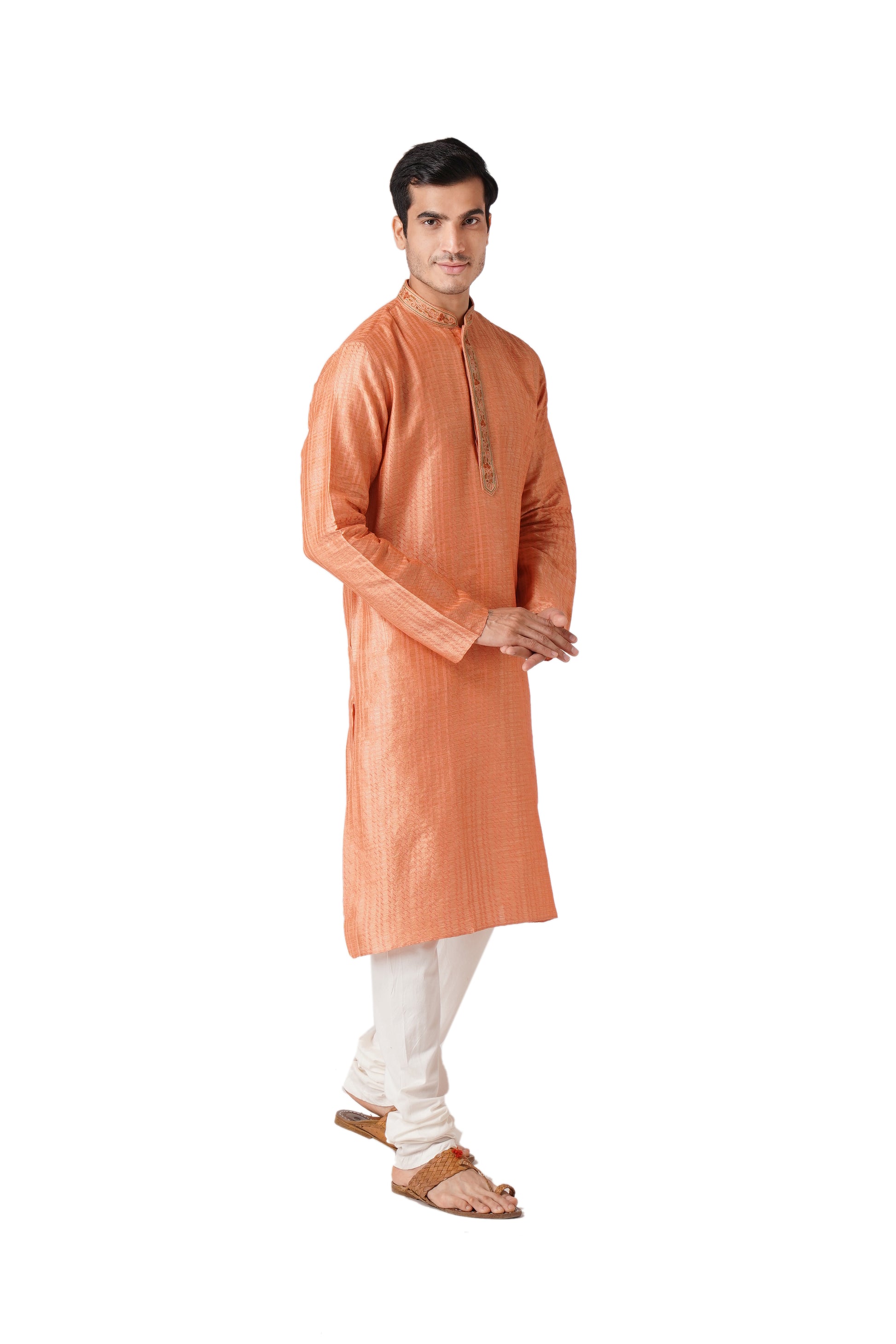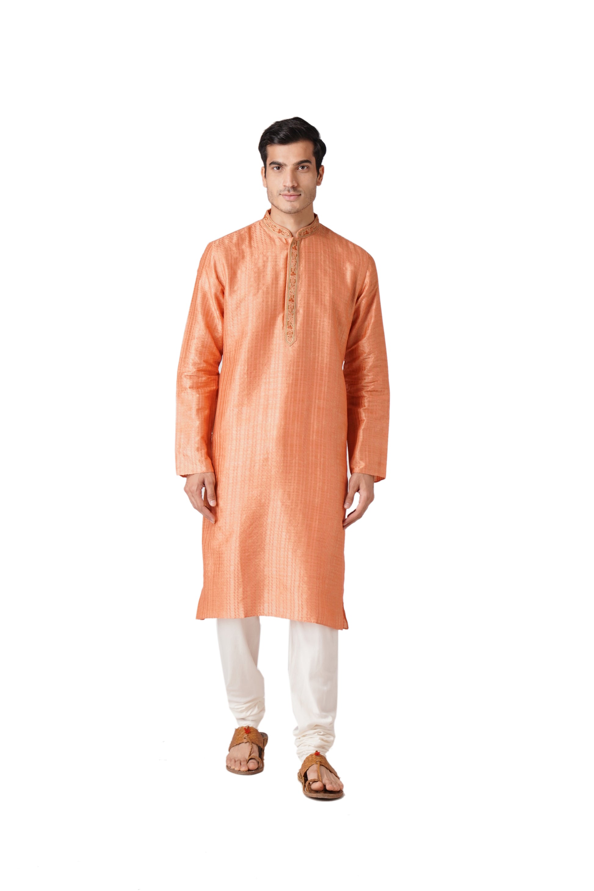 Presenting our meticulously crafted Men's Kurta and Churidar Set reflecting ZOIS's commitment to high-quality fashion. With intricate hand embroidery and a touch of simplicity, this Orange colored ensemble in Pure Cotton fabric exudes elegance. The Mandarin collar adds sophistication, embodying the simplicity that is at the core of our design philosophy. With ZOIS, embrace the fusion of tradition and contemporary style in this versatile ethnic wear.