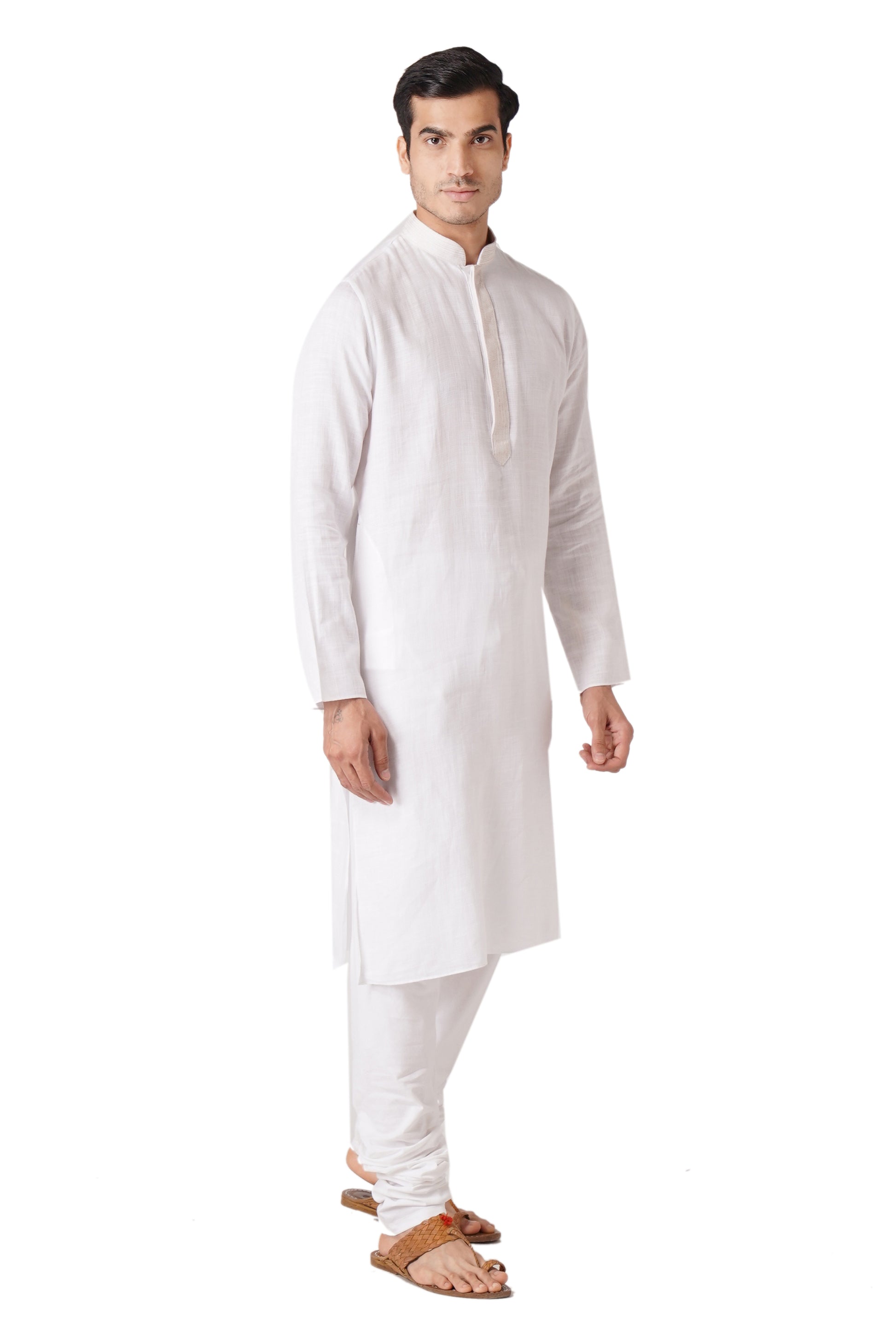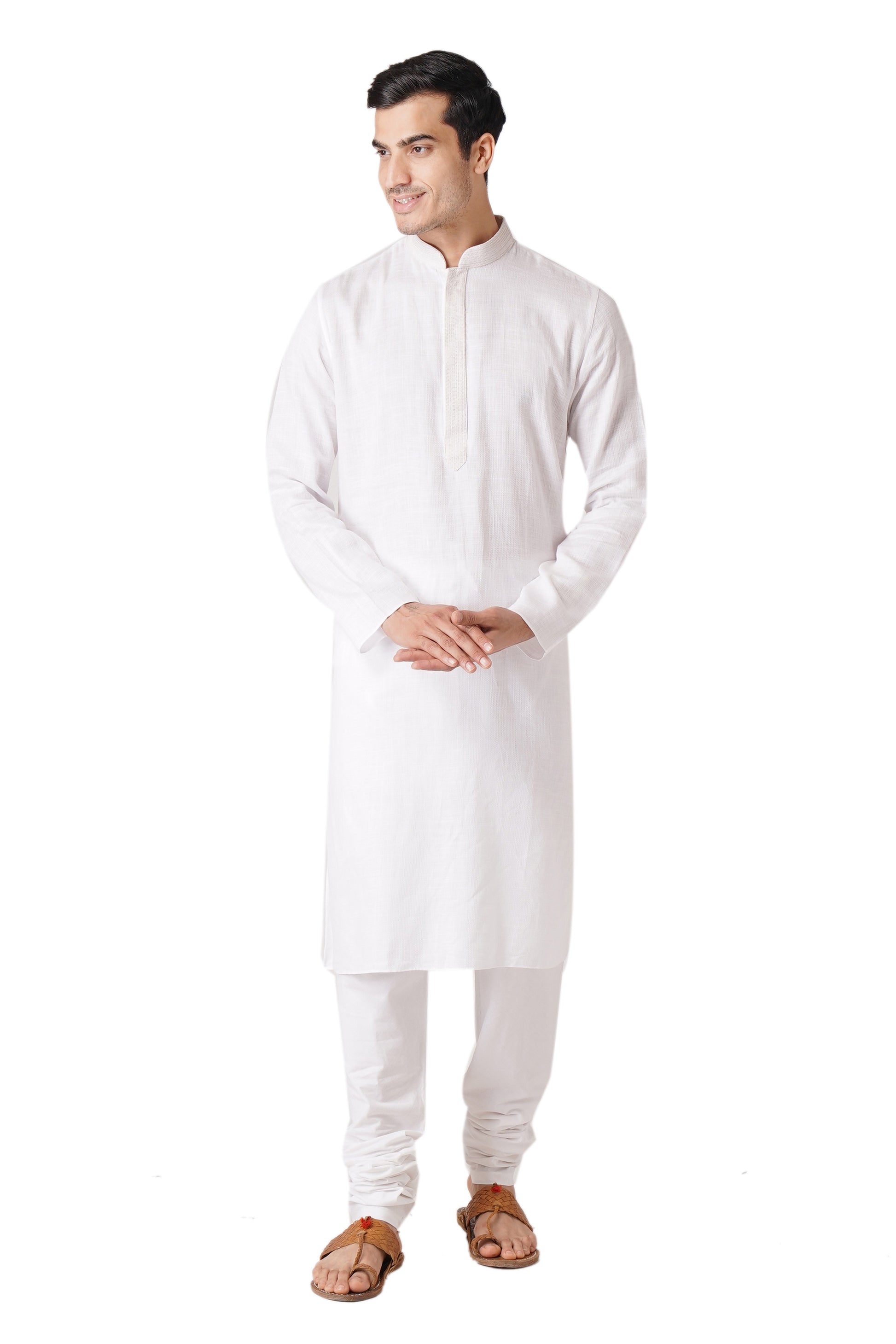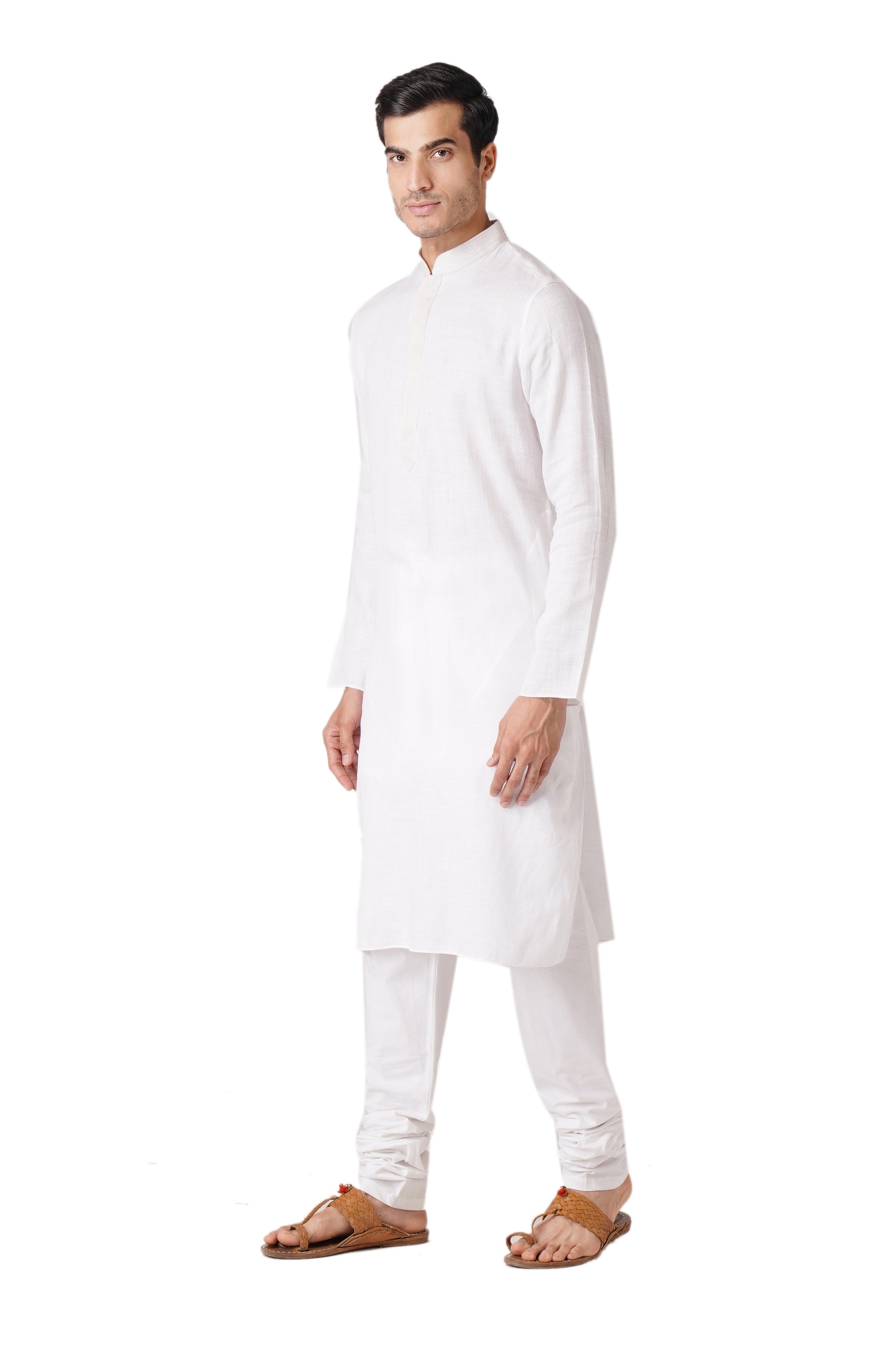 Full Sleeve Self Design Kurta and Churidar Set in White Pure Cotton