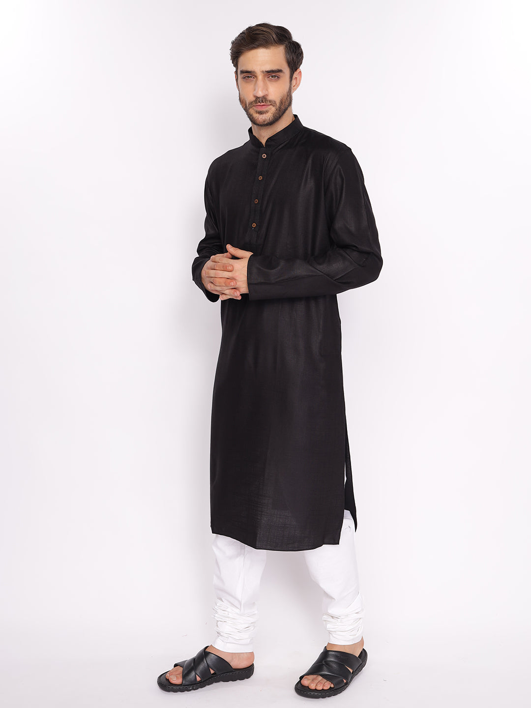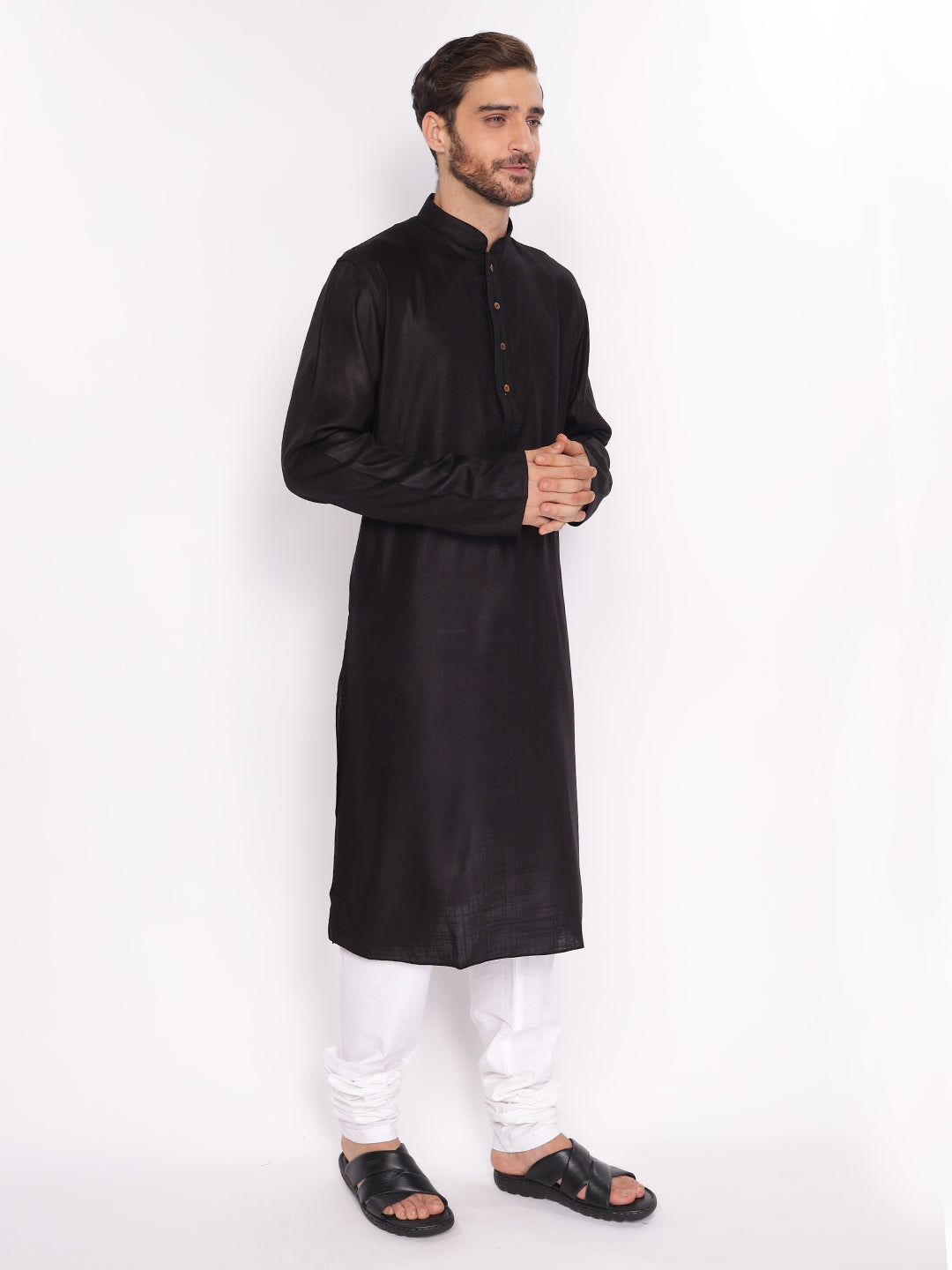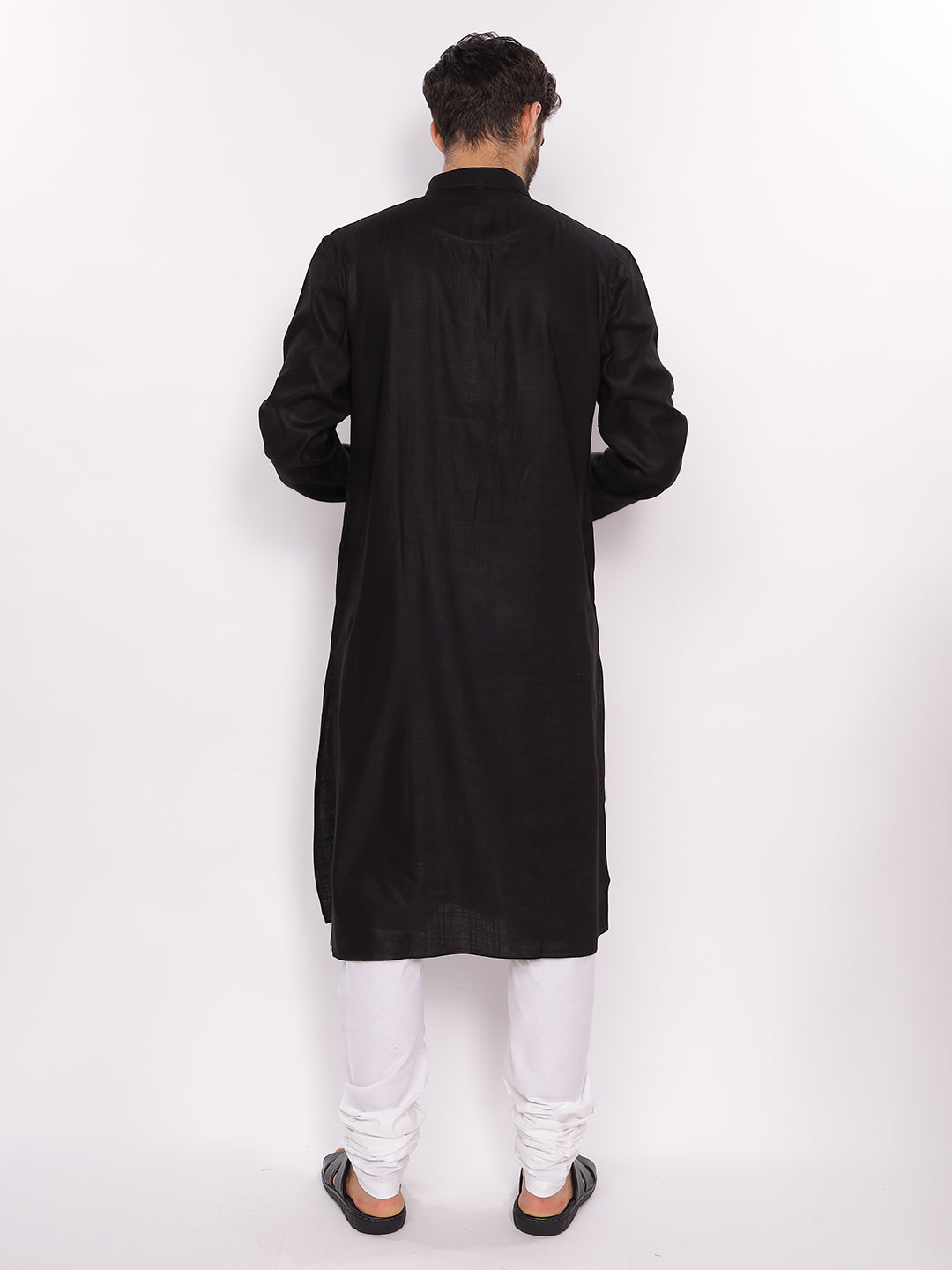 Full Sleeve Self Design Kurta and Pyjama Set in Black::White Pure Cotton