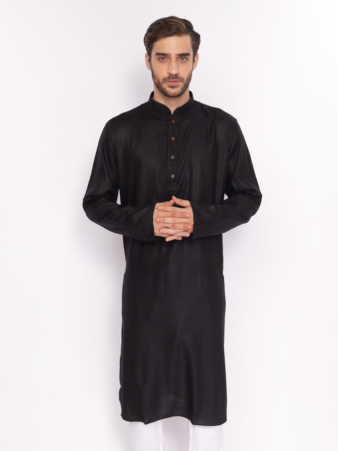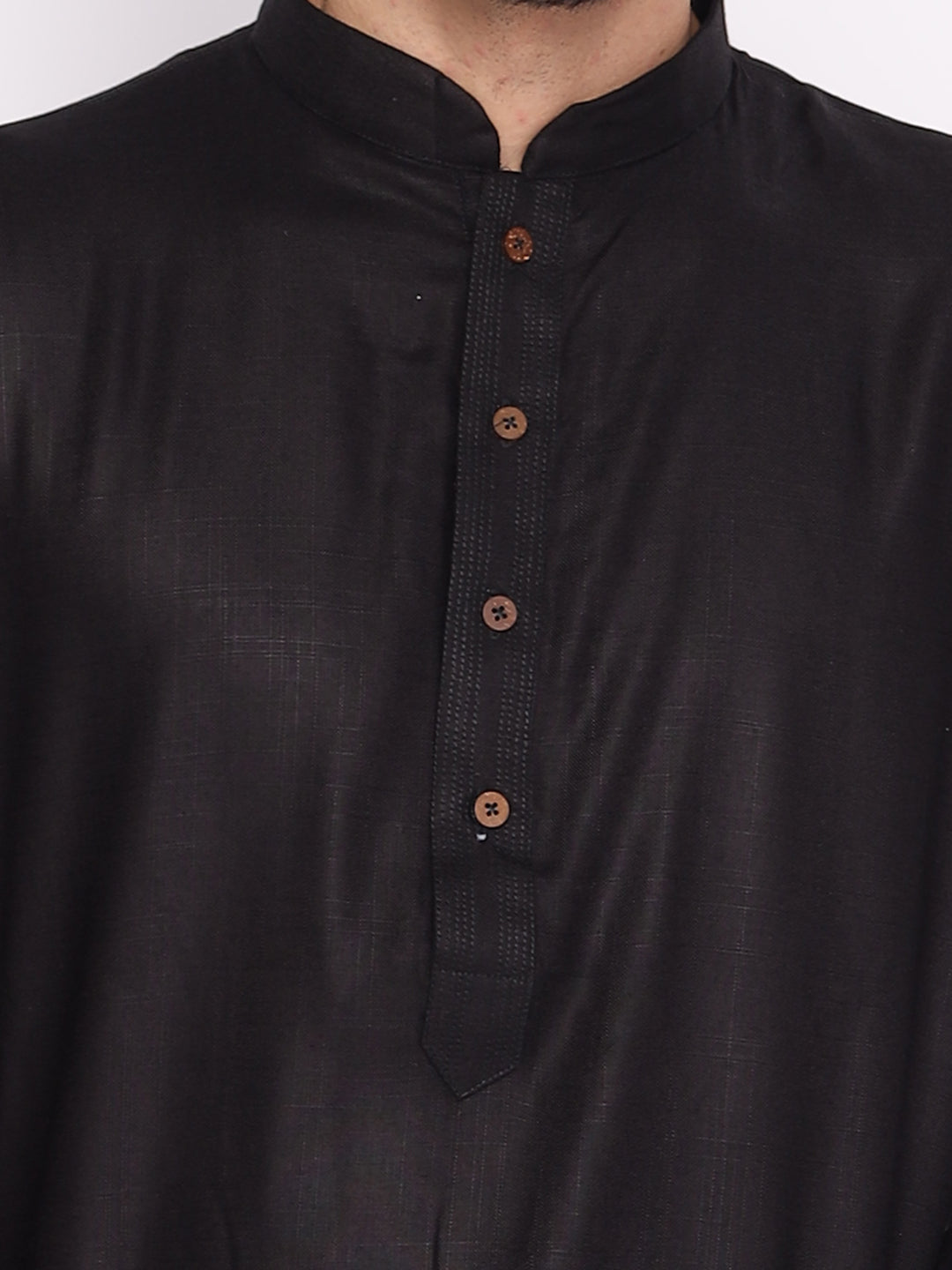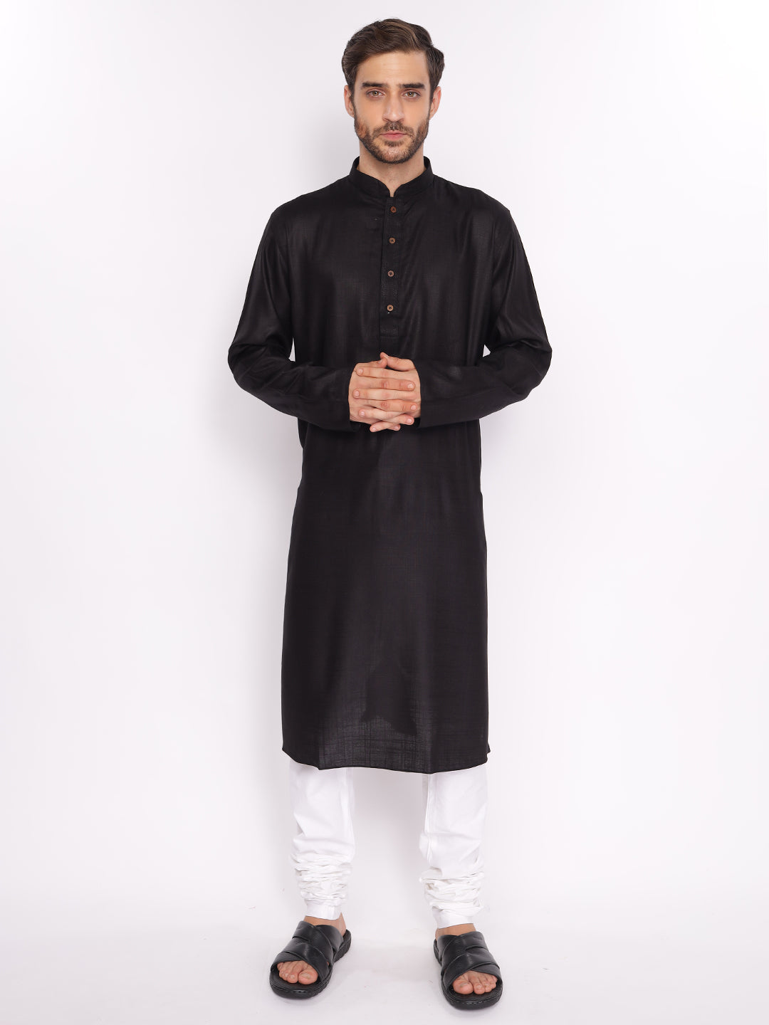 Full Sleeve Self Design Kurta and Pyjama Set in Black::White Pure Cotton