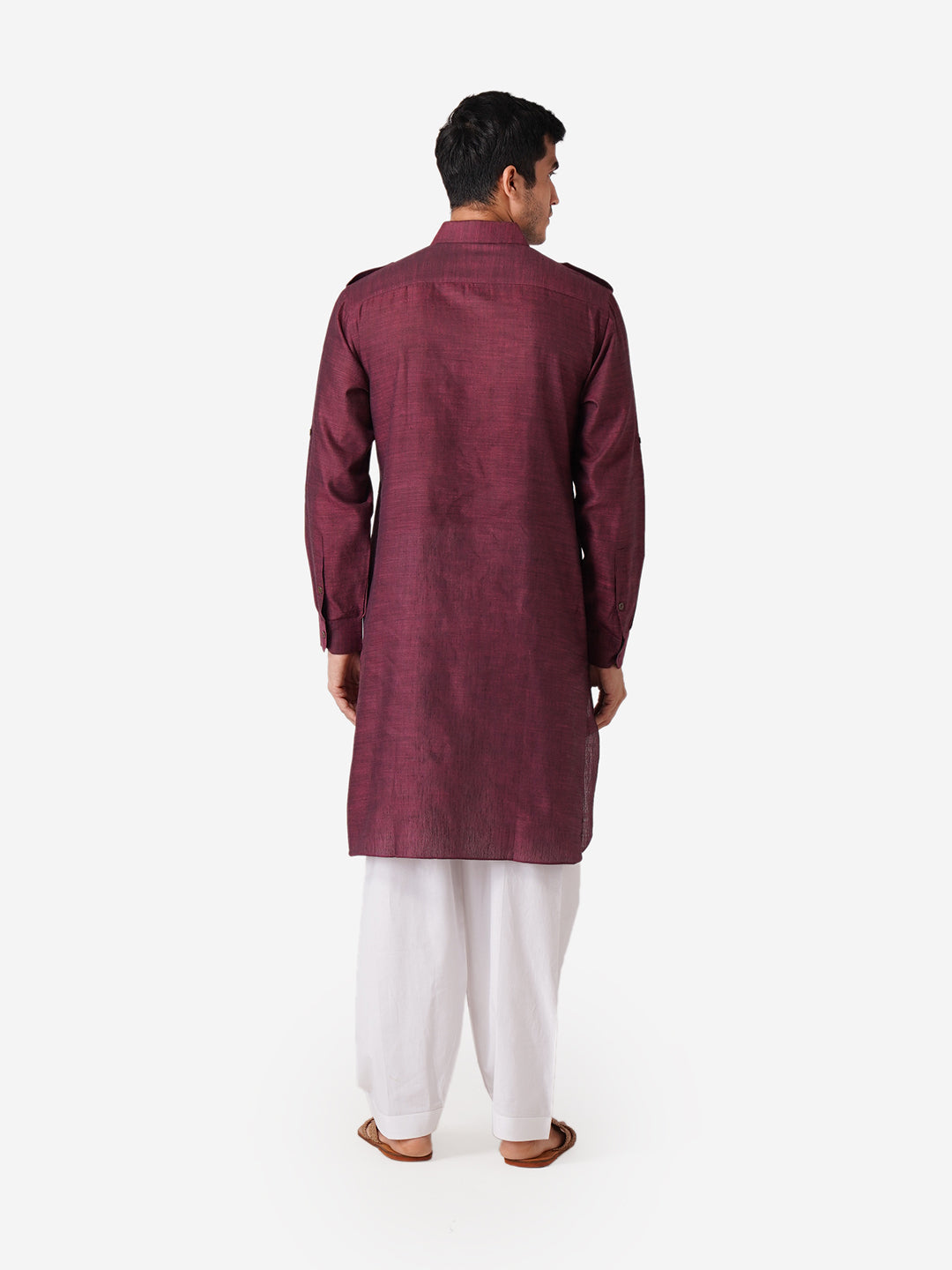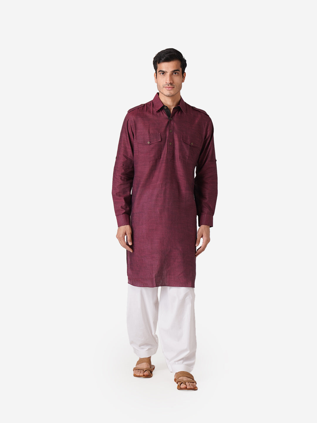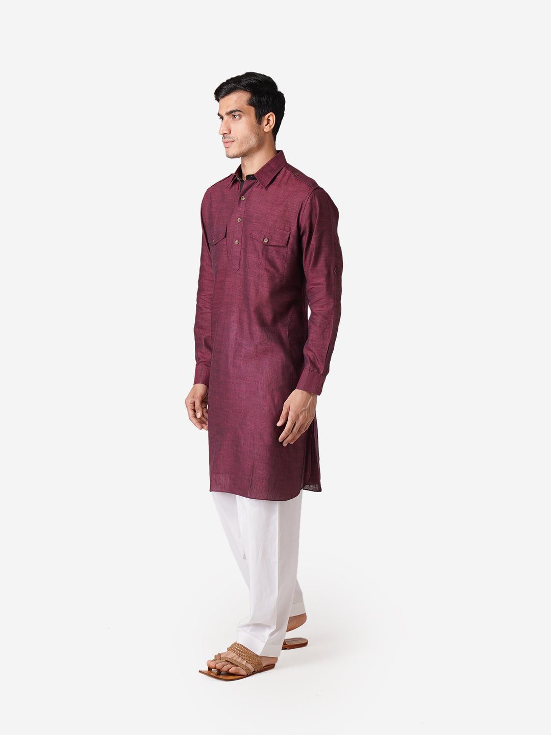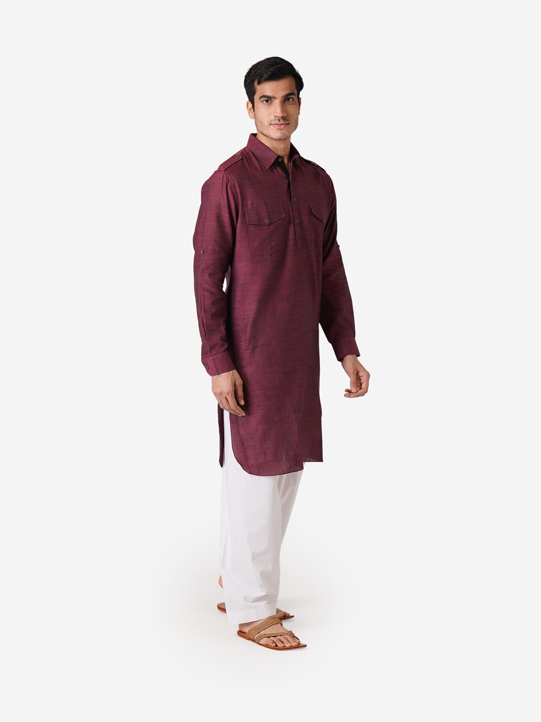 Full Sleeve Self Design Kurta and Pyjama Set in Purple Pure Cotton