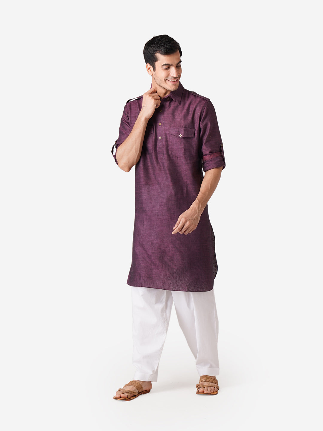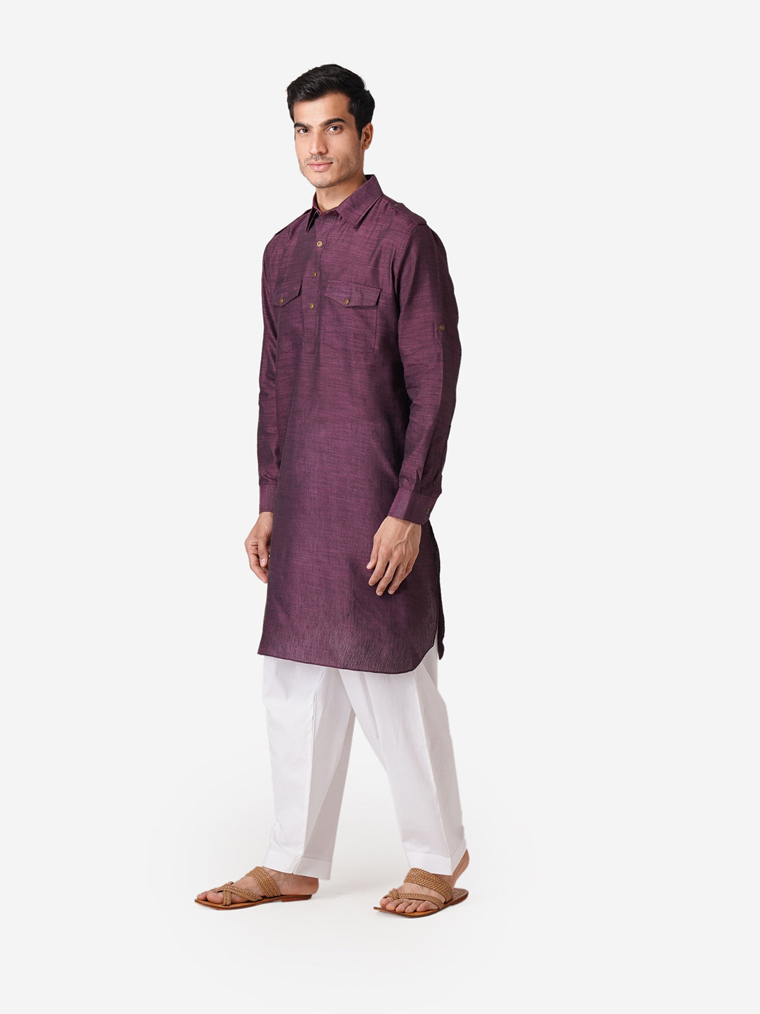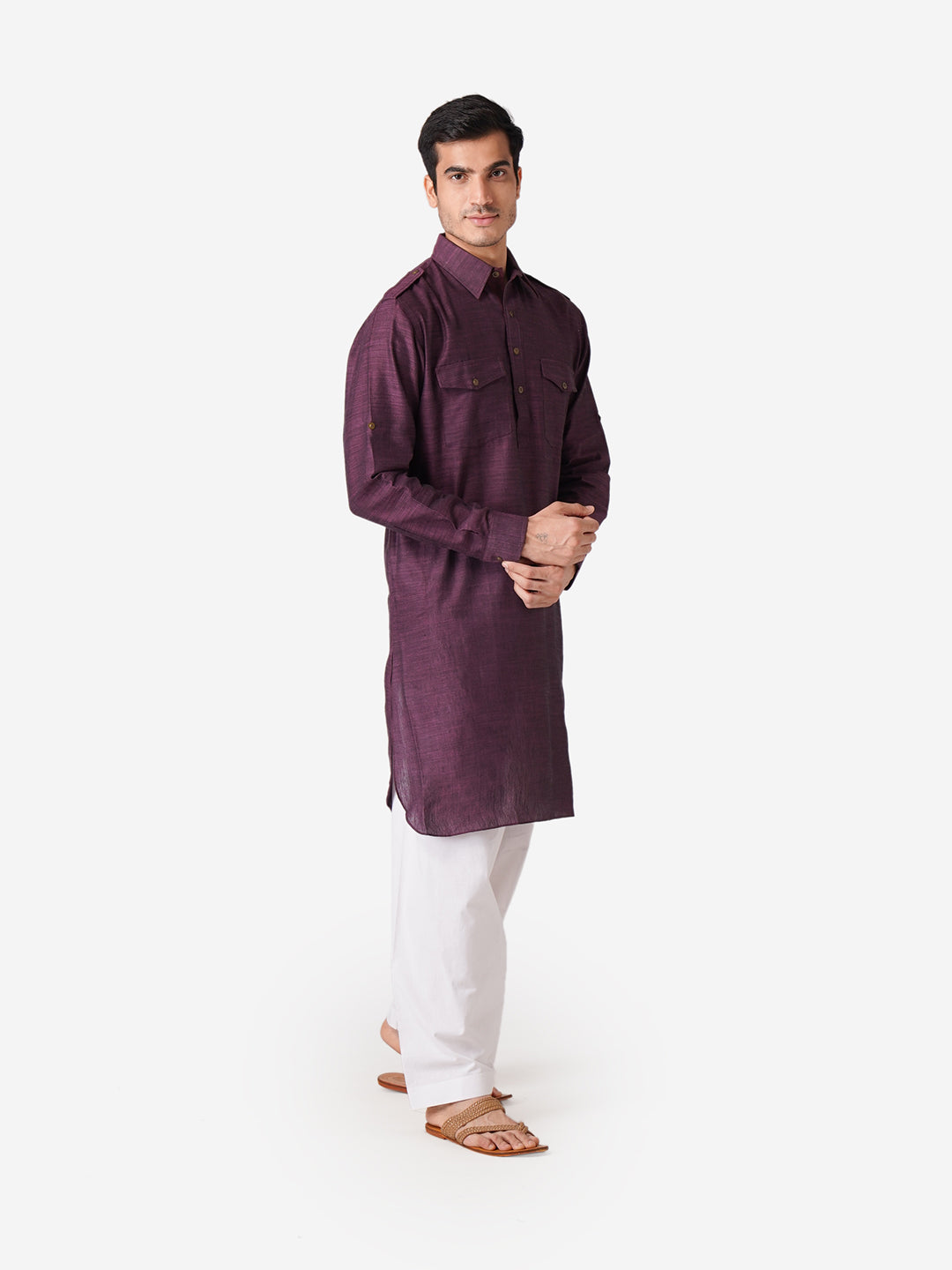Presenting our meticulously crafted Men's Kurta and Pyjama Set reflecting ZOIS's commitment to high-quality fashion. With intricate hand embroidery and a touch of simplicity, this Purple colored ensemble in Pure Cotton fabric exudes elegance. The Mandarin collar adds sophistication, embodying the simplicity that is at the core of our design philosophy. With ZOIS, embrace the fusion of tradition and contemporary style in this versatile ethnic wear.