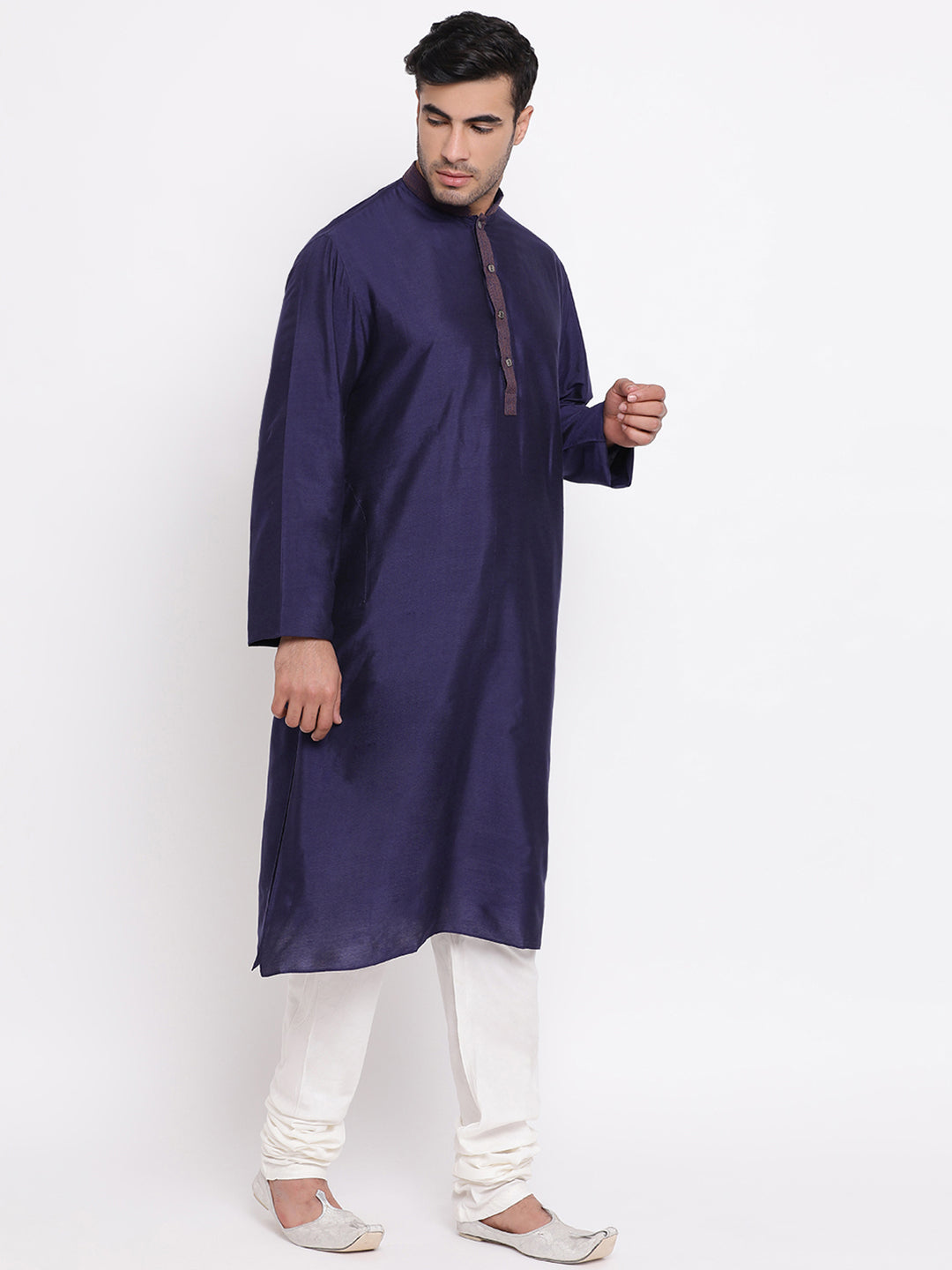 Full Sleeve Solid Kurta and Churidar Set in Blue Silk Blend