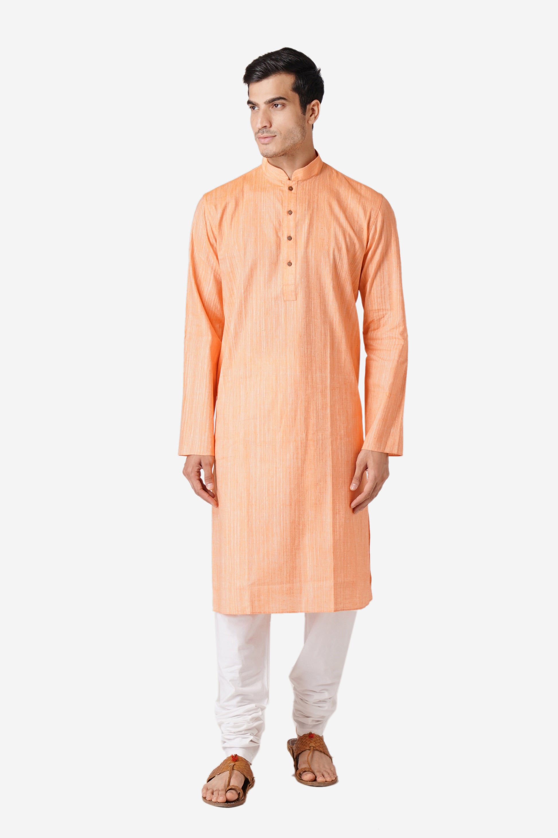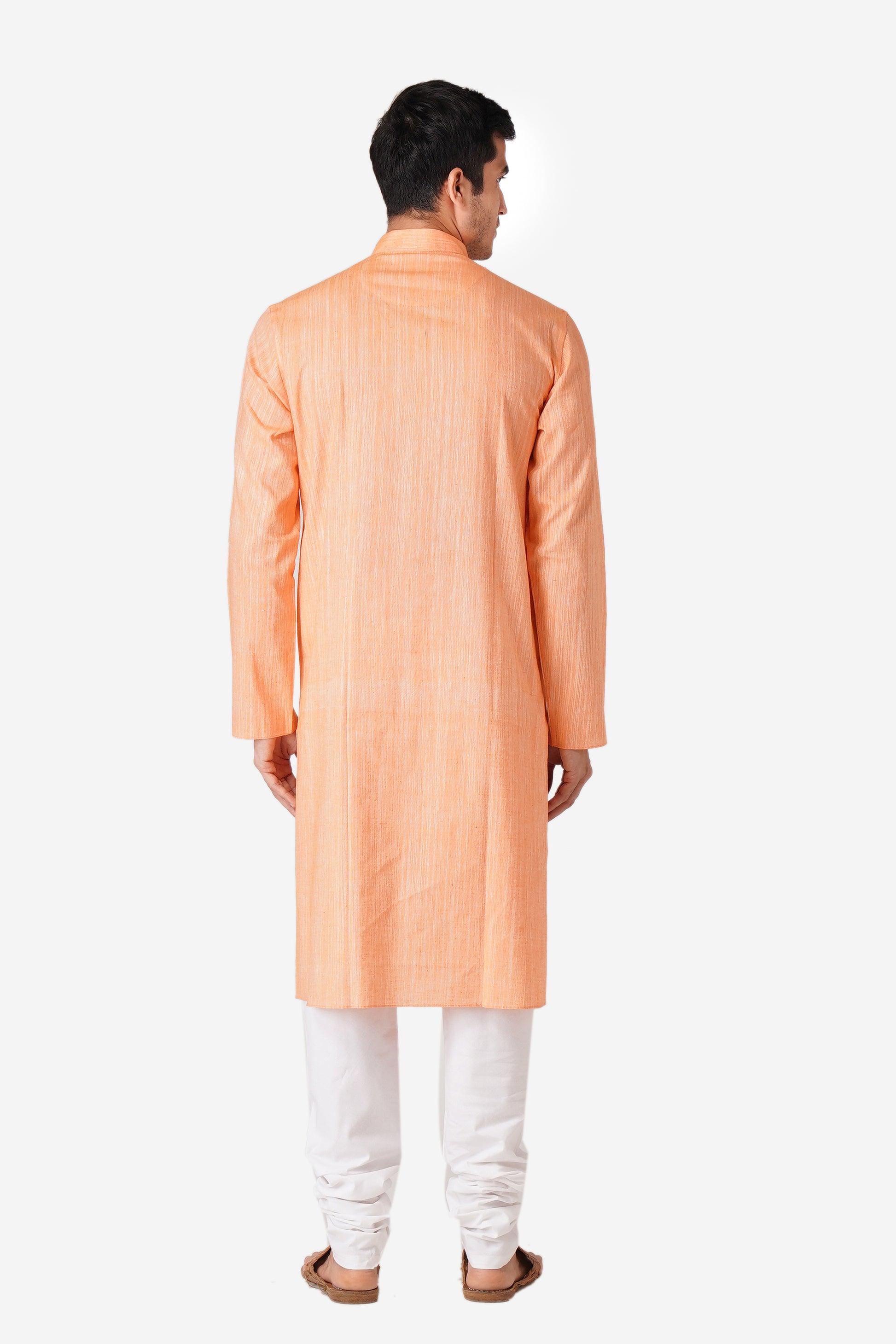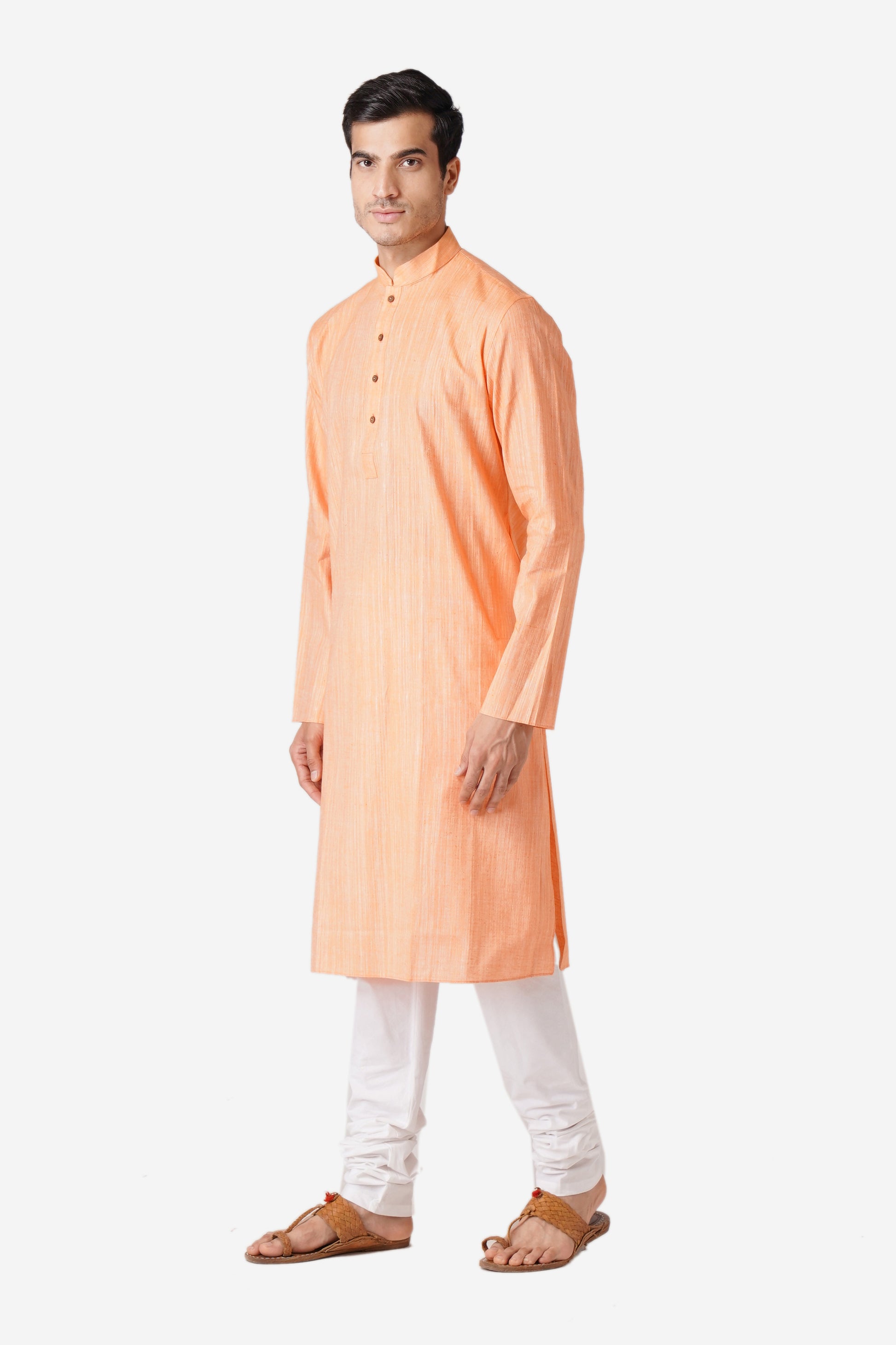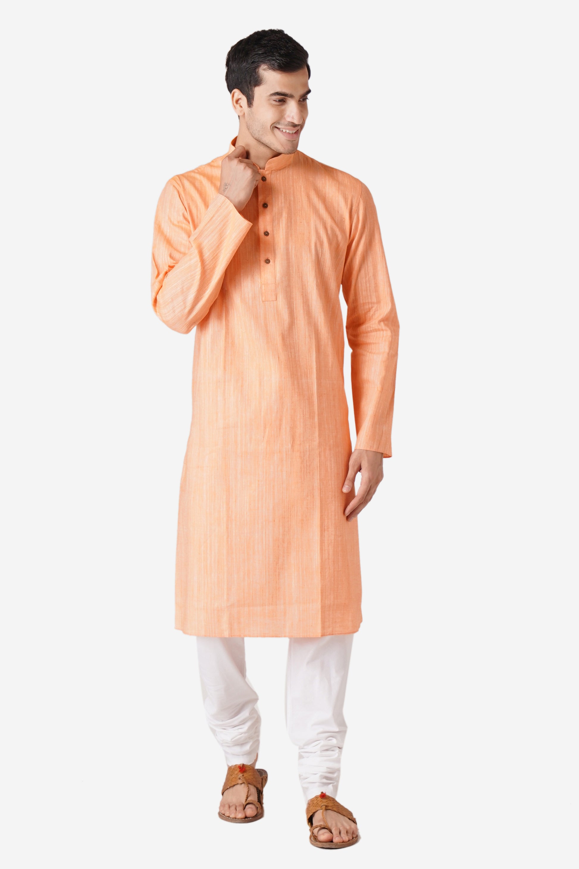 Full Sleeve Solid Kurta and Churidar Set in Orange Khadi Cotton