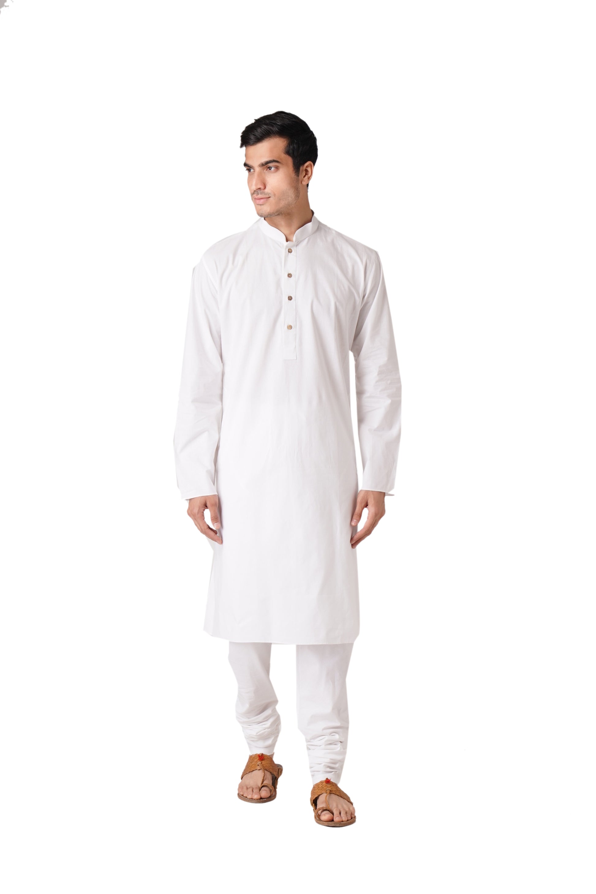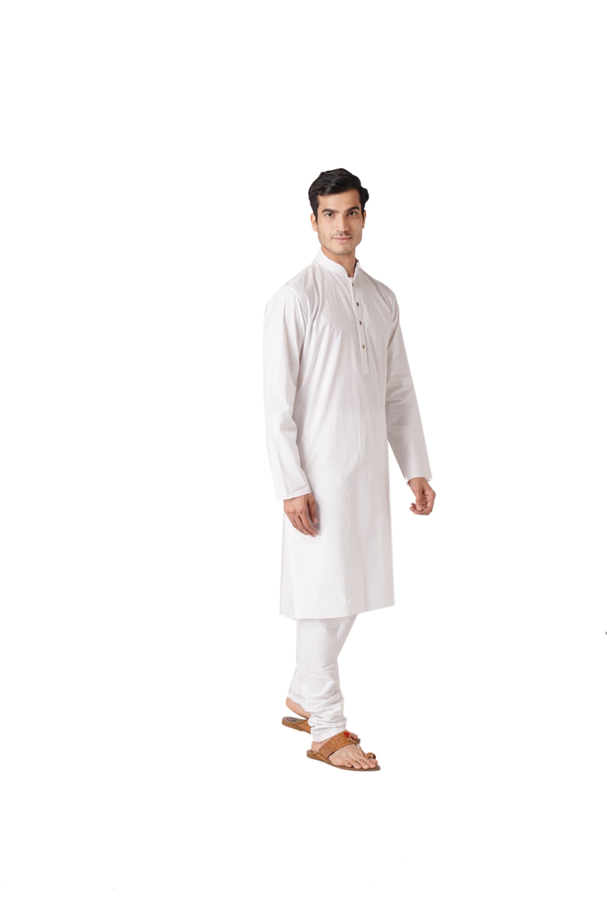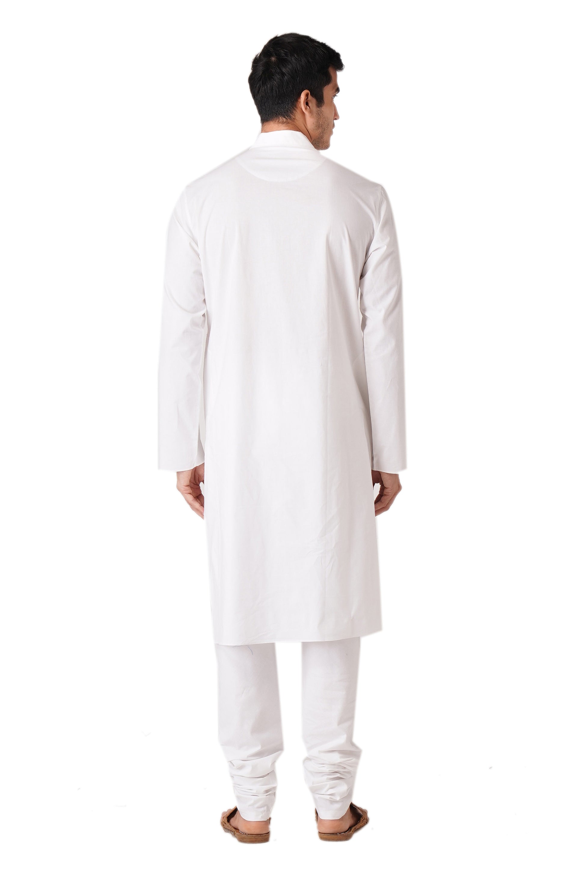 Full Sleeve Solid Kurta and Churidar Set in White Pure Cotton