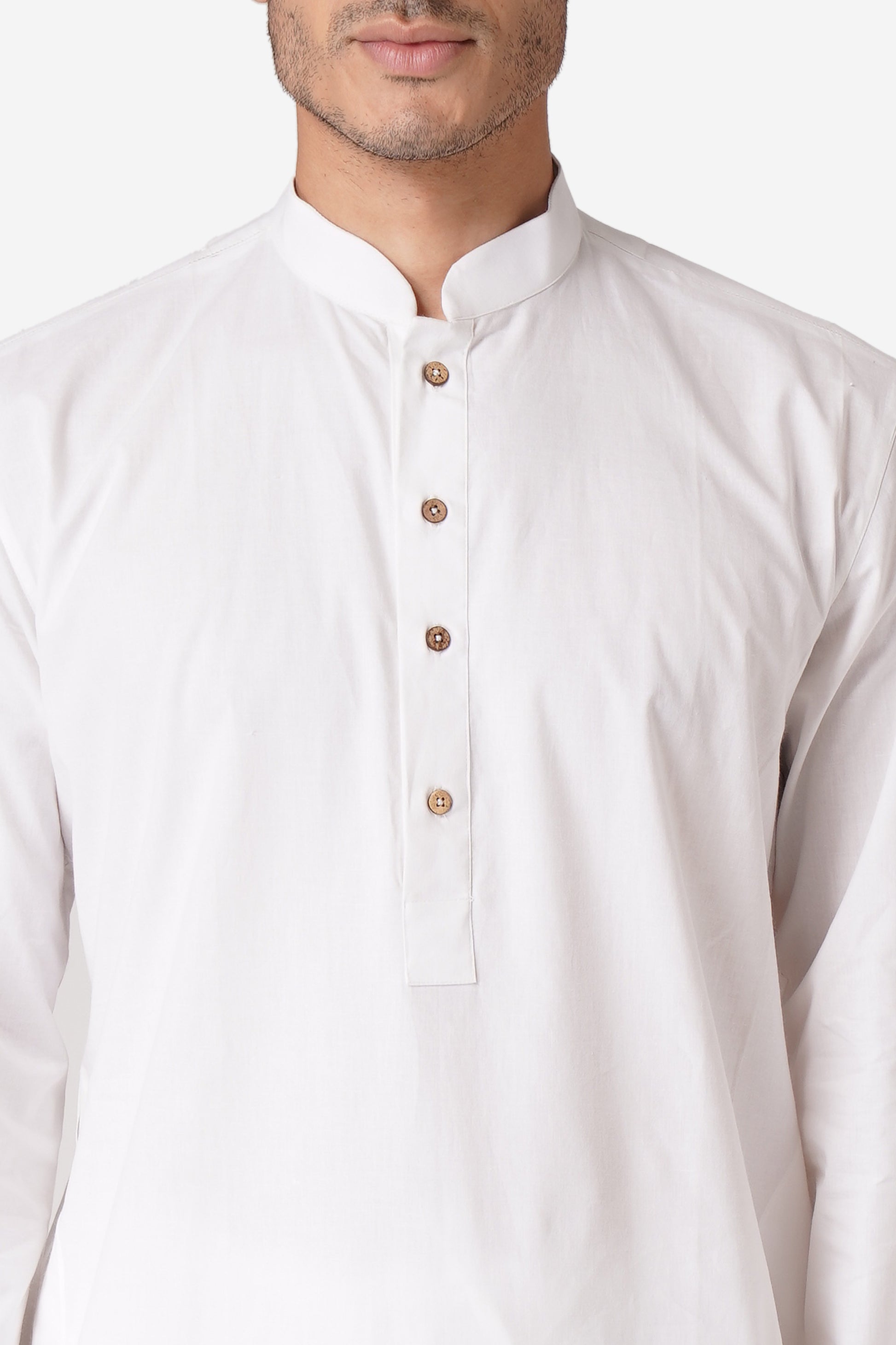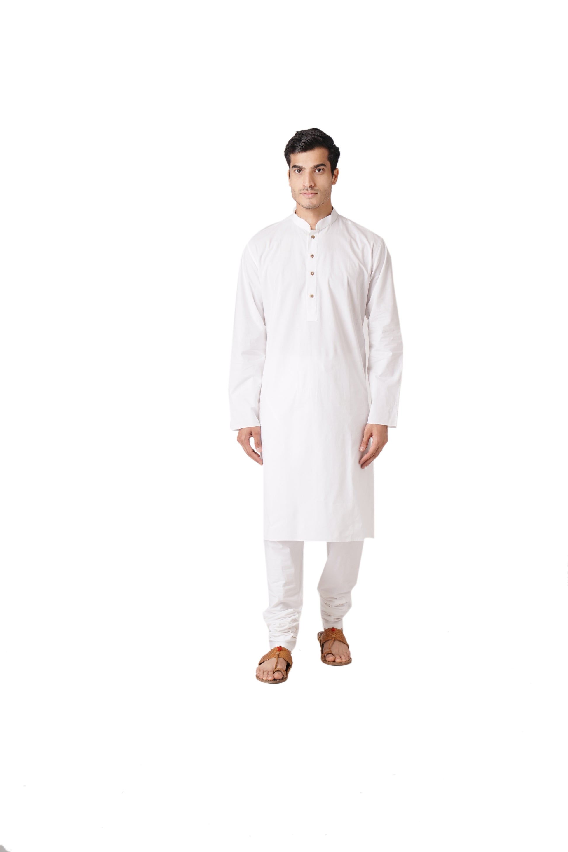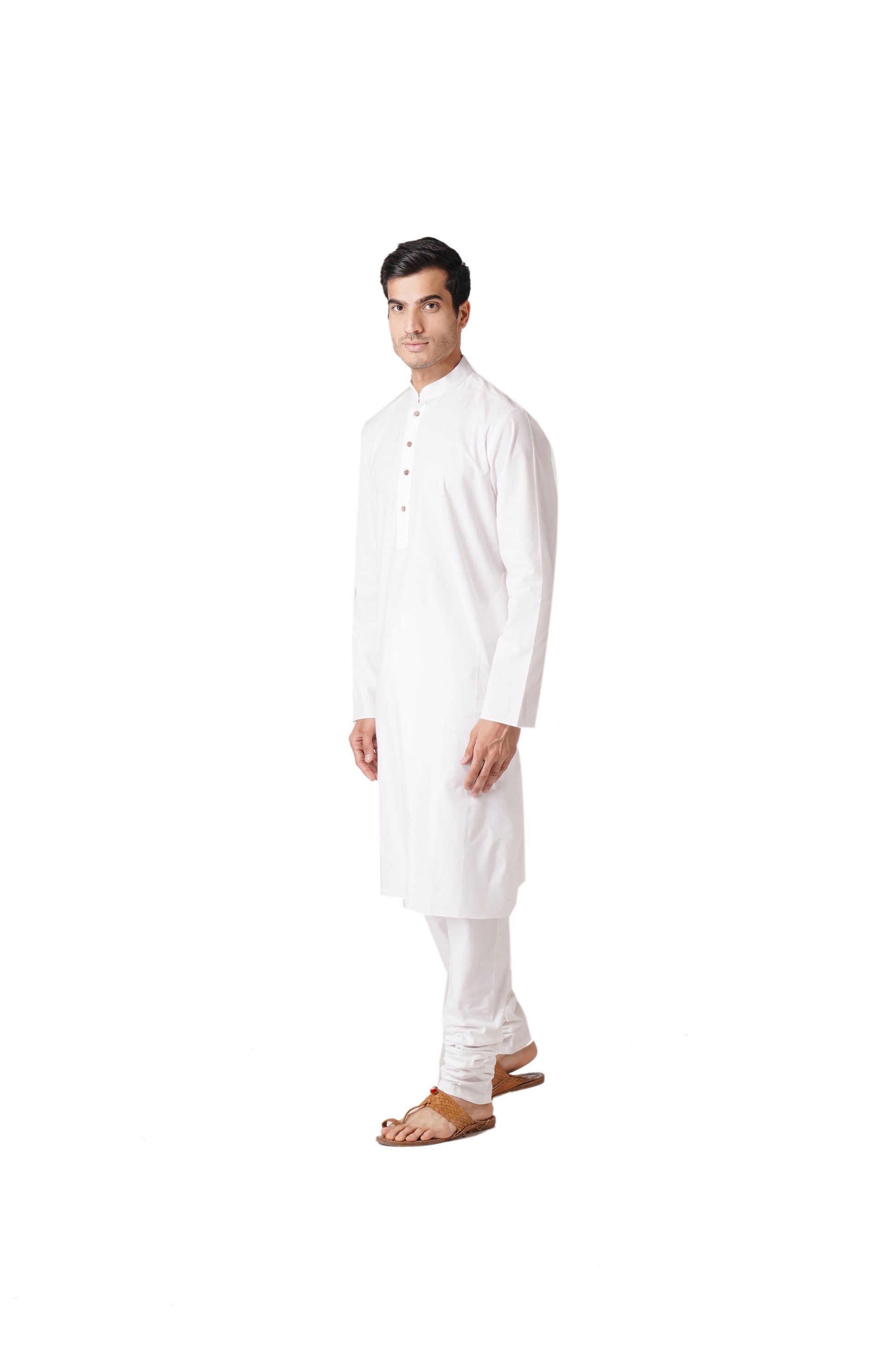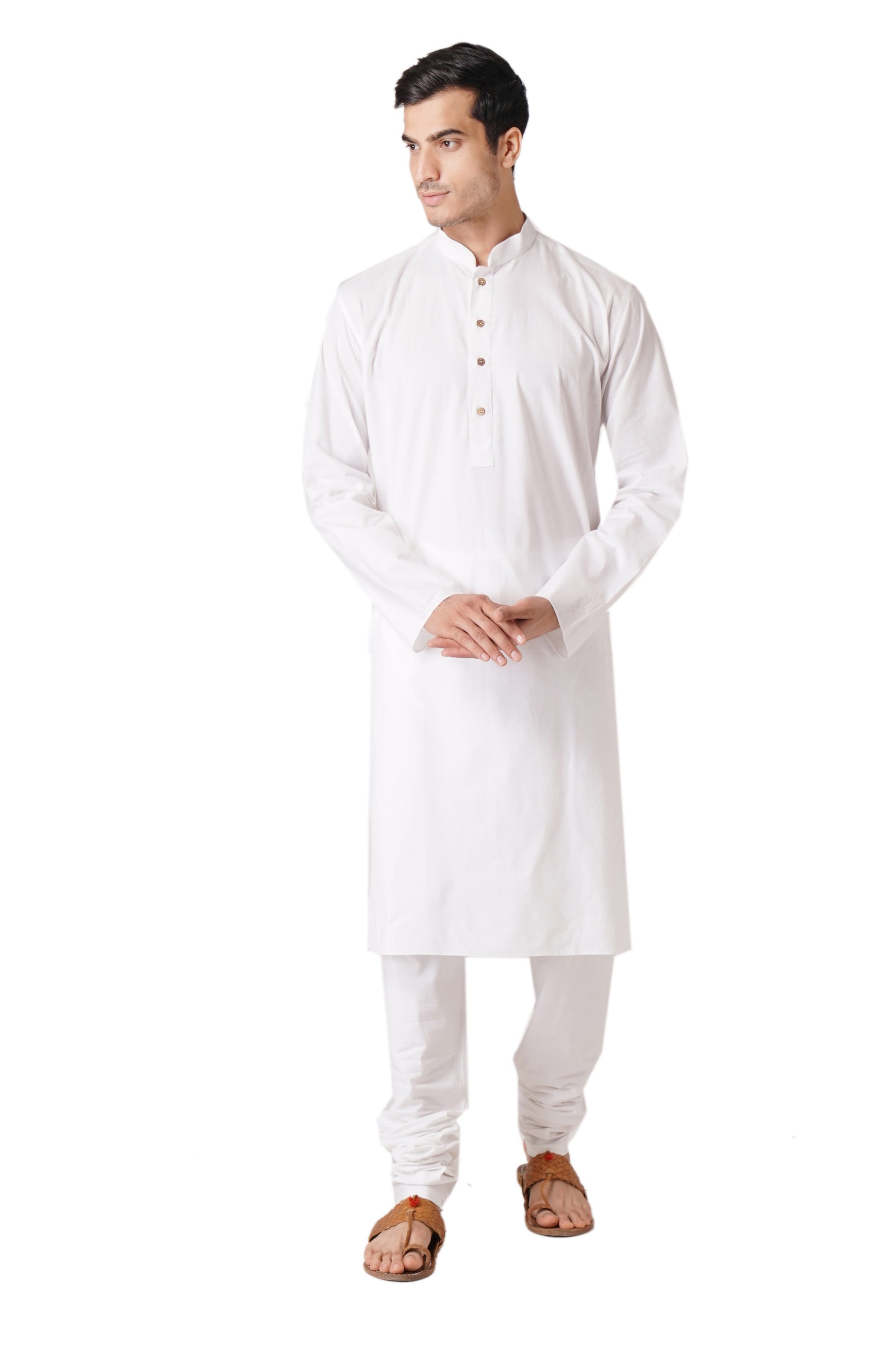 Full Sleeve Solid Kurta and Churidar Set in White Pure Cotton