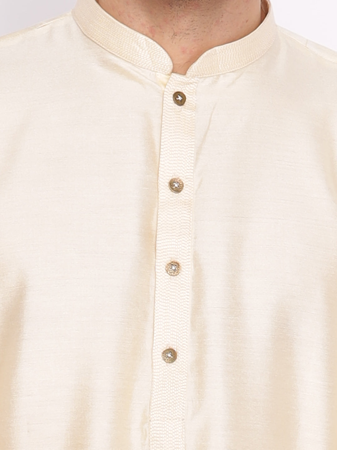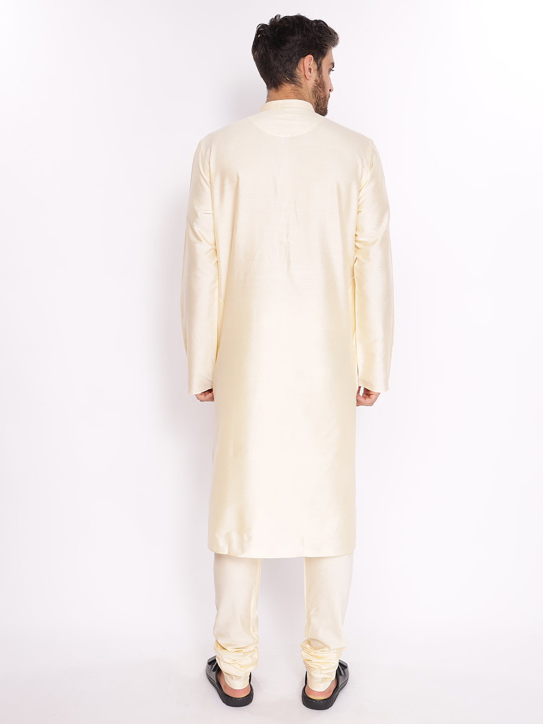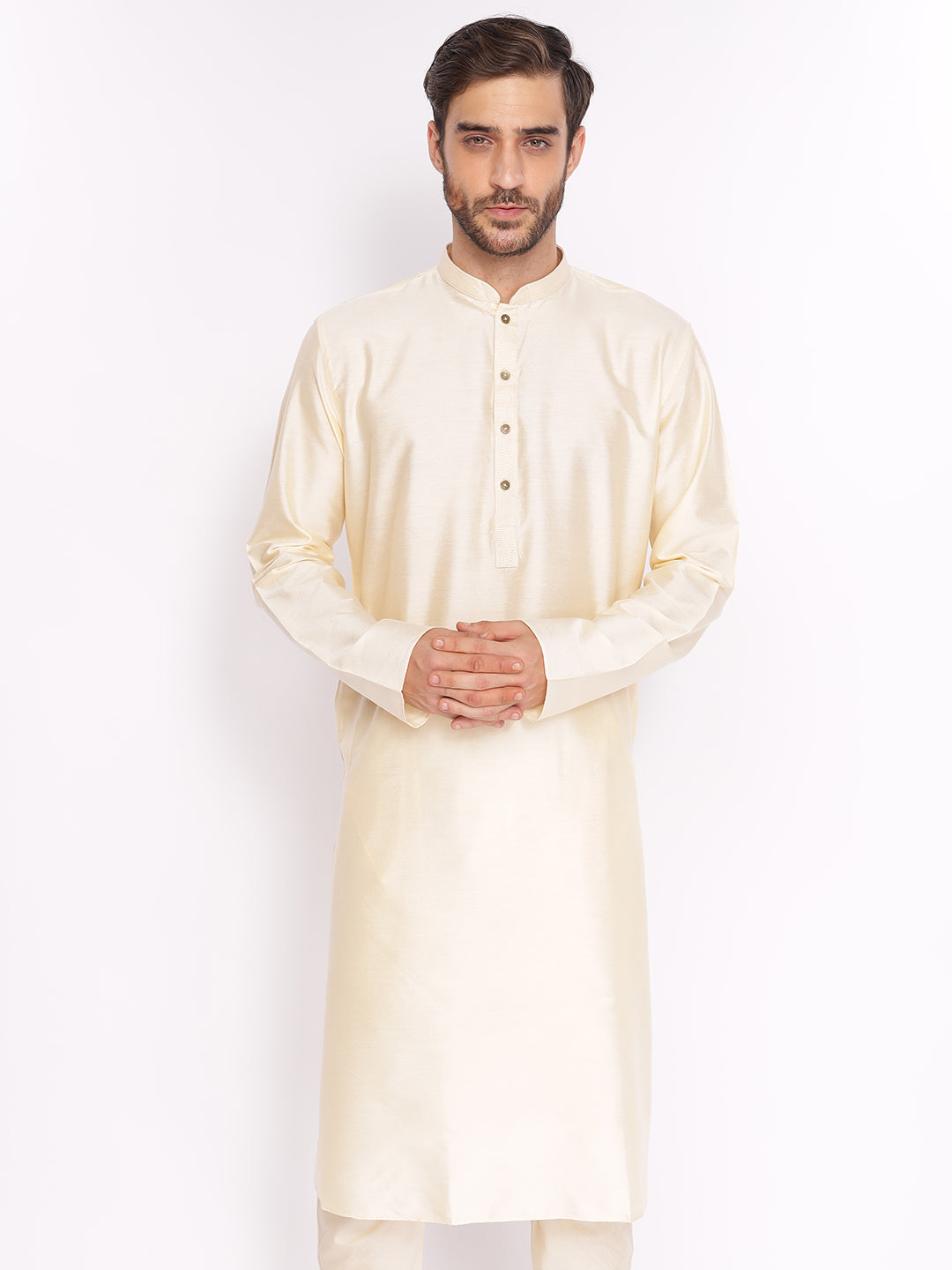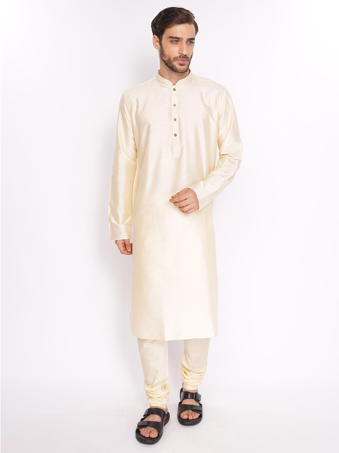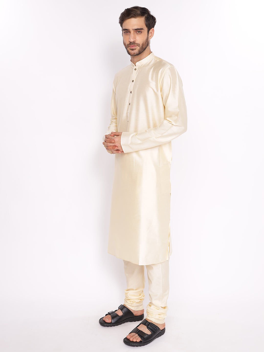 Full Sleeve Solid Kurta and Pyjama Set in Gold Cotton Blend