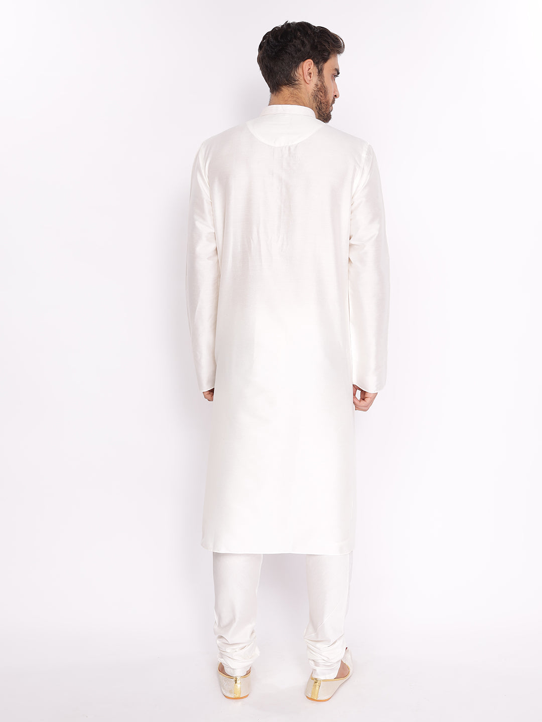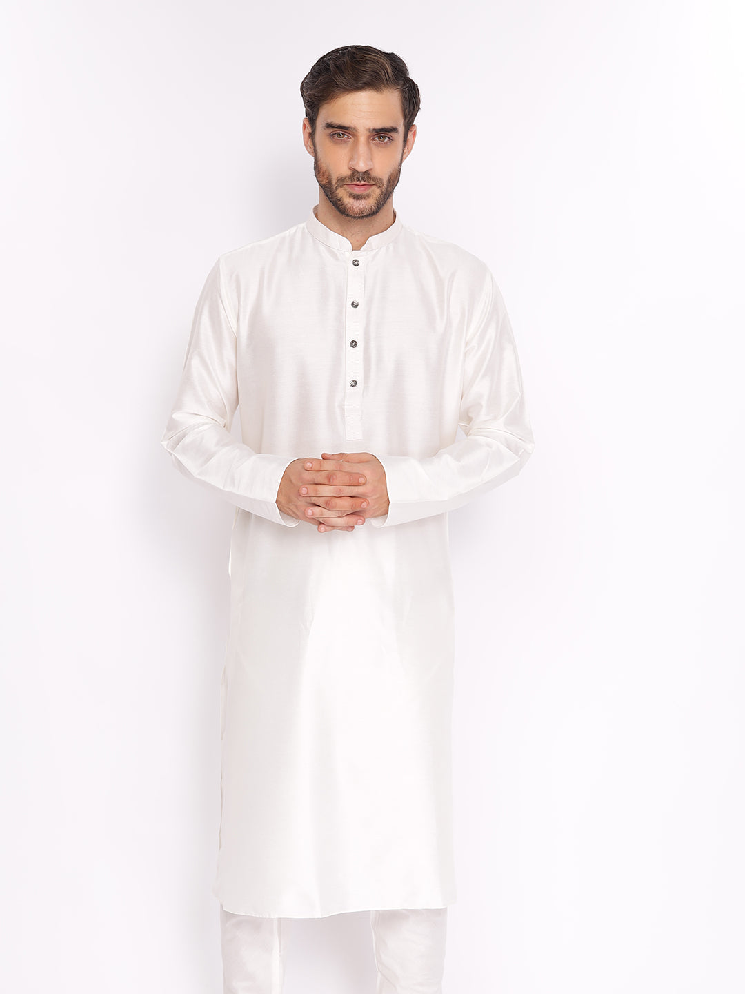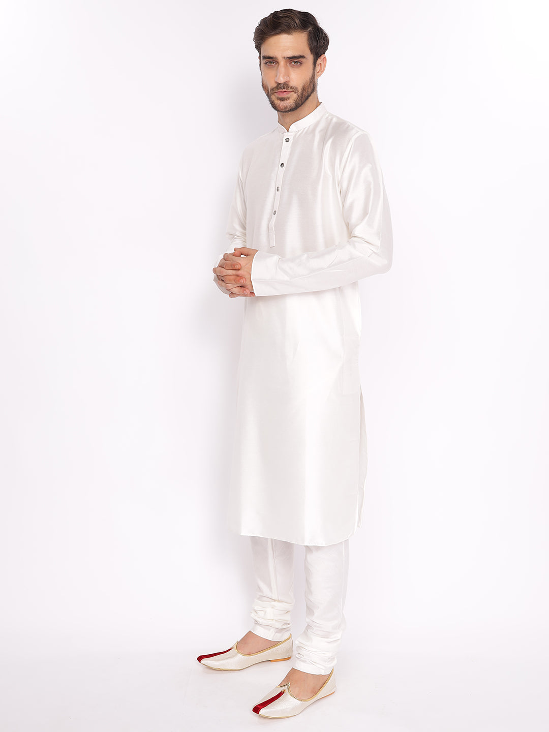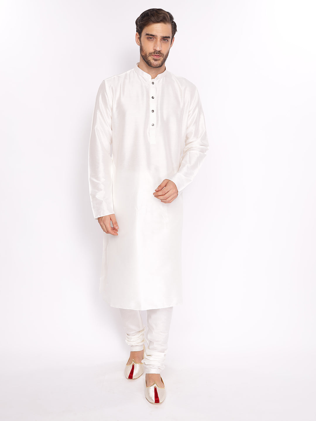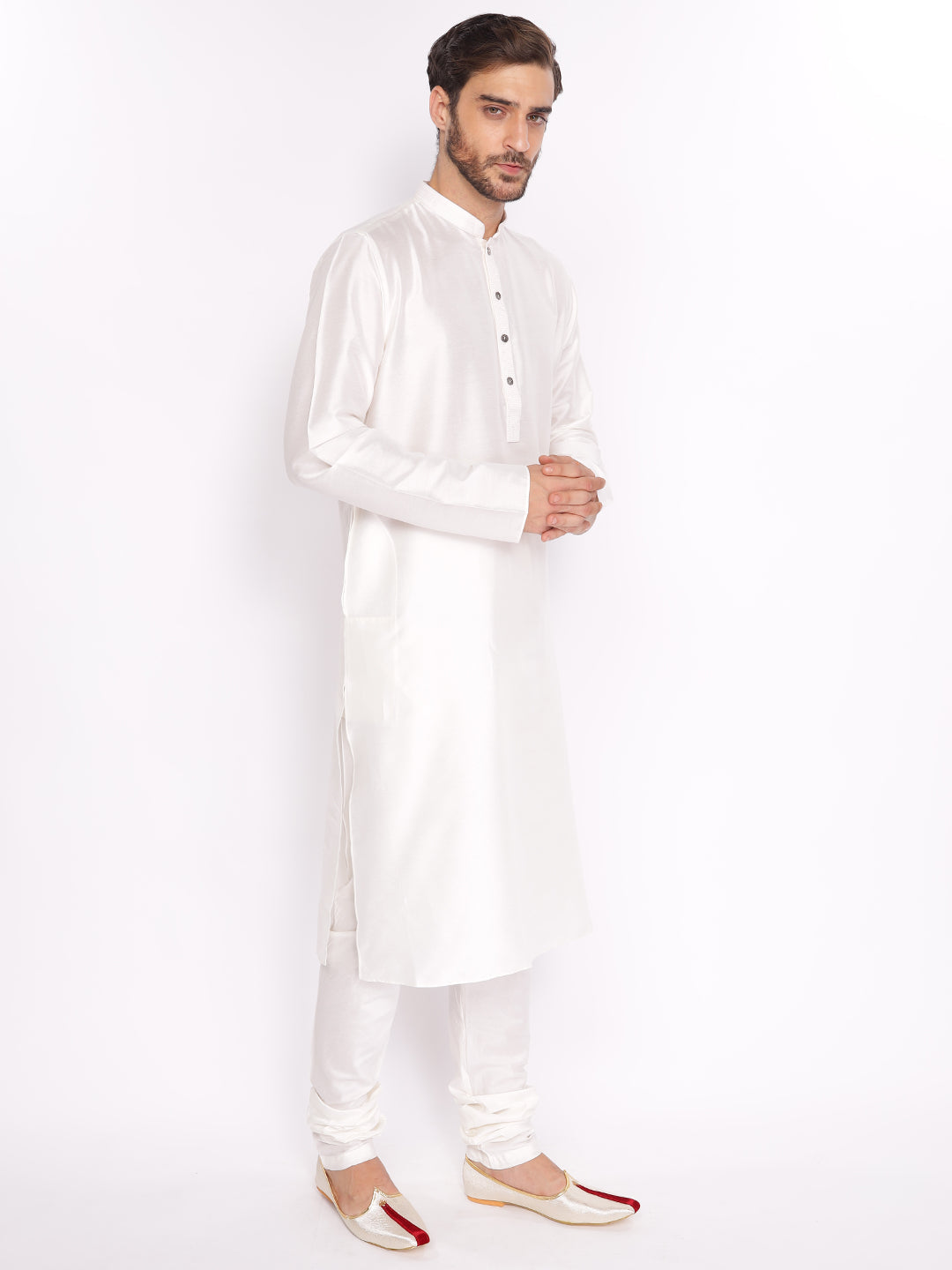 Full Sleeve Solid Kurta and Pyjama Set in White Cotton Blend