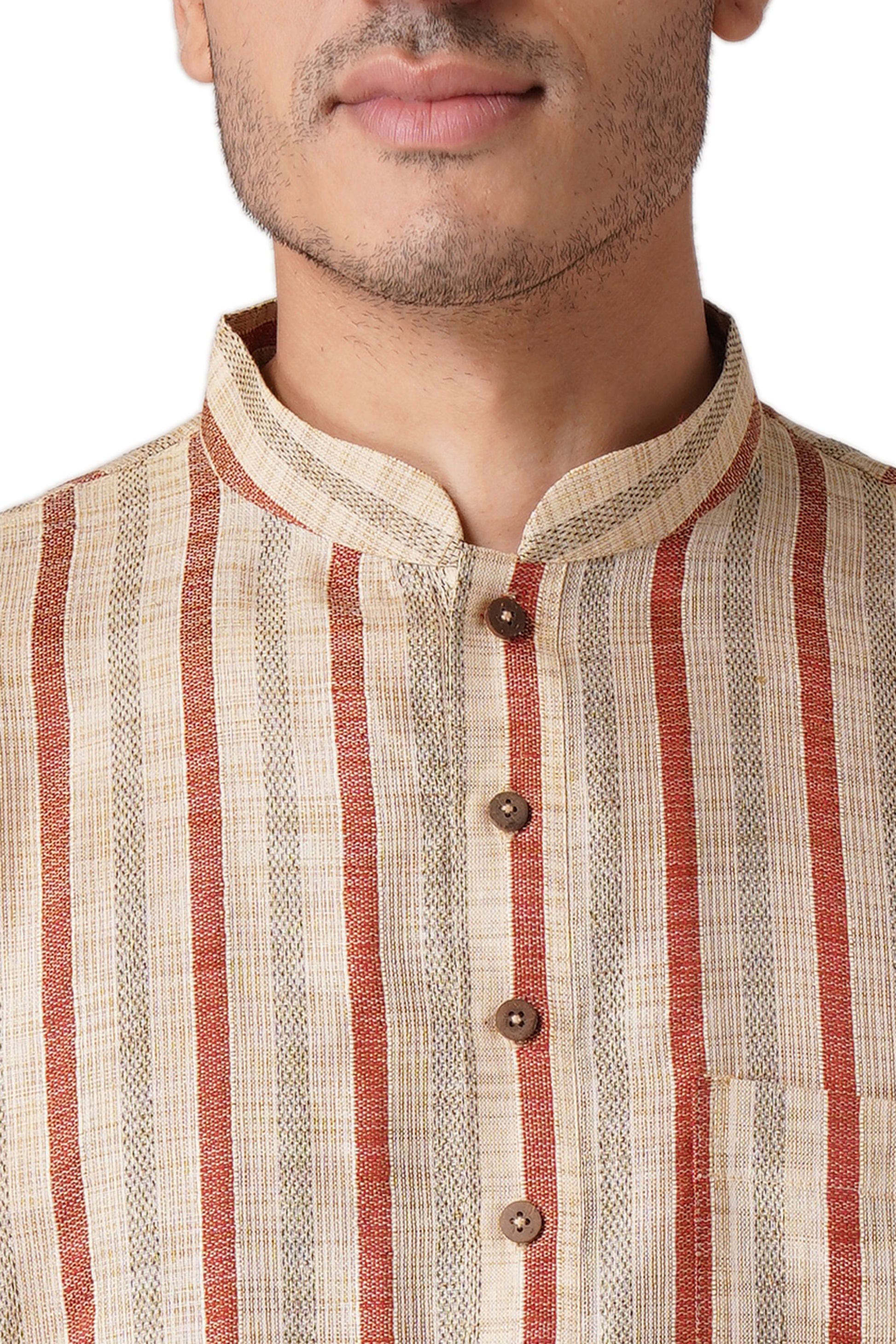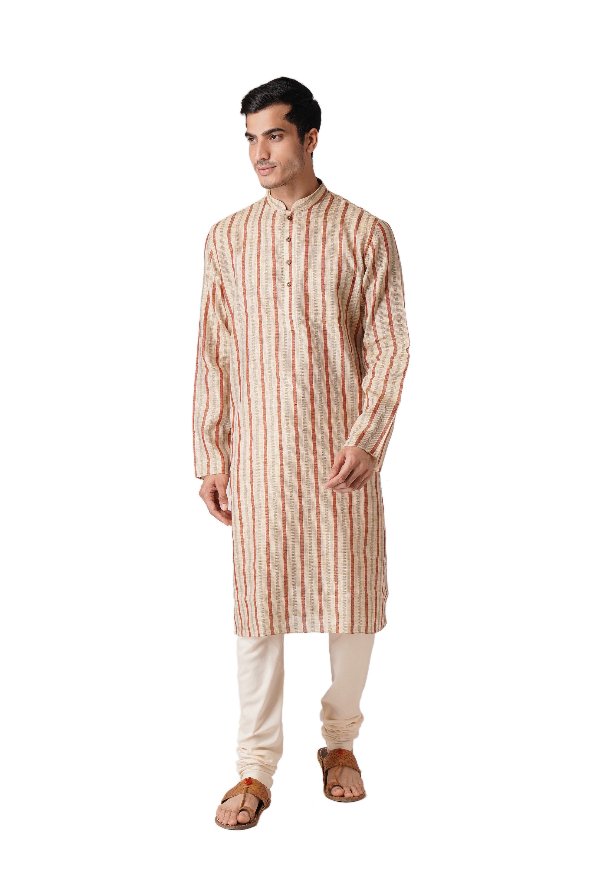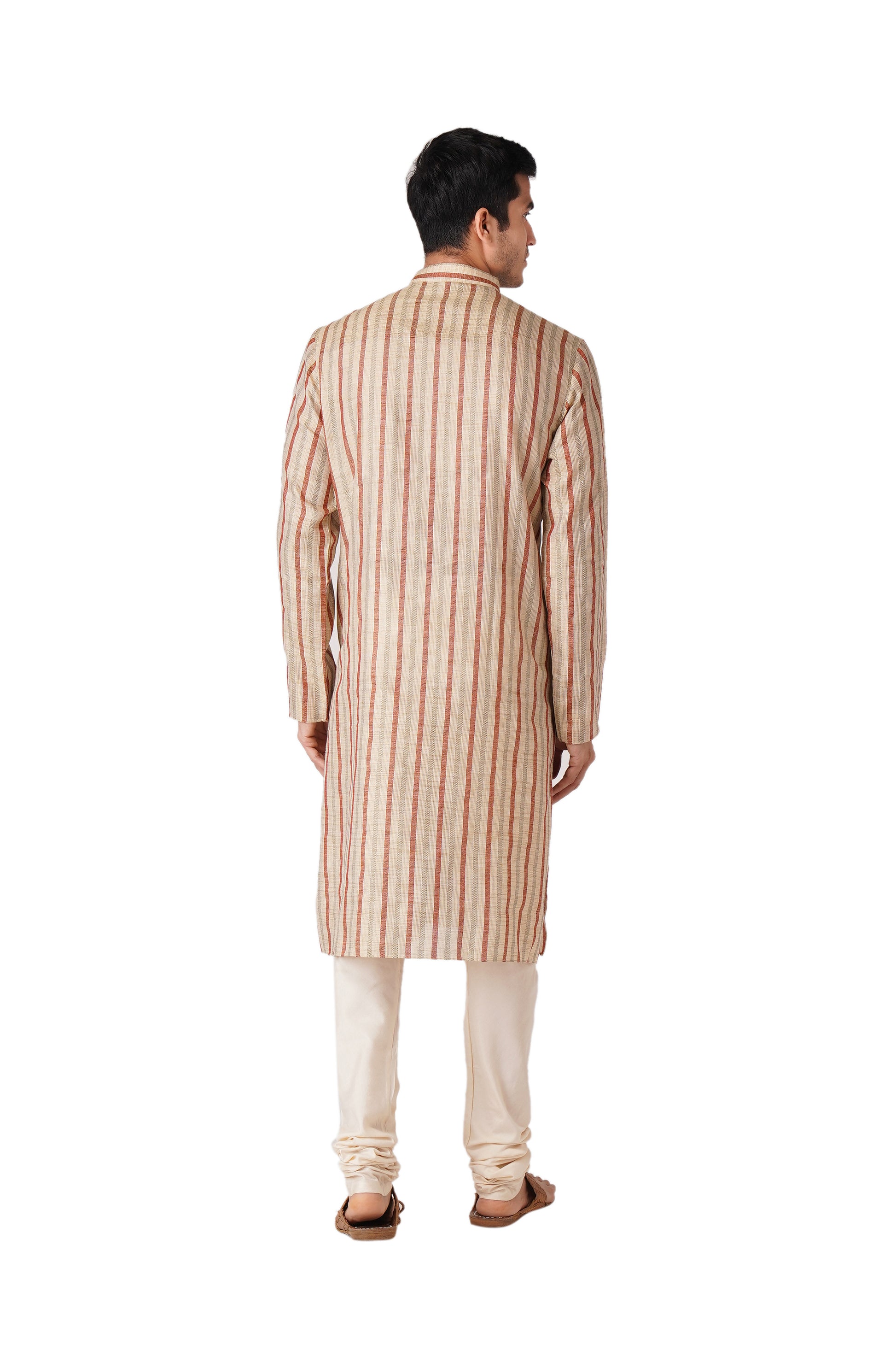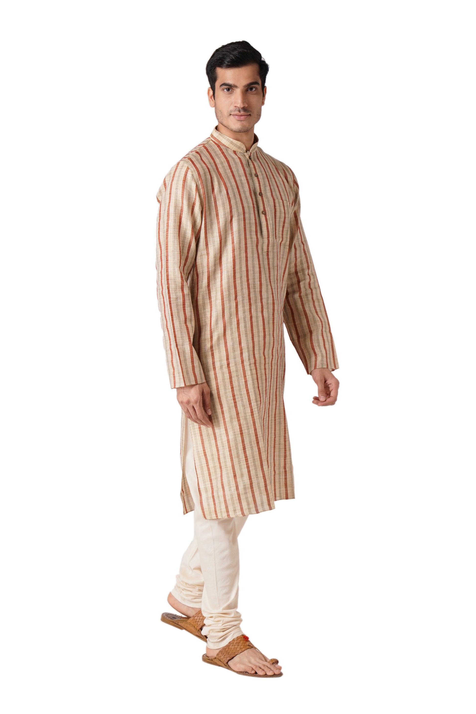 Full Sleeve Striped Kurta and Churidar Set in Multicolor Pure Cotton