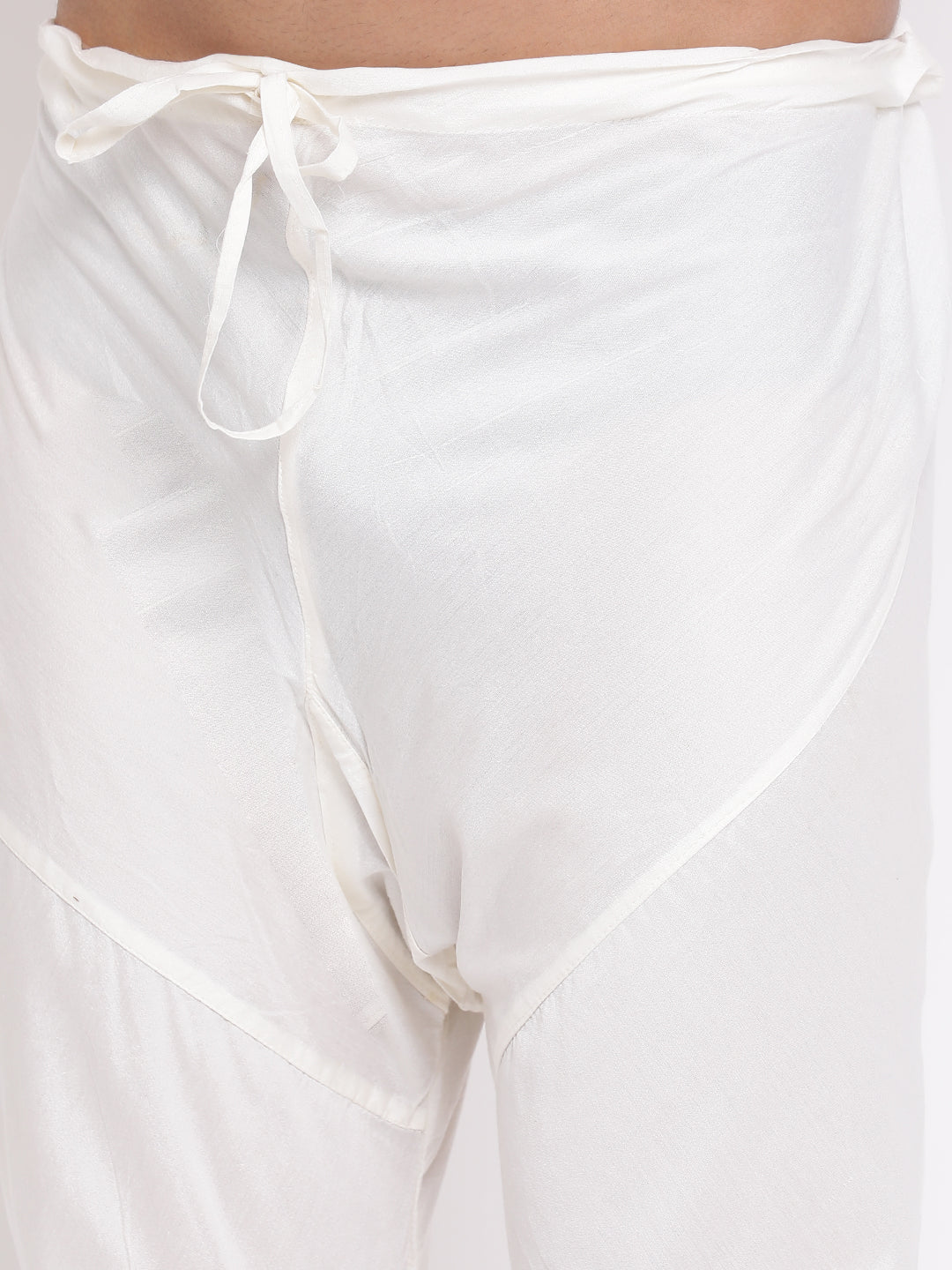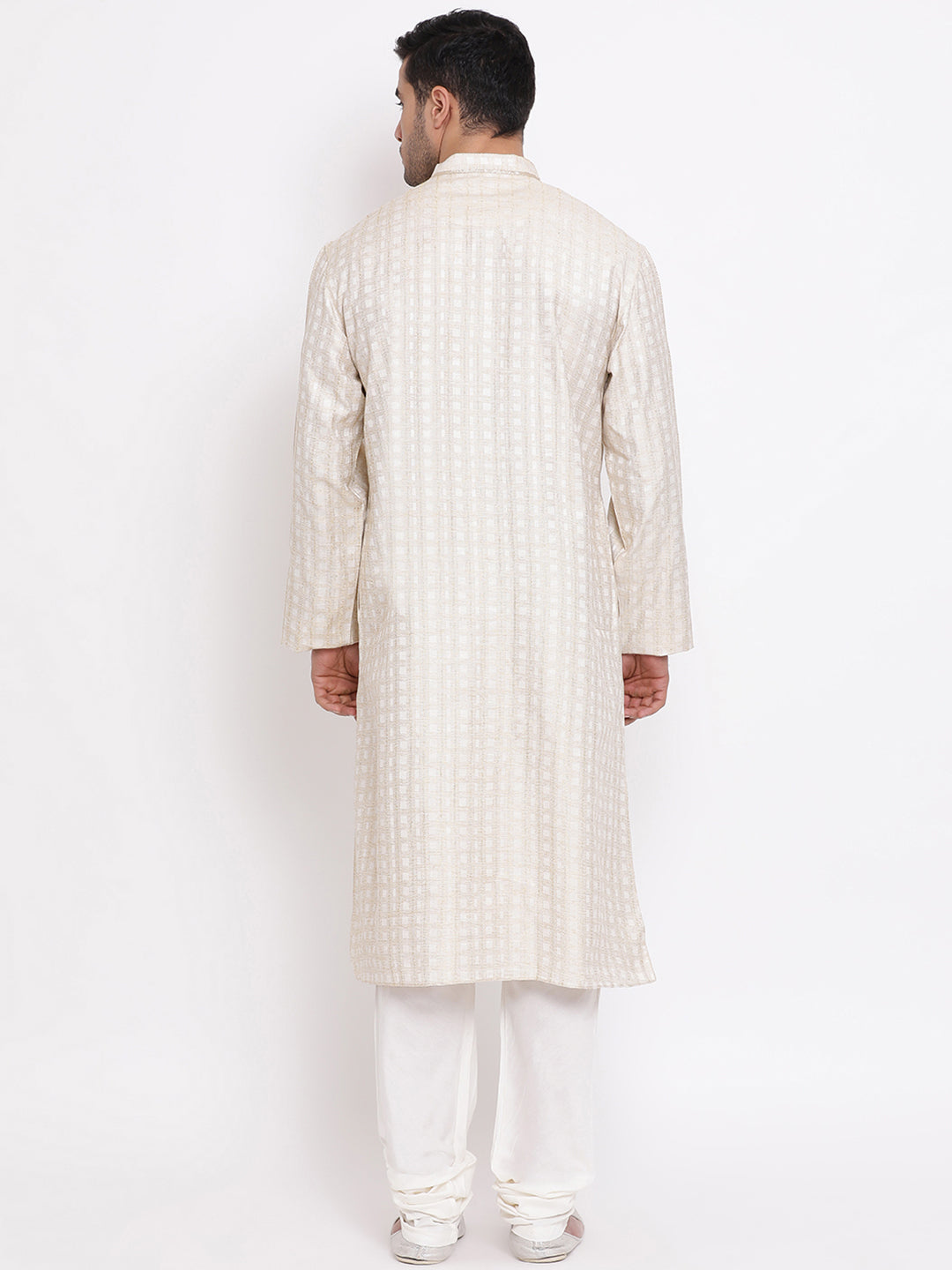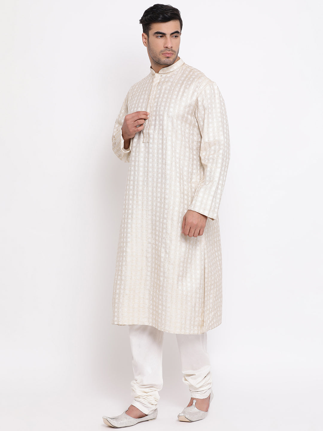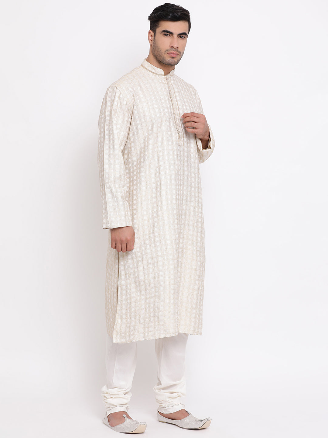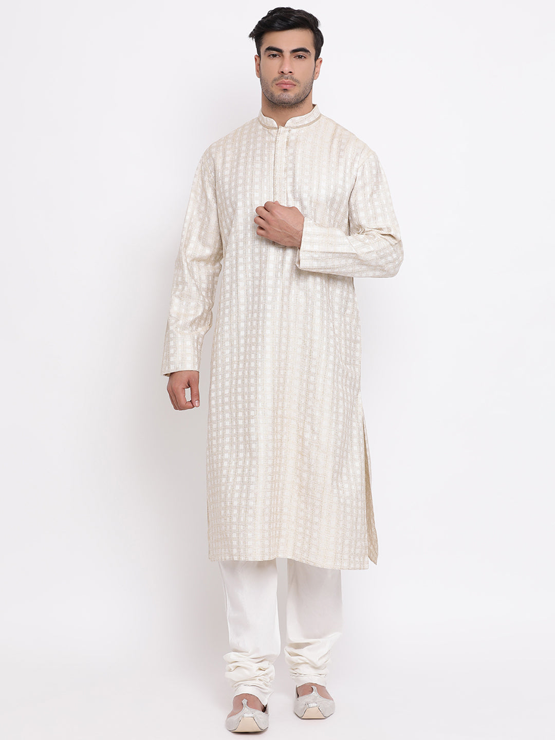 Full Sleeve Woven Kurta and Churidar Set in Beige Khadi Cotton