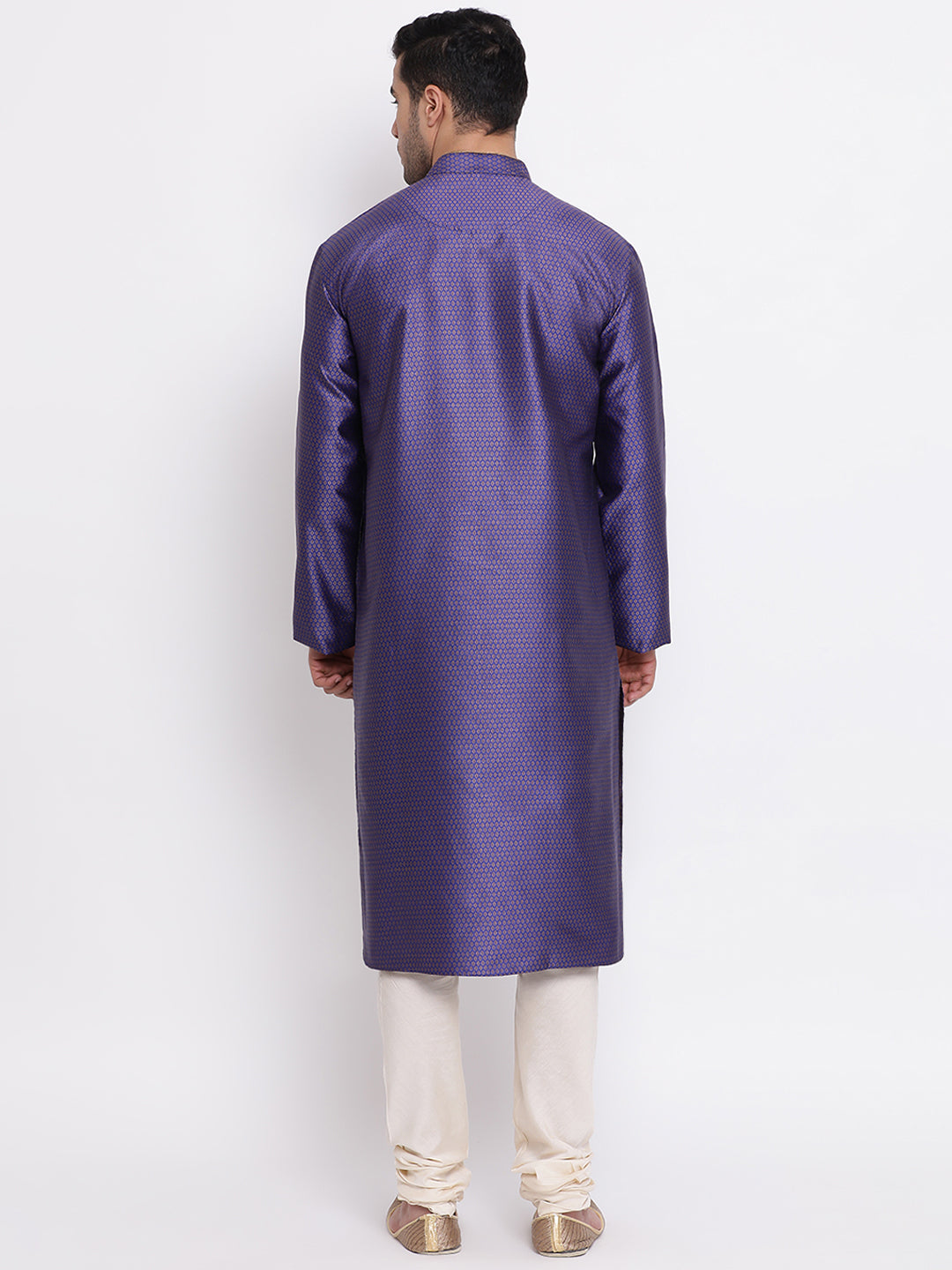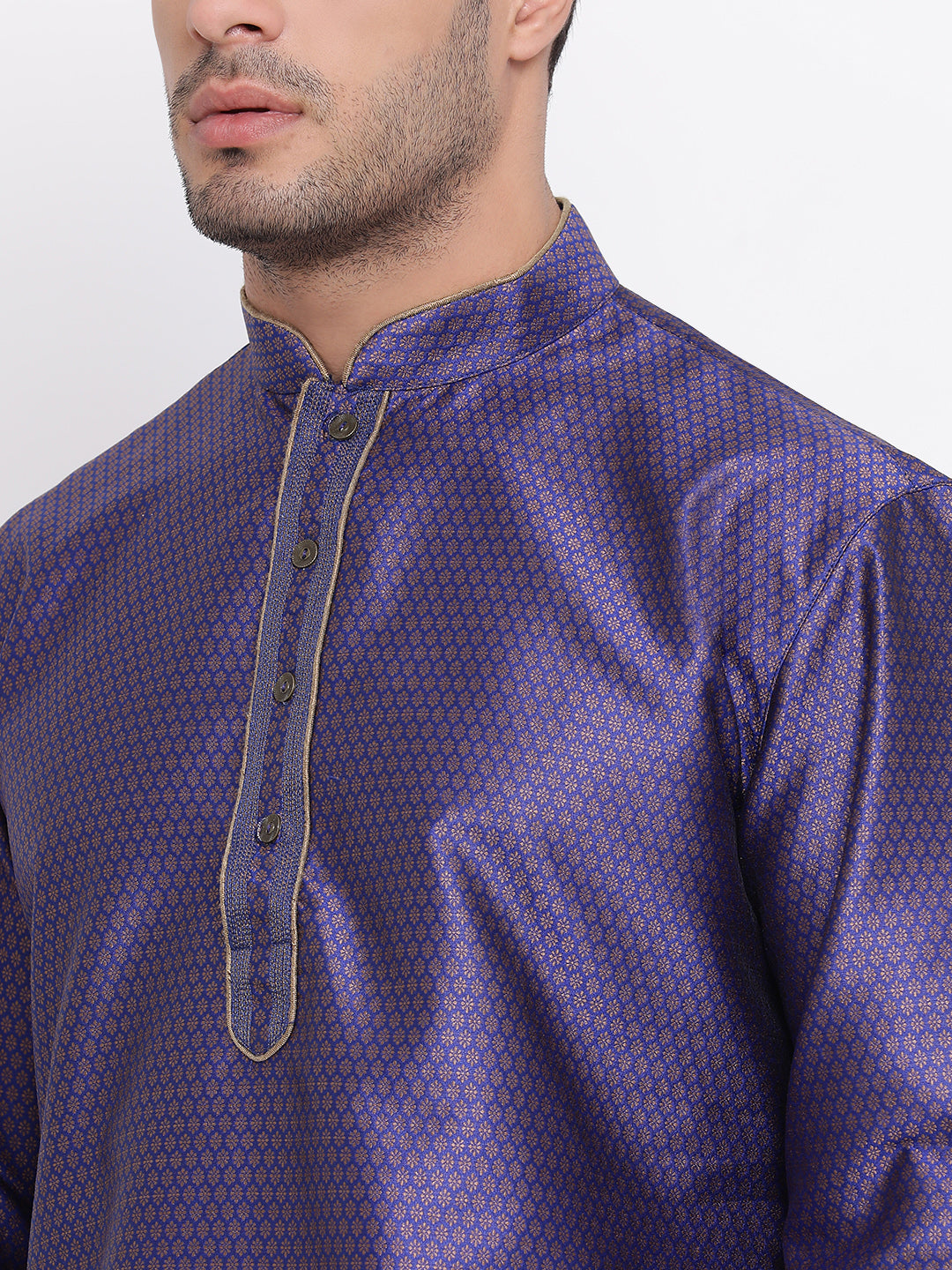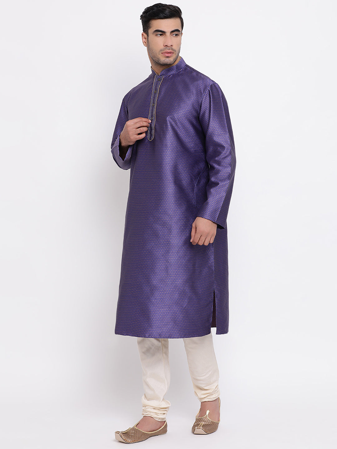 Full Sleeve Woven Kurta and Churidar Set in Blue Jacquard