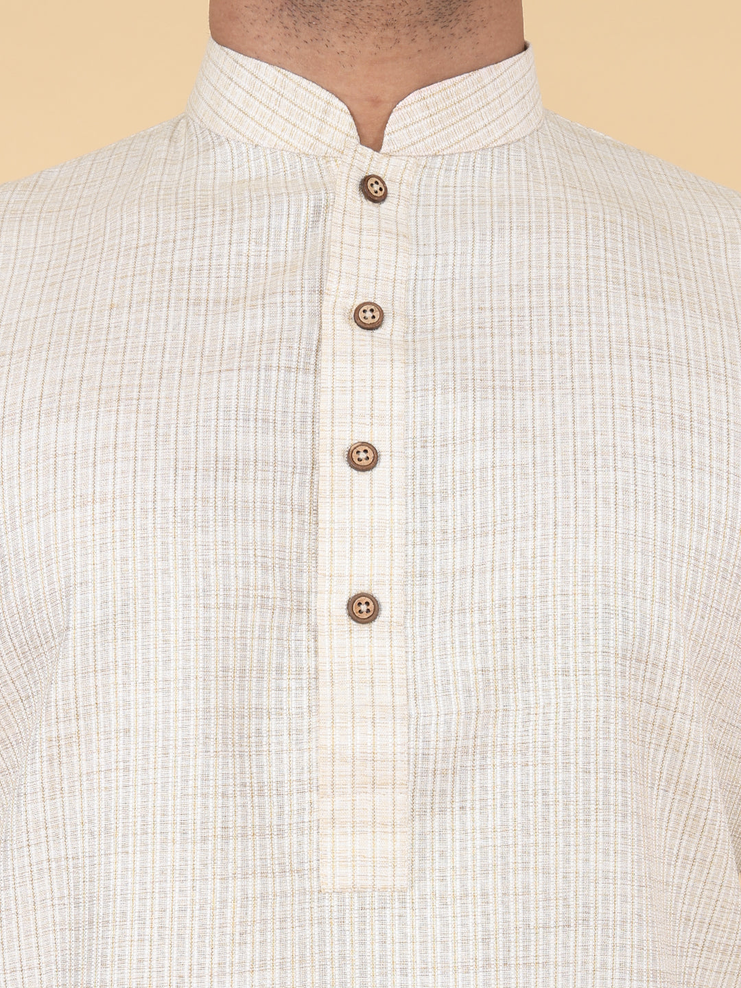 Presenting our meticulously crafted Men's Kurta, reflecting ZOIS's commitment to high-quality fashion. Featuring intricate hand embroidery and a touch of simplicity, this Cream Kurta in Khadi Cotton fabric exudes elegance. The Mandarin collar adds sophistication, perfectly embodying the simplicity at the heart of our design philosophy. With ZOIS, embrace the fusion of tradition and contemporary style in this versatile ethnic wear.
