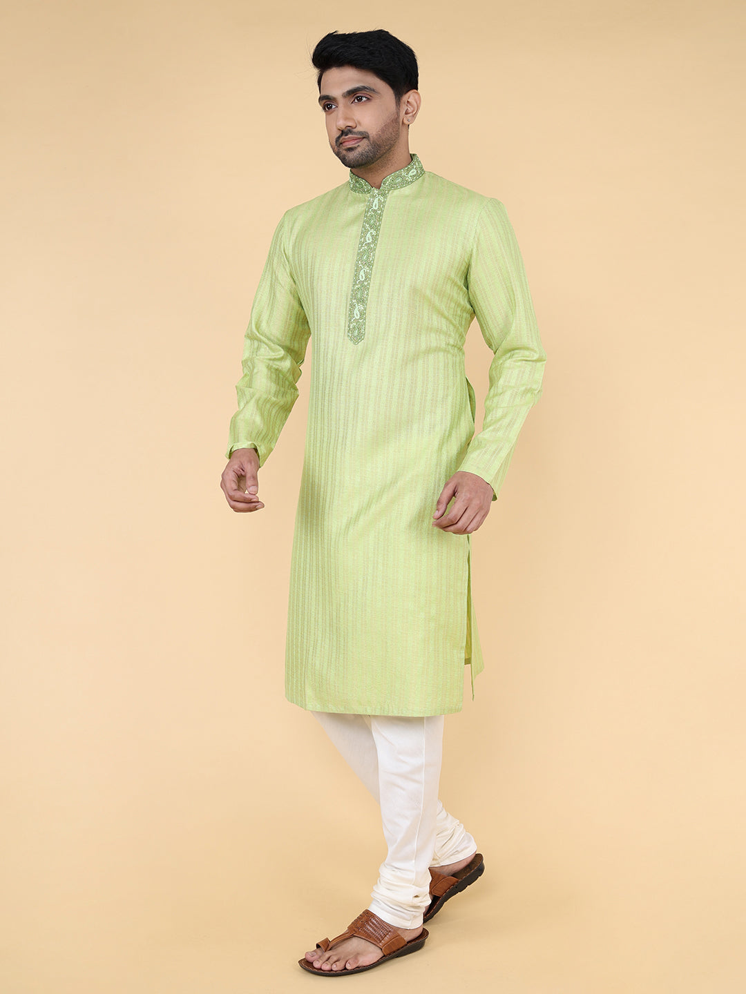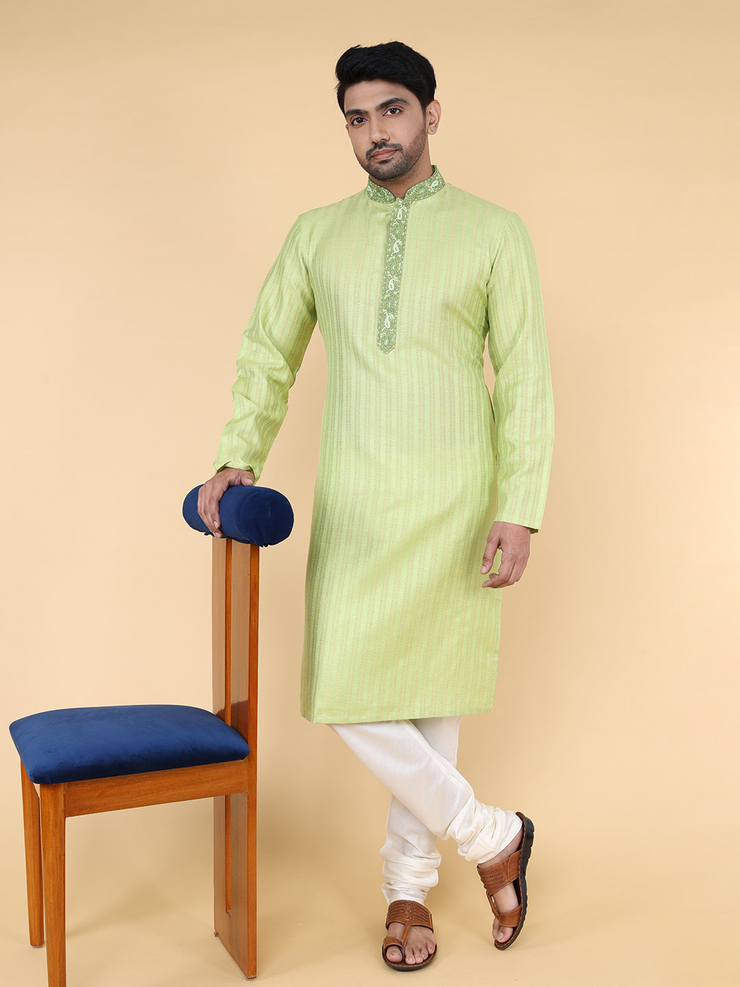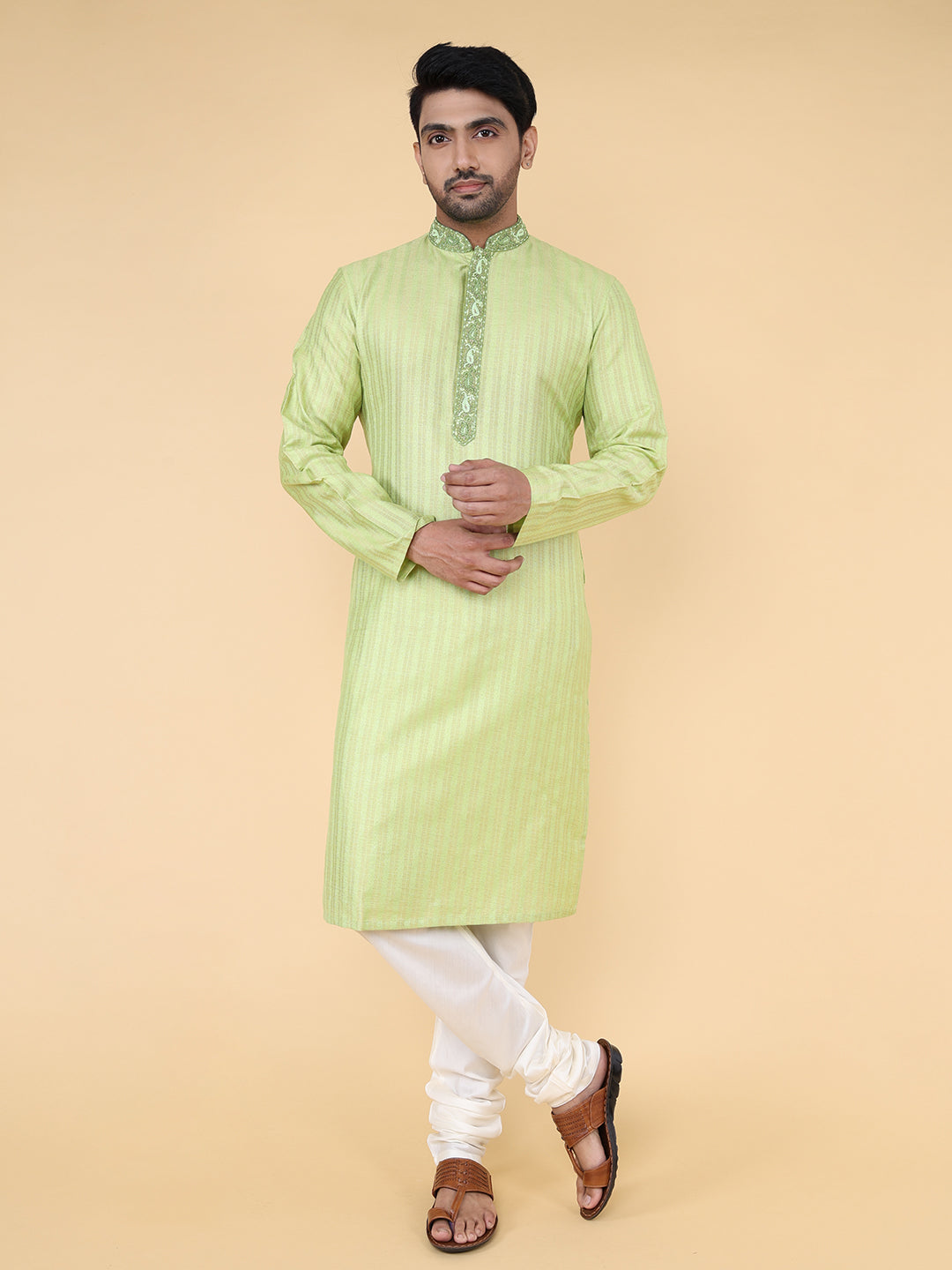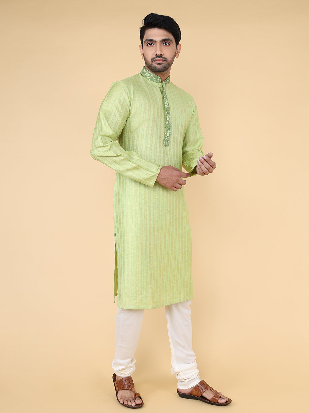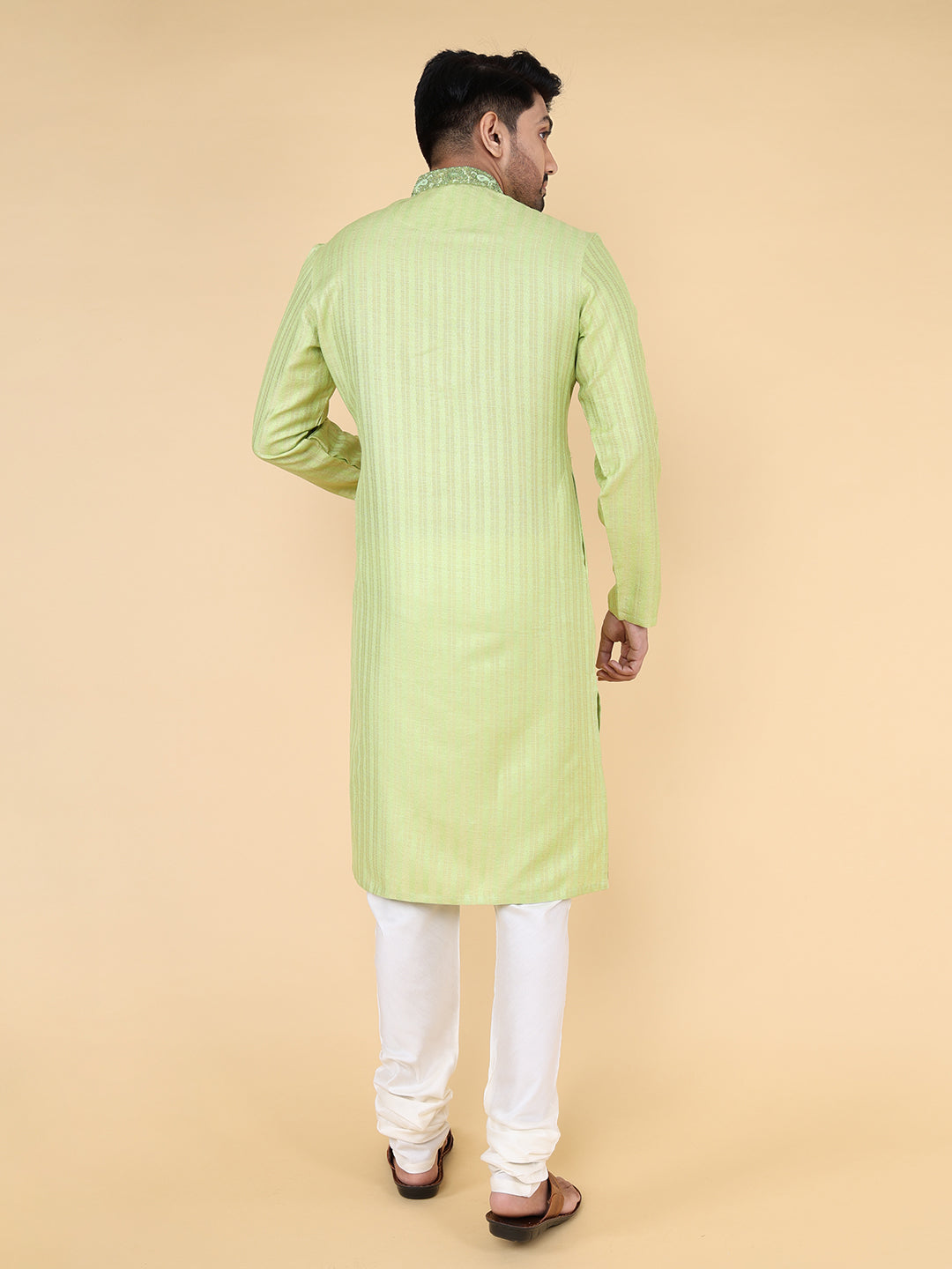 Presenting our meticulously crafted Men's Kurta, reflecting ZOIS's commitment to high-quality fashion. Featuring intricate hand embroidery and a touch of simplicity, this mint green Kurta in Khadi Cotton fabric exudes elegance. The Mandarin collar adds sophistication, perfectly embodying the simplicity at the heart of our design philosophy. With ZOIS, embrace the fusion of tradition and contemporary style in this versatile ethnic wear.