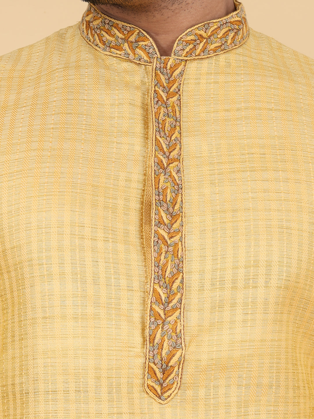 Presenting our meticulously crafted Men's Kurta, reflecting ZOIS's commitment to high-quality fashion. Featuring intricate hand embroidery and a touch of simplicity, this mustard Kurta in Khadi Cotton fabric exudes elegance. The Mandarin collar adds sophistication, perfectly embodying the simplicity at the heart of our design philosophy. With ZOIS, embrace the fusion of tradition and contemporary style in this versatile ethnic wear.