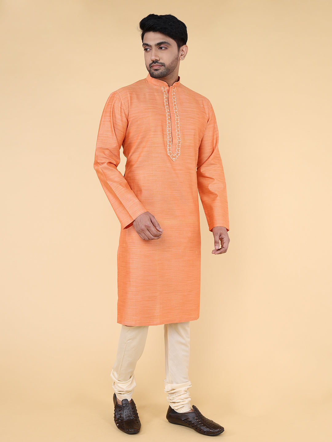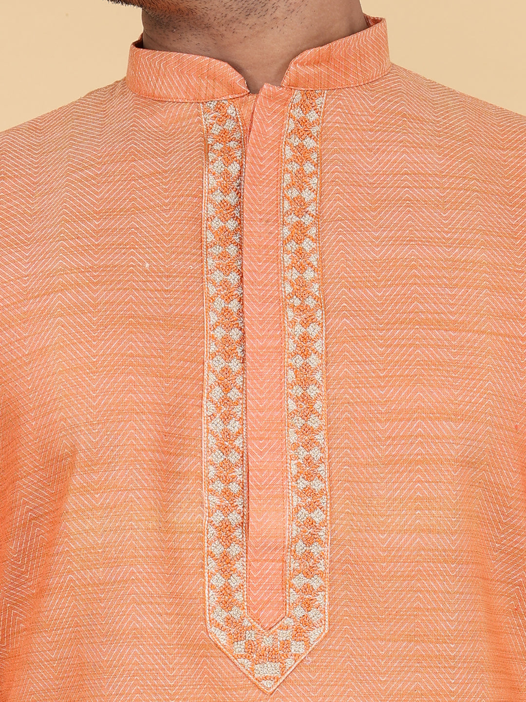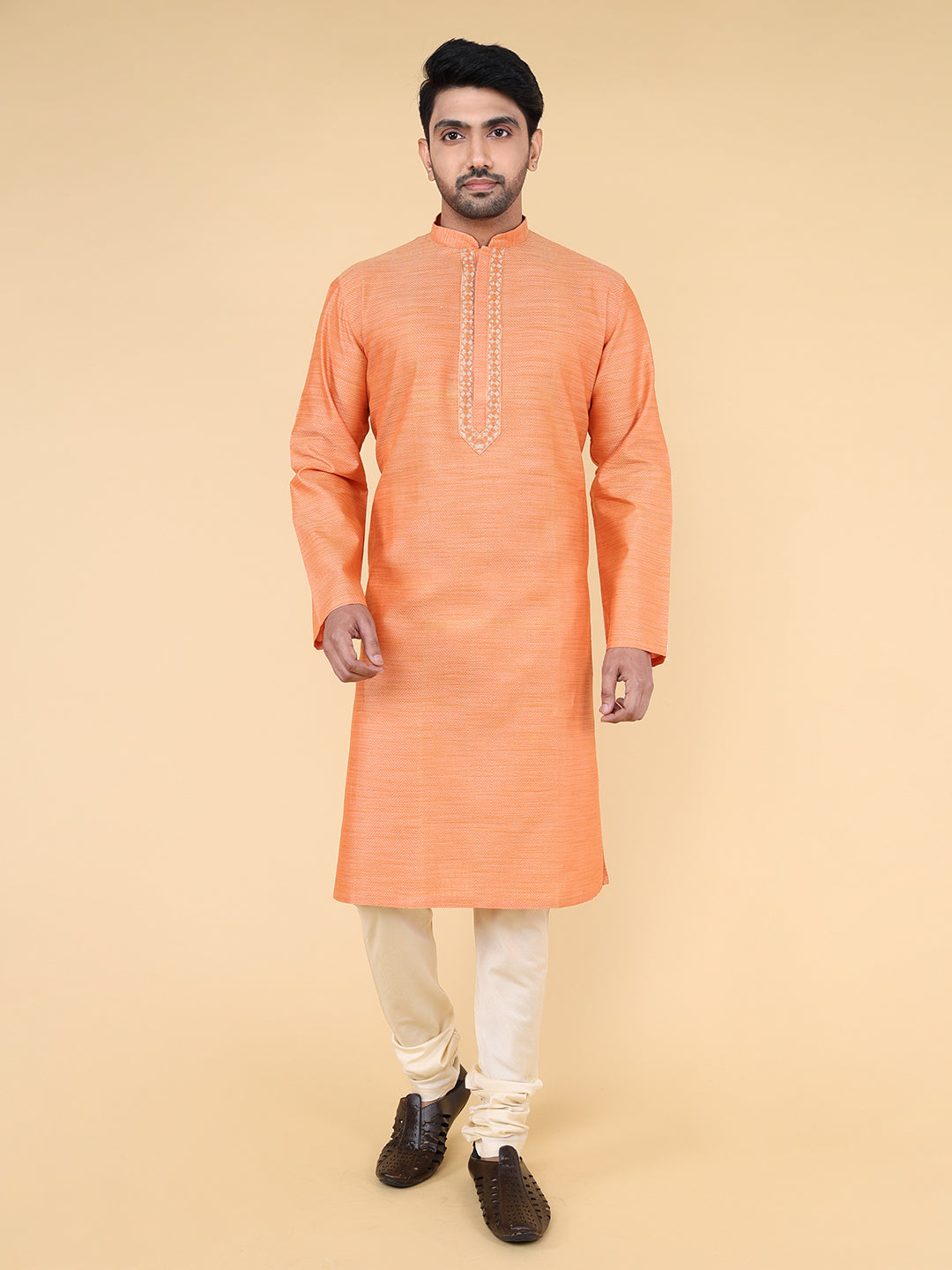 Presenting our meticulously crafted Men's Kurta, reflecting ZOIS's commitment to high-quality fashion. Featuring intricate hand embroidery and a touch of simplicity, this orange Kurta in Khadi Cotton fabric exudes elegance. The Mandarin collar adds sophistication, perfectly embodying the simplicity at the heart of our design philosophy. With ZOIS, embrace the fusion of tradition and contemporary style in this versatile ethnic wear.