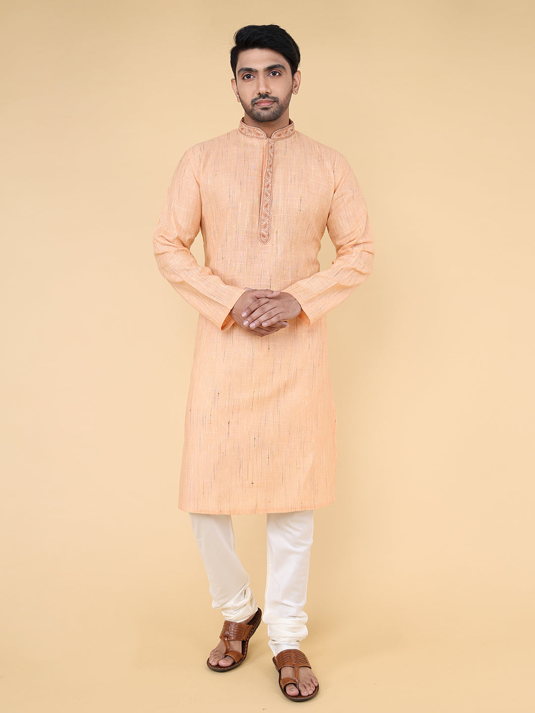 Men Kurta Pyjama Set (Light Orange)