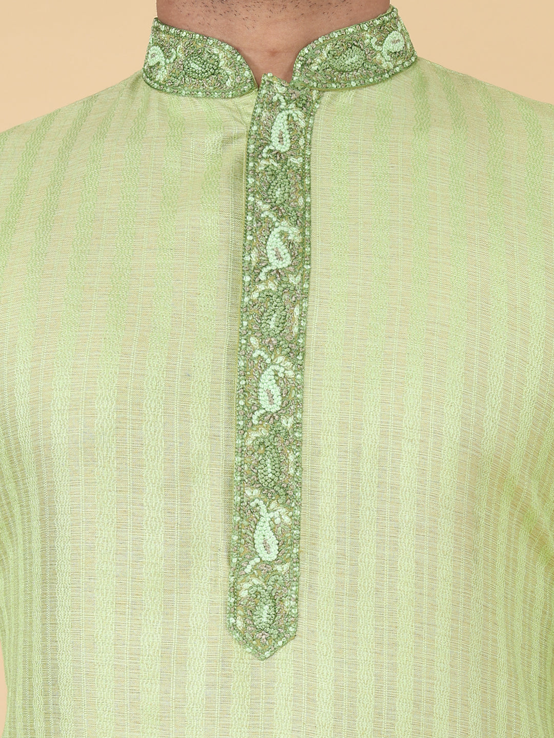 Presenting our meticulously crafted Men's Kurta, reflecting ZOIS's commitment to high-quality fashion. Featuring intricate hand embroidery and a touch of simplicity, this Mint Green Kurta in Khadi Cotton fabric exudes elegance. The Mandarin collar adds sophistication, perfectly embodying the simplicity at the heart of our design philosophy. With ZOIS, embrace the fusion of tradition and contemporary style in this versatile ethnic wear.