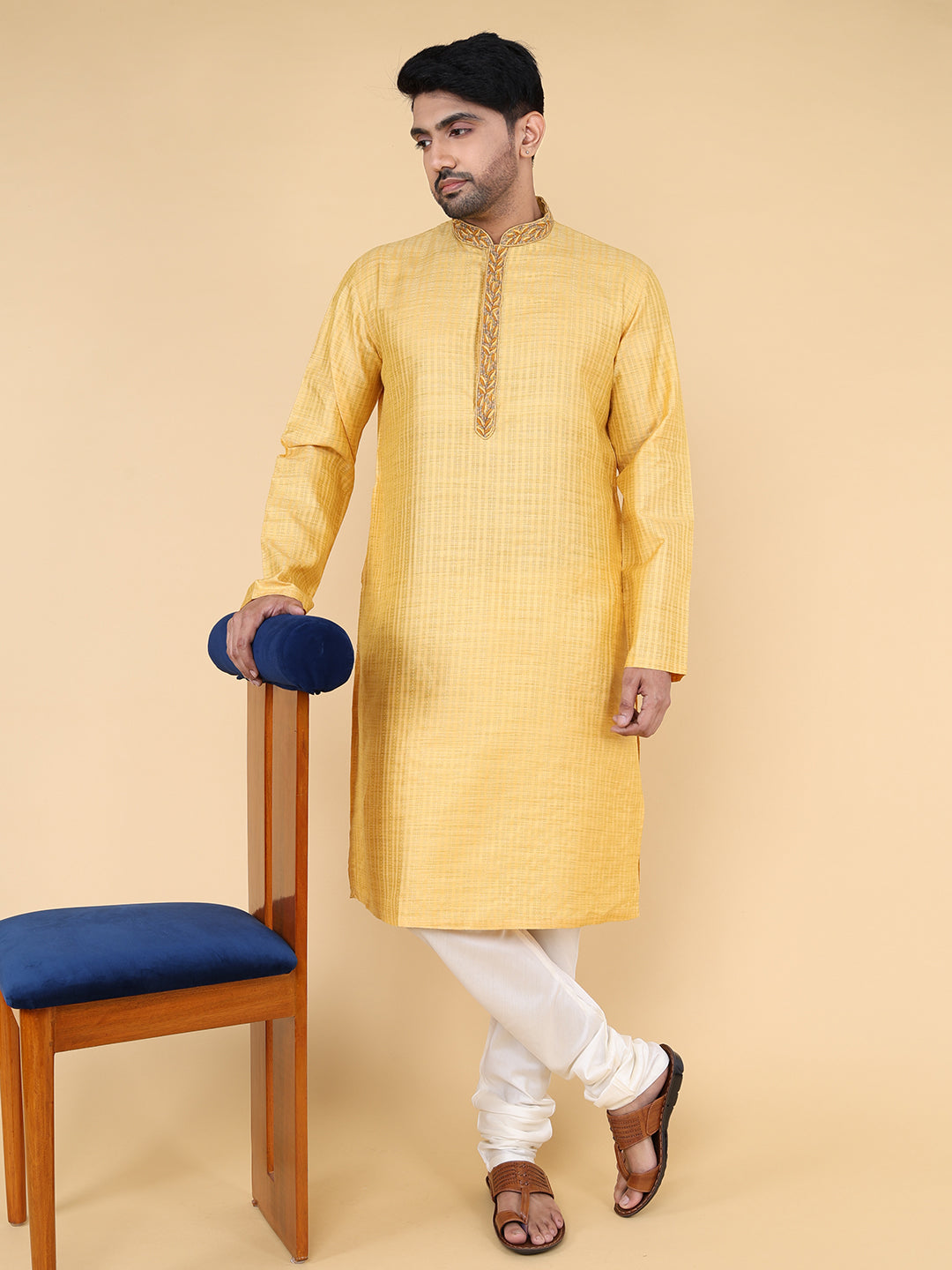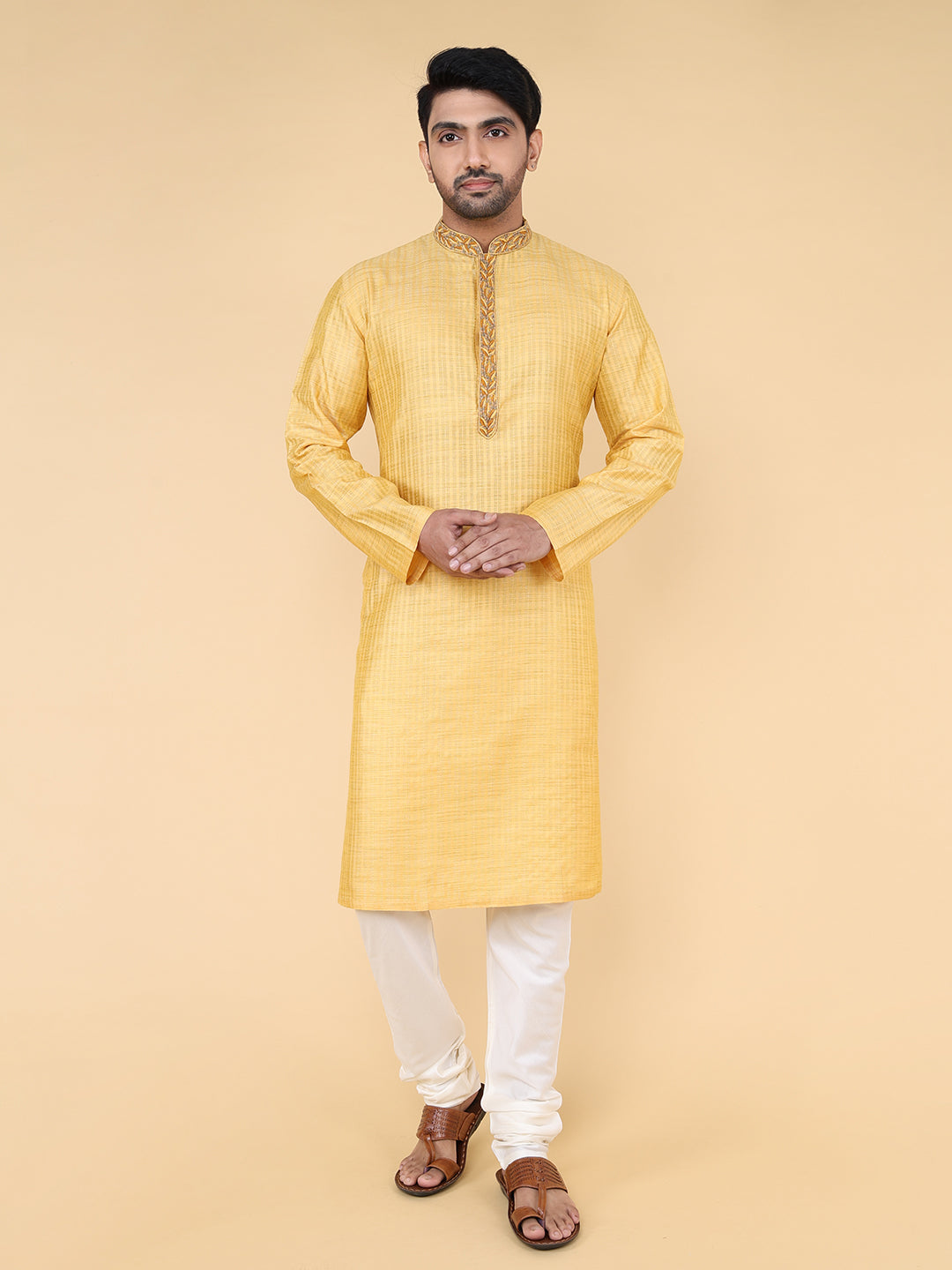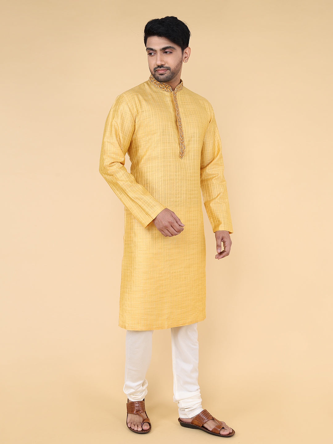 Men Kurta Pyjama Set (Mustard)