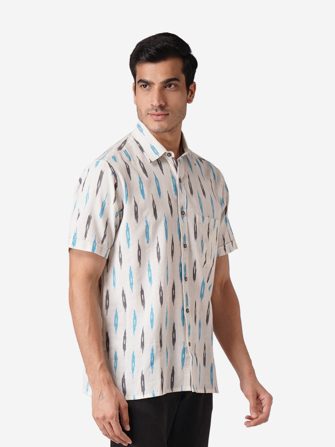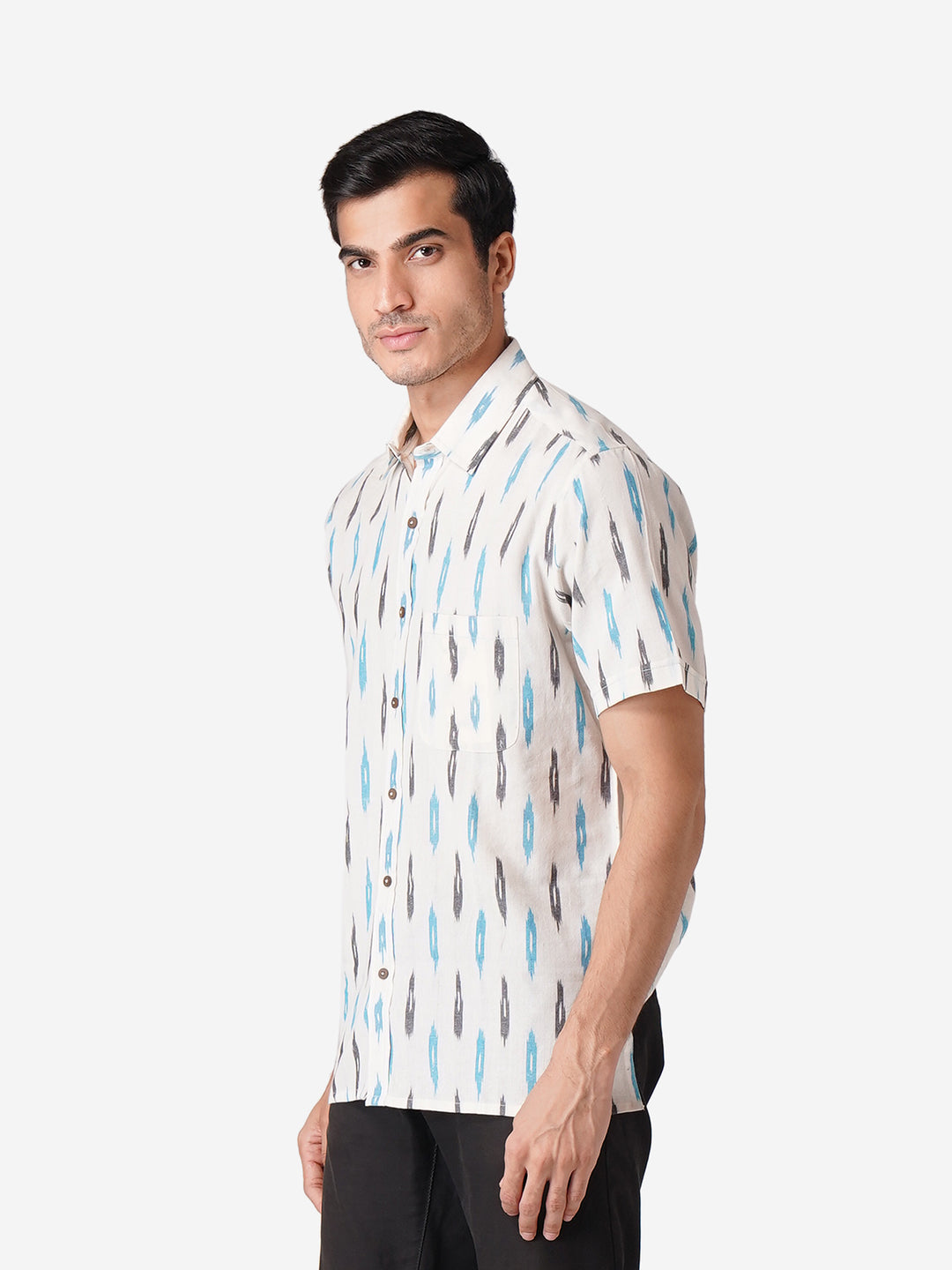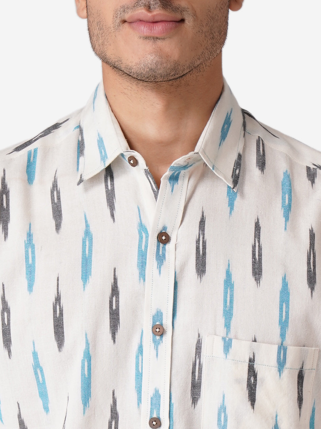 Introducing our meticulously crafted men's shirt, designed with an unwavering commitment to high-quality fashion. Embrace elegance through the simplicity of this Self Designed White shirt, perfect for casual occasions. Rooted in cultural authenticity, our contemporary design creates a unique fusion. Made from pure cotton, this half-sleeve shirt with a classic collar mirrors our dedication to men's ethnic wear elegance