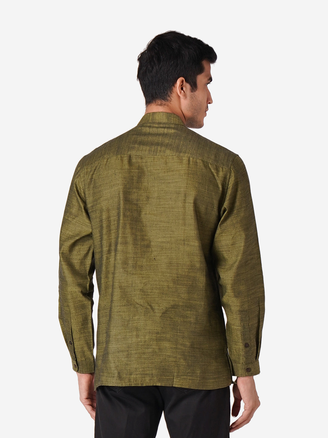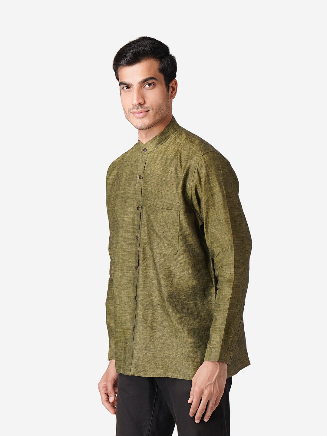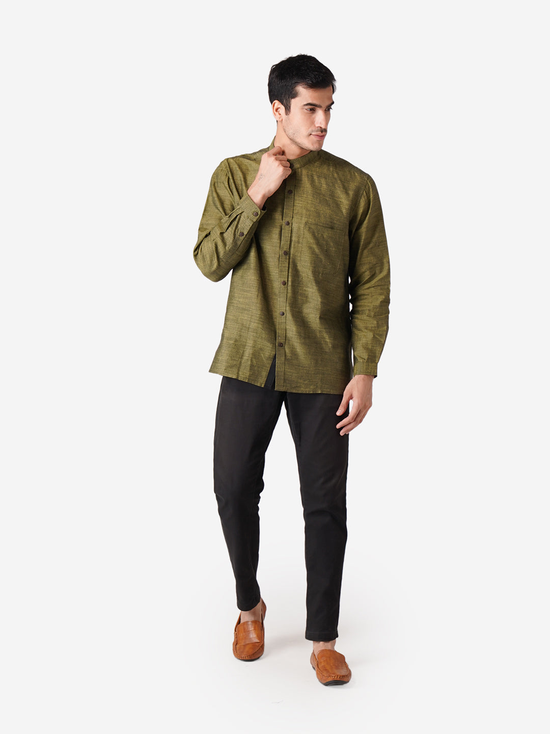 Introducing our meticulously crafted men's shirt, designed with an unwavering commitment to high-quality fashion. Embrace elegance through the simplicity of this Self Designed Green shirt, perfect for casual occasions. Rooted in cultural authenticity, our contemporary design creates a unique fusion. Made from pure cotton, this half-sleeve shirt with a classic collar mirrors our dedication to men's ethnic wear elegance