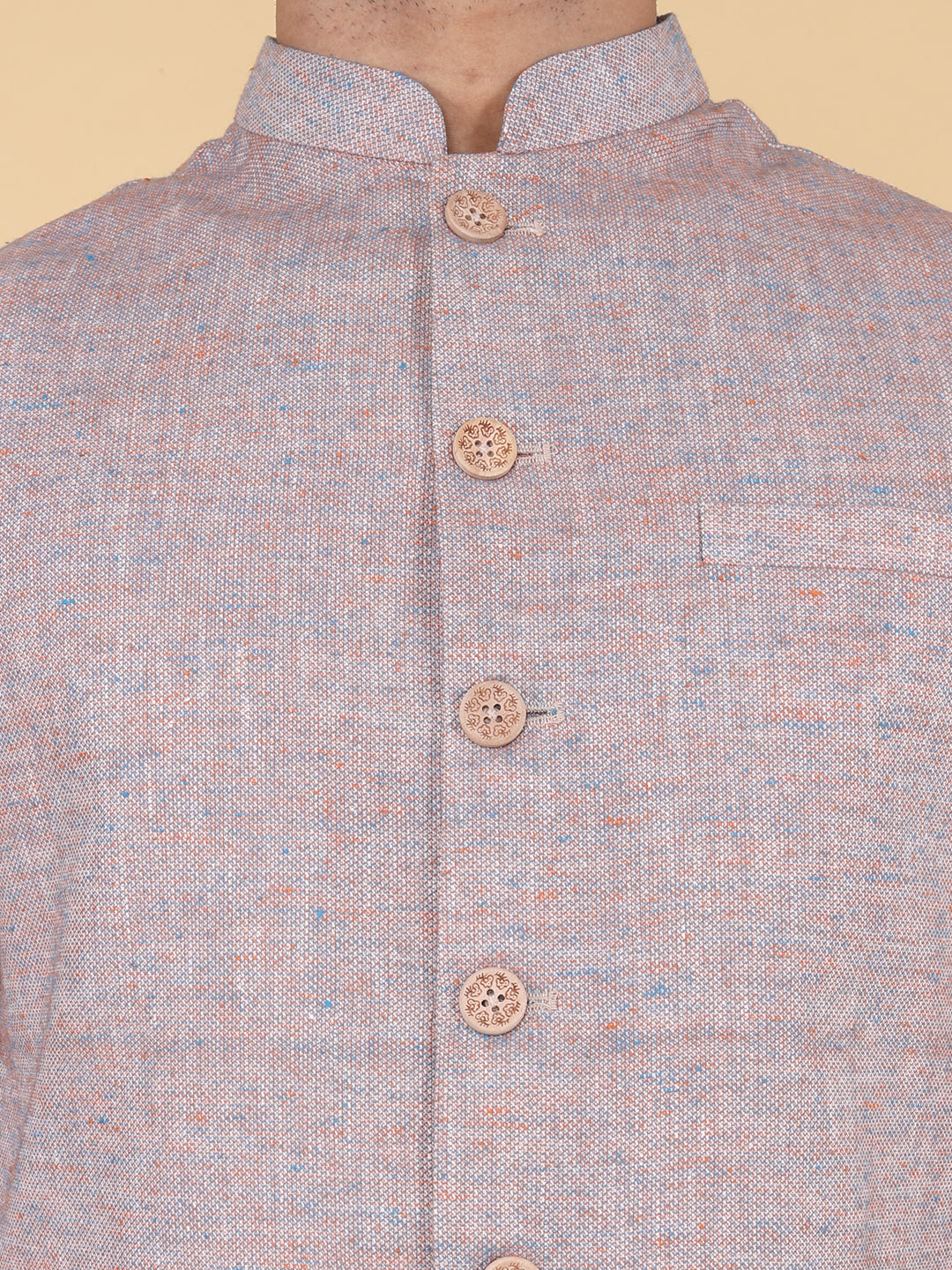 Introducing the ZOIS Jacket, adorned with intricate all-over geometric embroidery. This stylish Multi colour peach blends traditional craftsmanship with a modern touch, offering a perfect balance of elegance and contemporary flair. The delicate embroidery on the soft fabric adds a refined yet bold statement, making this jacket a versatile addition to your wardrobe. Elevate your fashion game with ZOIS's commitment to high-quality, standout designs.