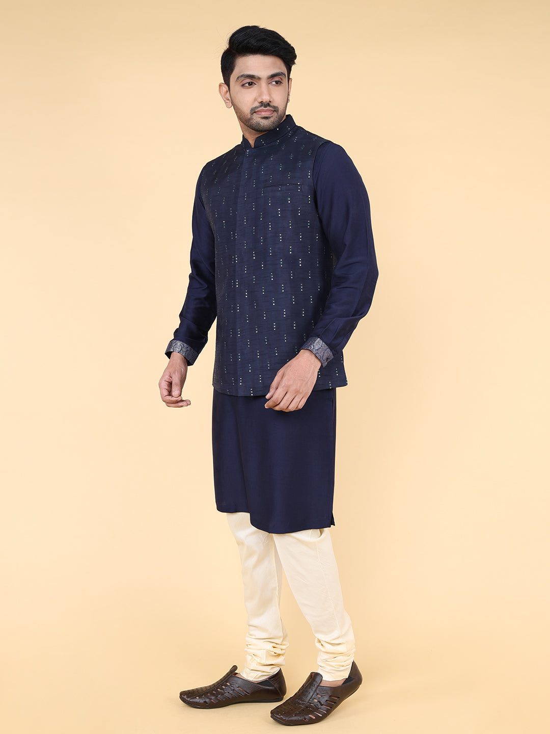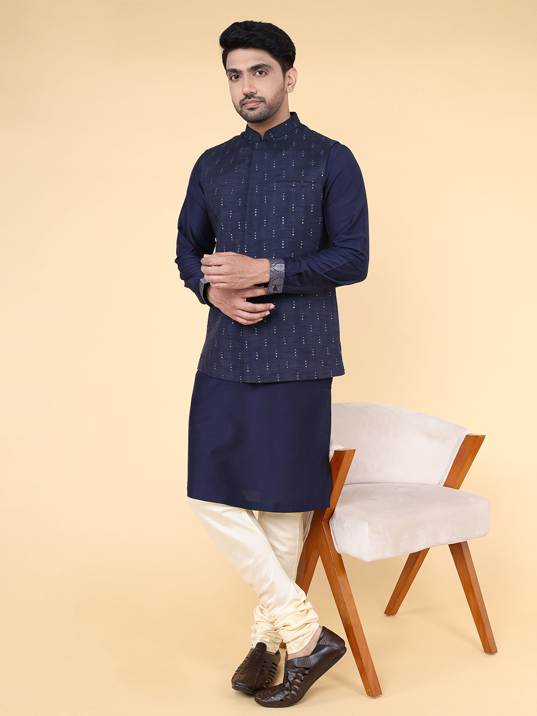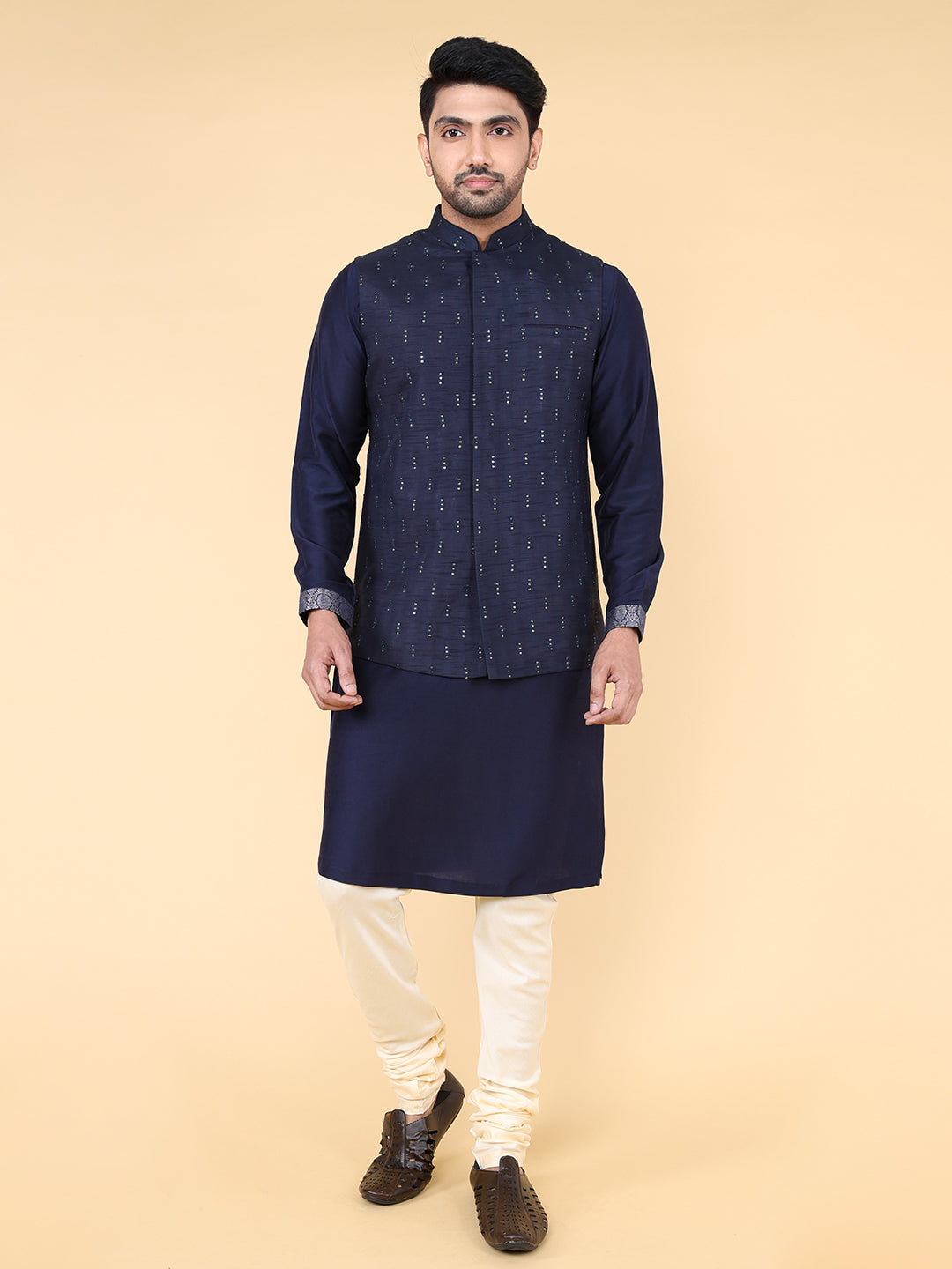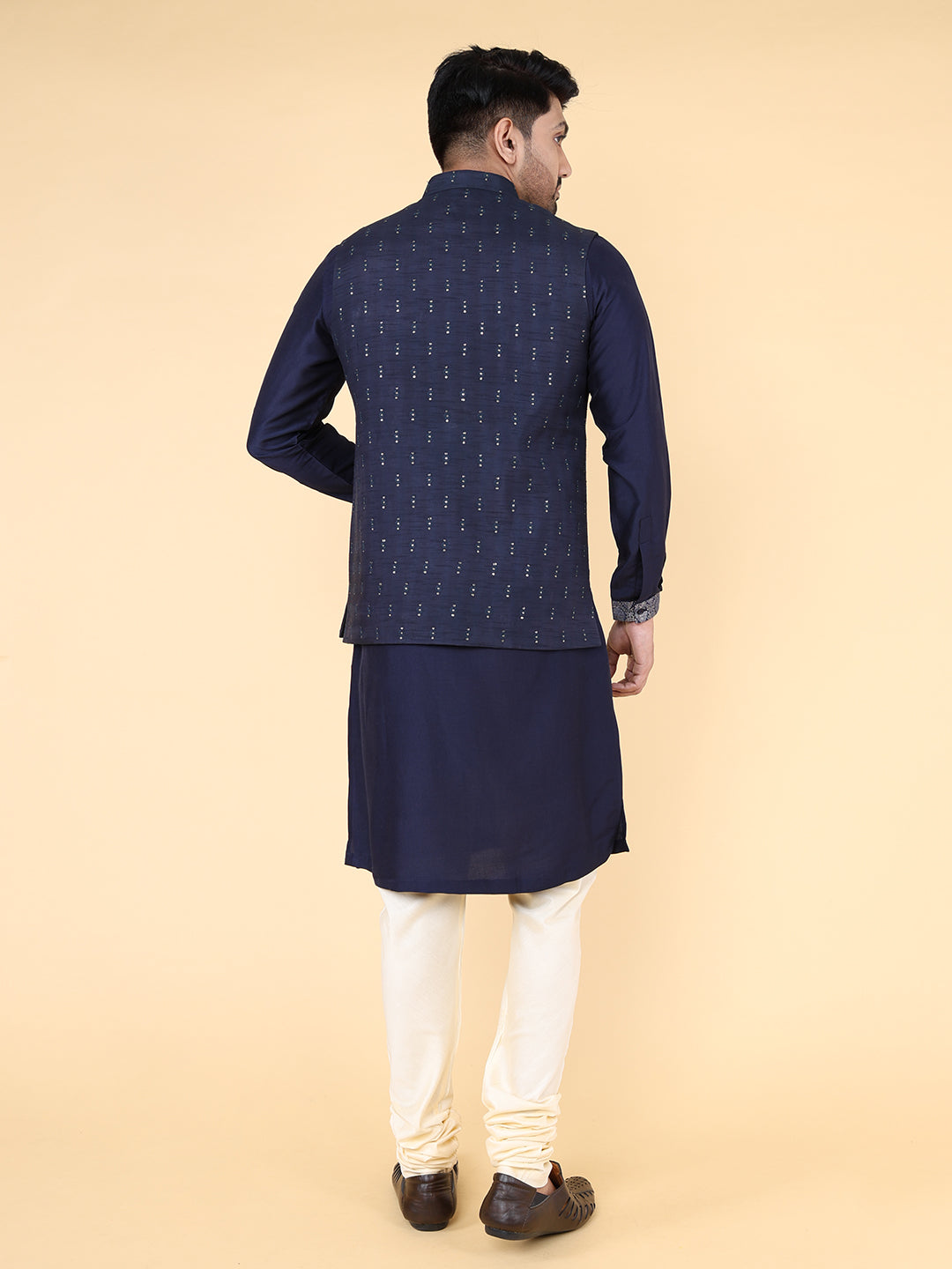 Introducing the ZOIS Jacket, adorned with intricate all-over geometric embroidery. This stylish Navy Blue blends traditional craftsmanship with a modern touch, offering a perfect balance of elegance and contemporary flair. The delicate embroidery on the soft fabric adds a refined yet bold statement, making this jacket a versatile addition to your wardrobe. Elevate your fashion game with ZOIS's commitment to high-quality, standout designs.