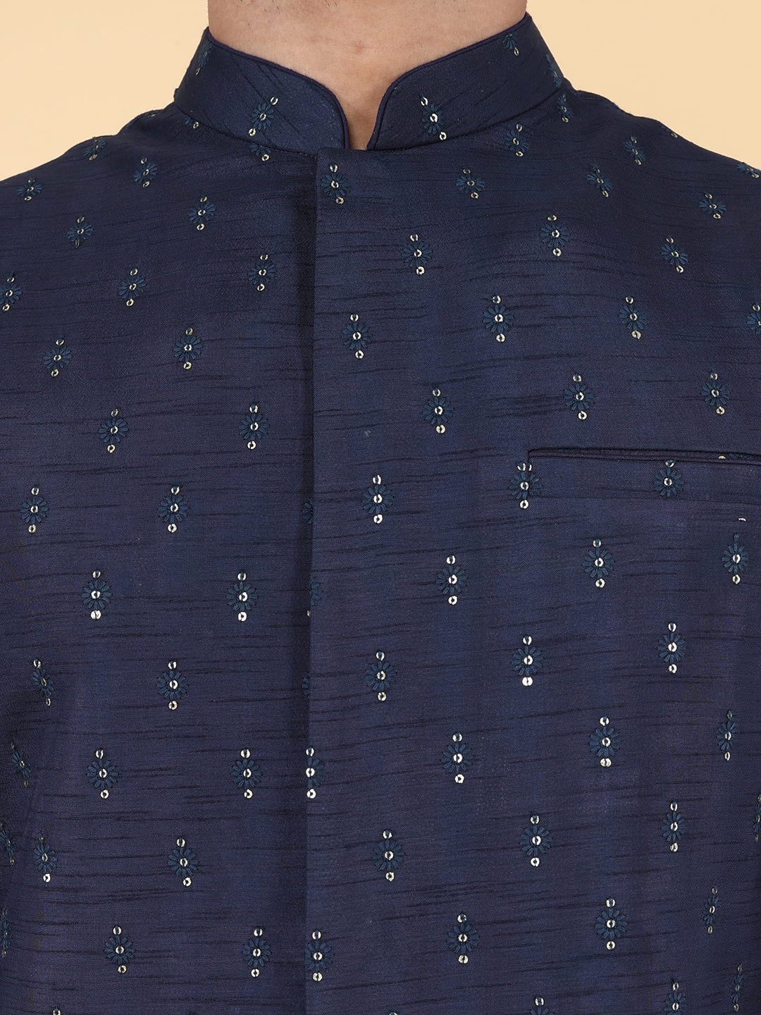 Navy blue all over thread and sequins work Jacket